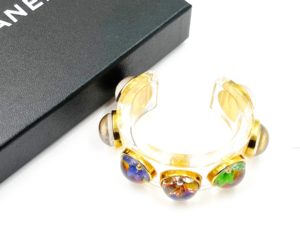 Chanel Gold Silver Chain Resin Cuff Bangle Bracelet