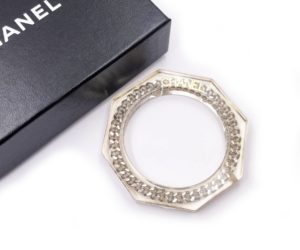 Chanel Light Gold CC Pink Princess Crystal Bangle BraceletSil Pk Princess Crystal Cuff