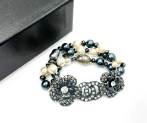 Chanel Grey CC Crystal Fresh Water Bracelet