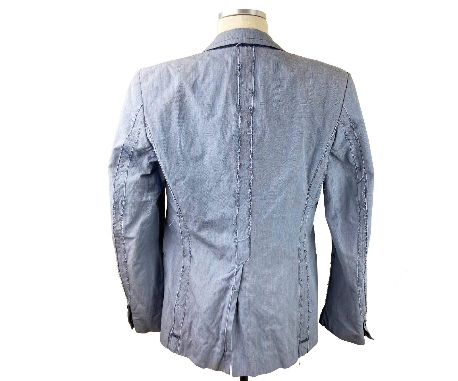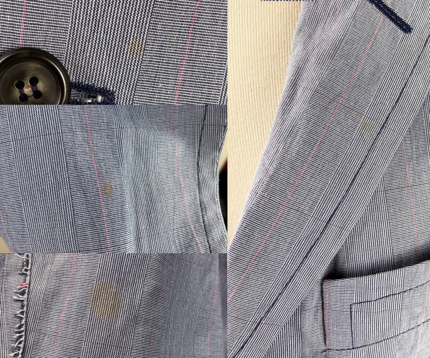 -In a good condition, except the light stains on the collar, sleeve and body.