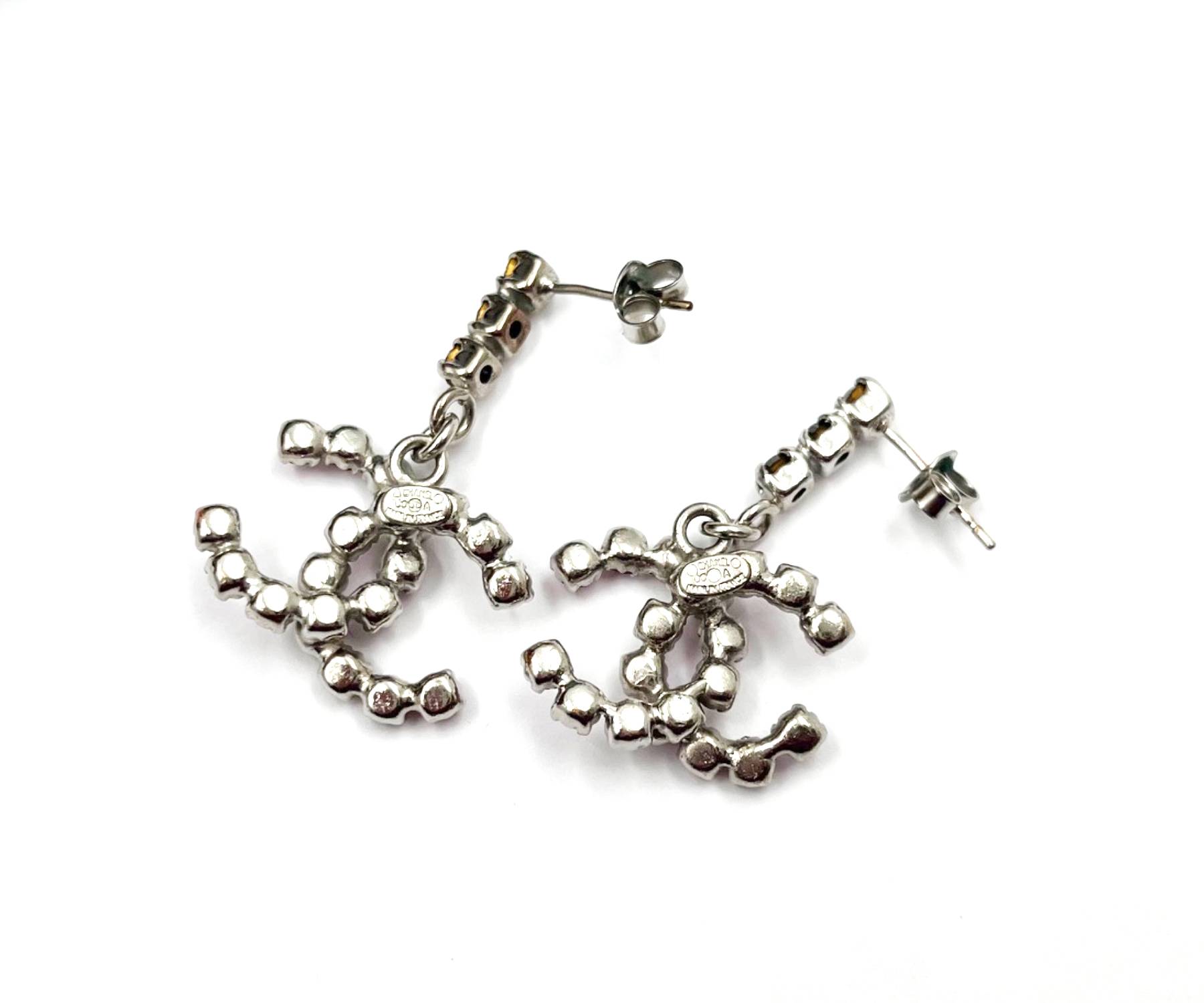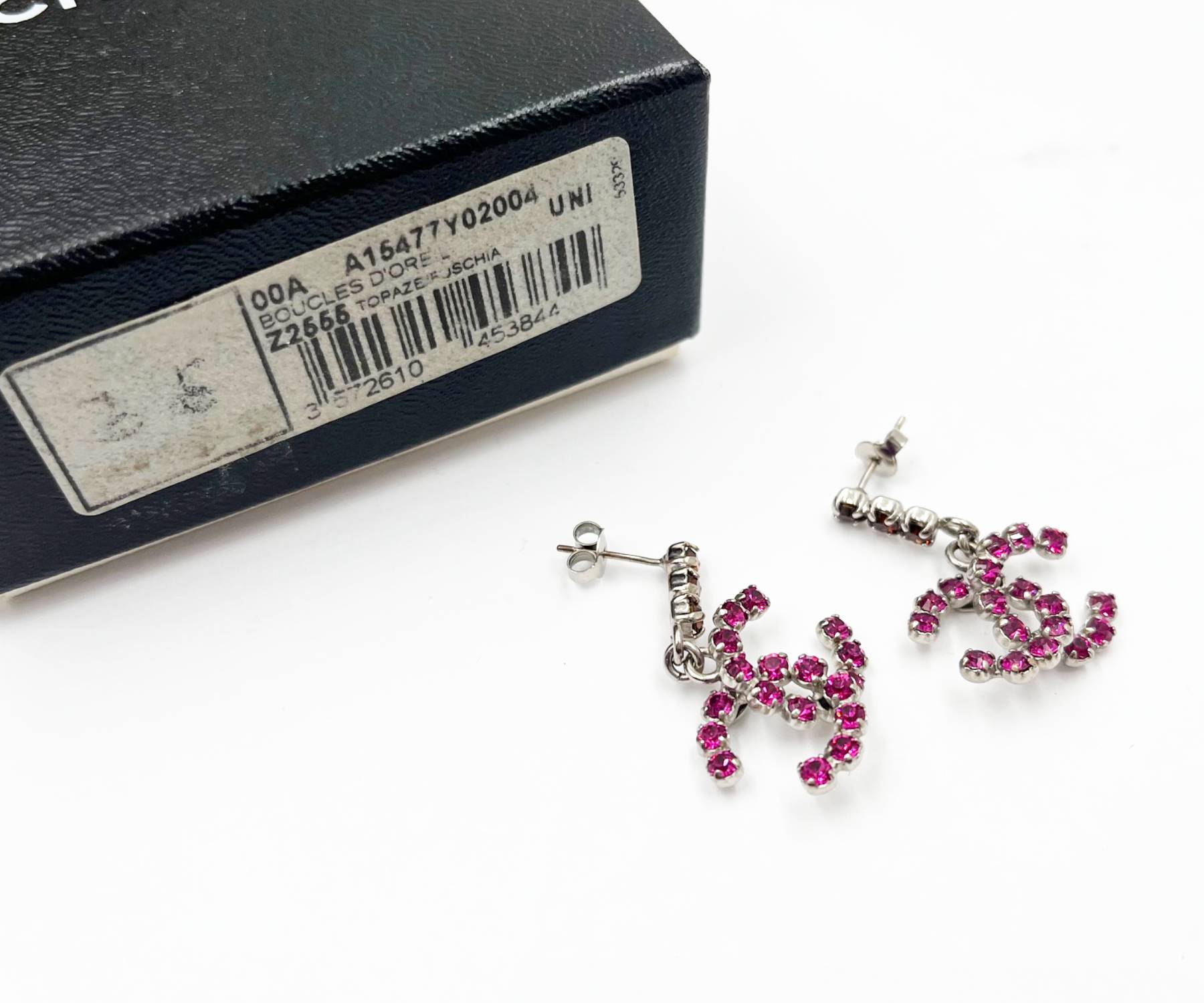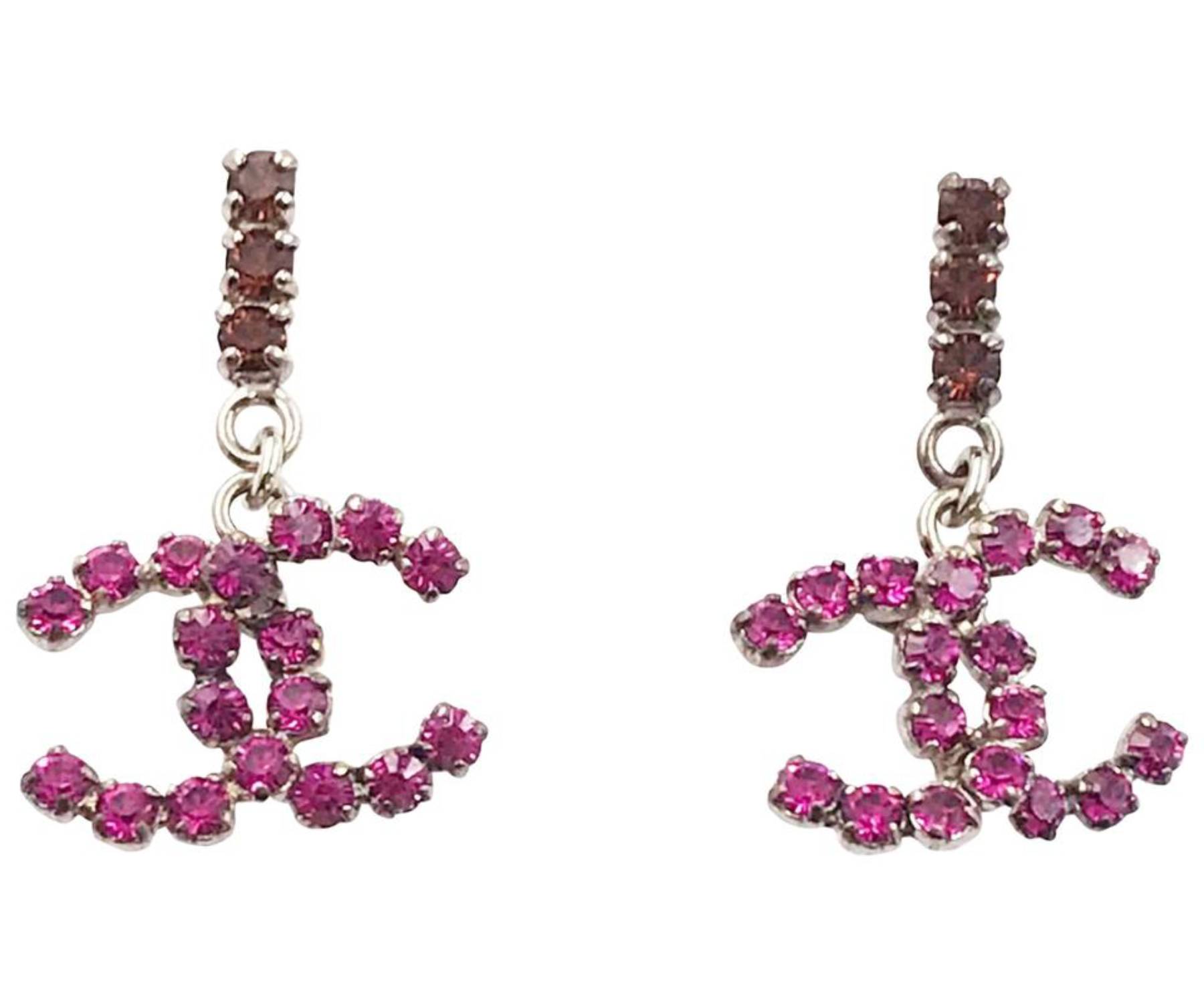 Chanel 2 Tone Fuchsia Bar Rocky CC Dangle Piercing Earrings