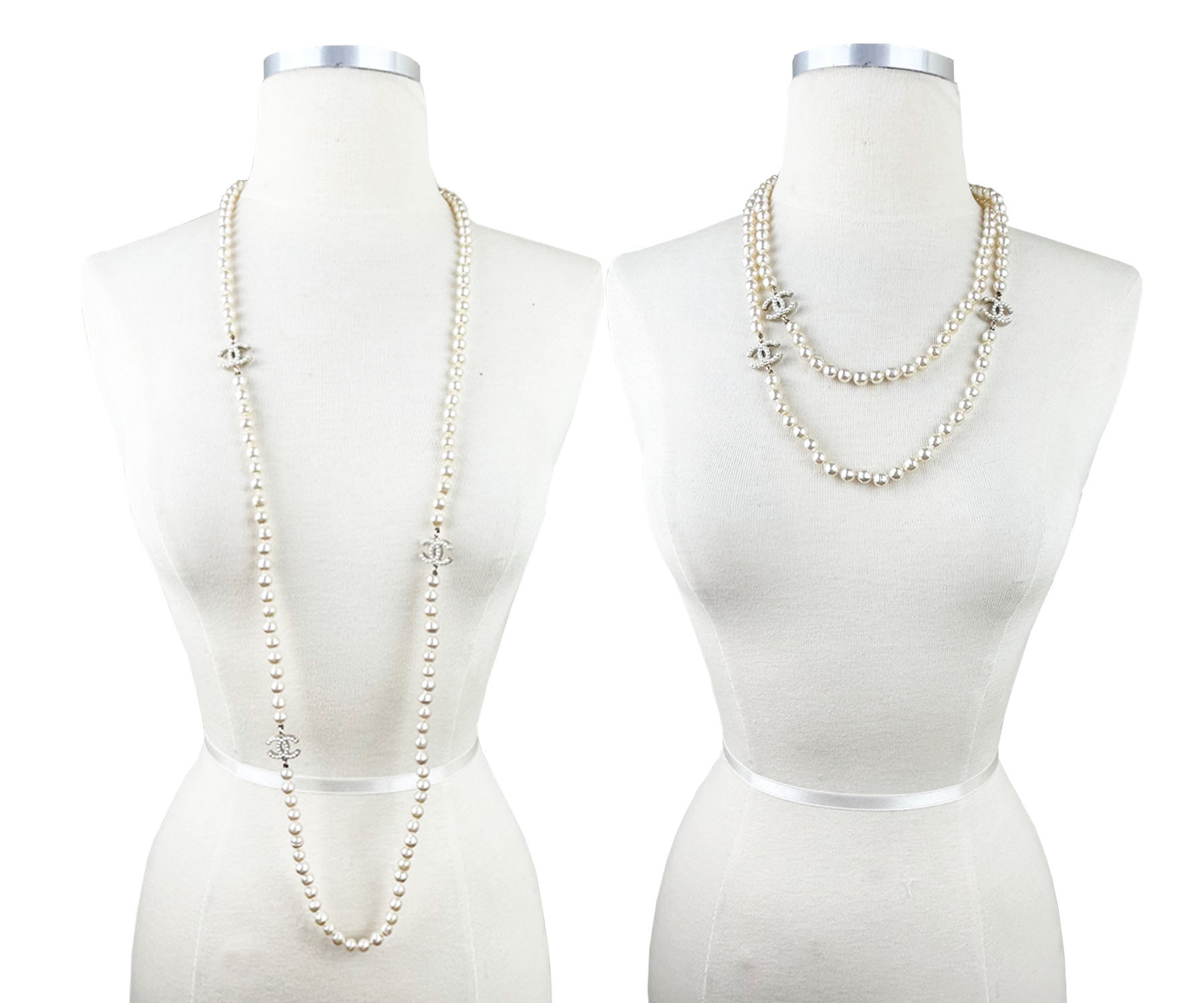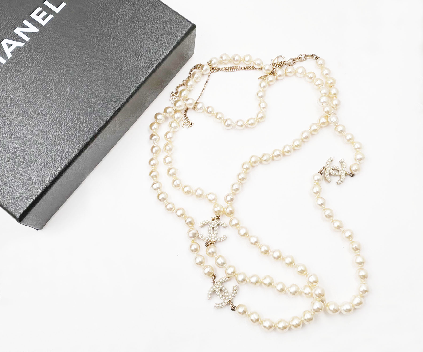 Chanel 3 Gold CC Pearl Faux Fresh Water Pearl Long Necklace
