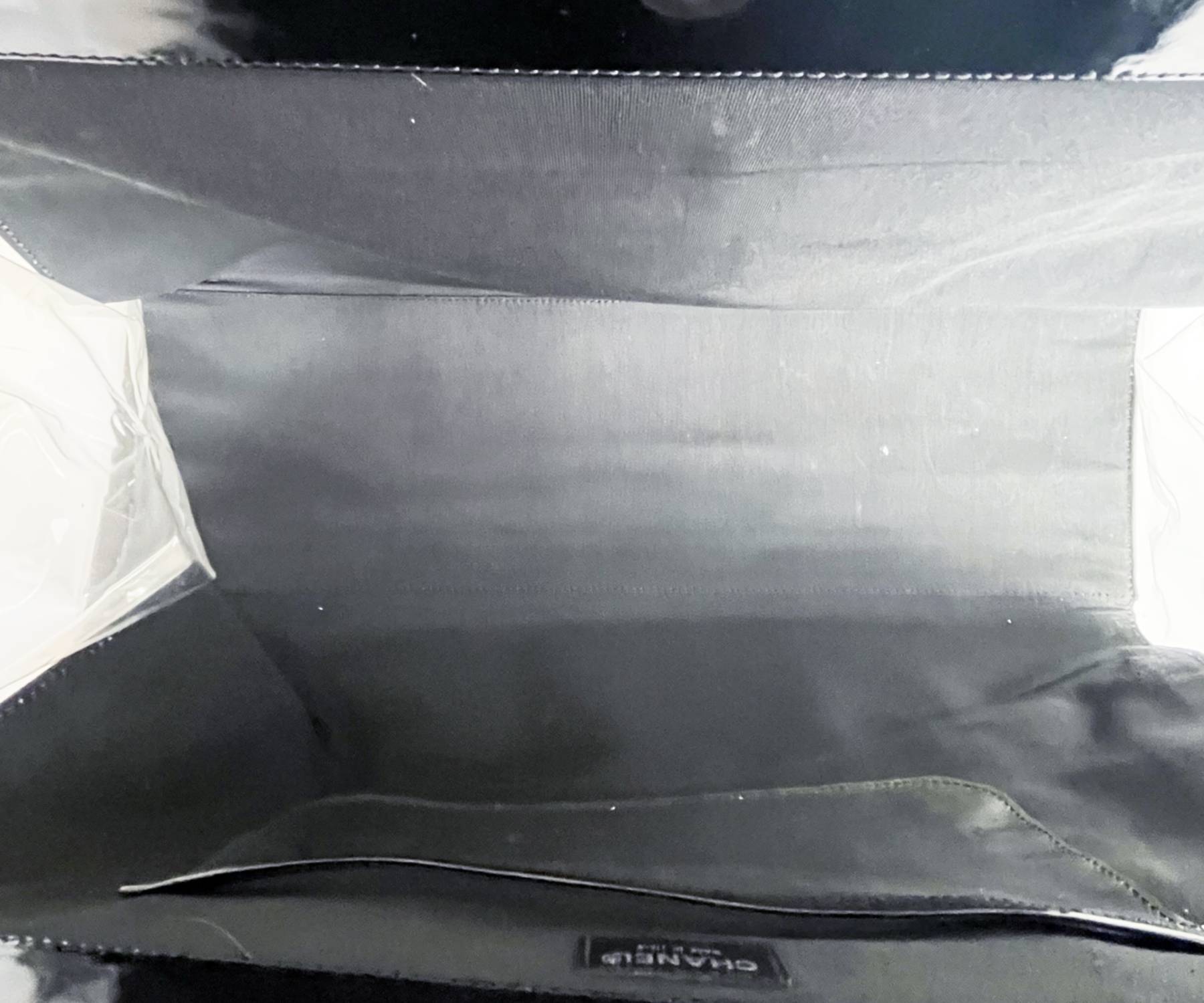 Chanel Black Patent Leather Punch Hole Clear Handle XXL Handbag