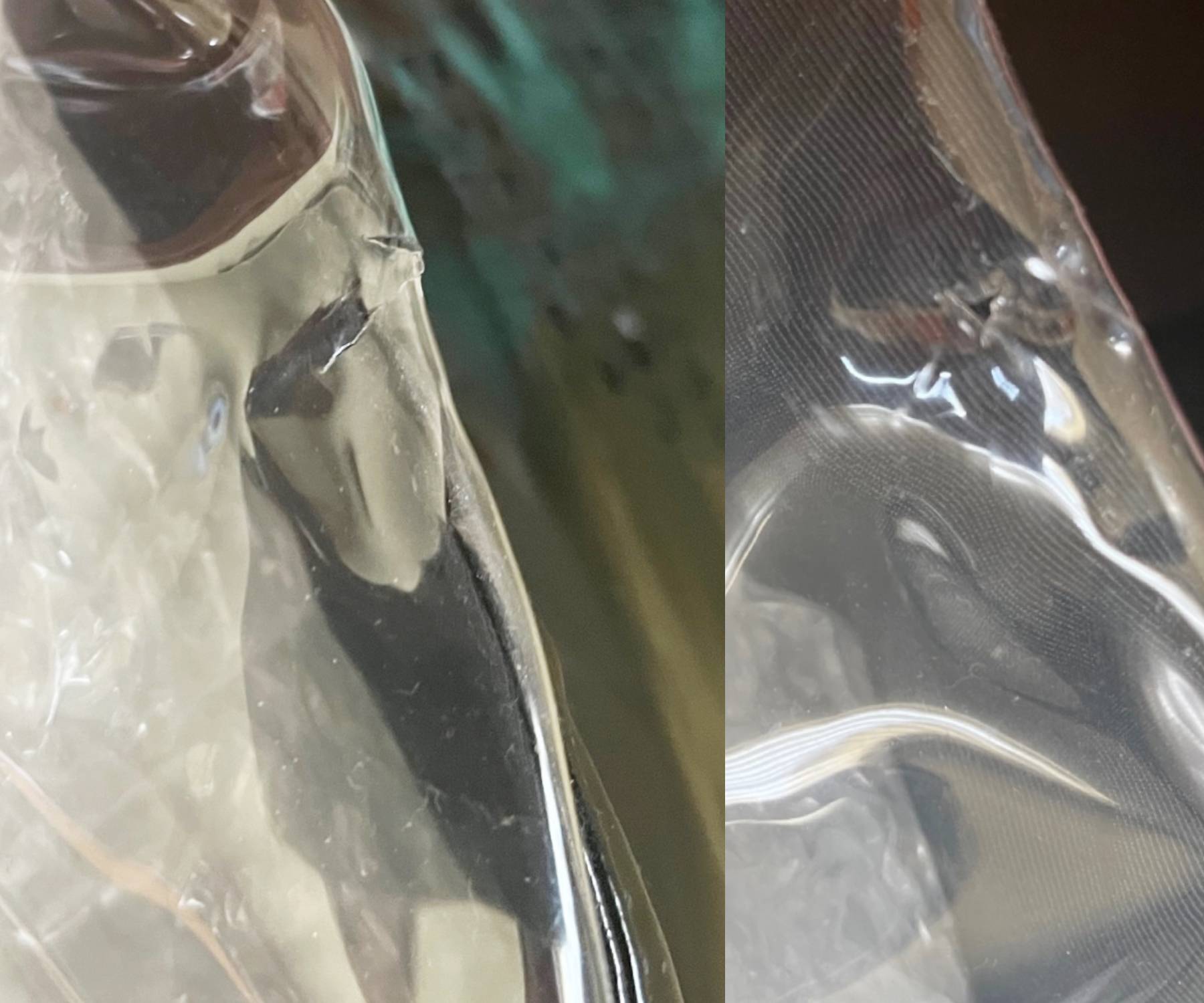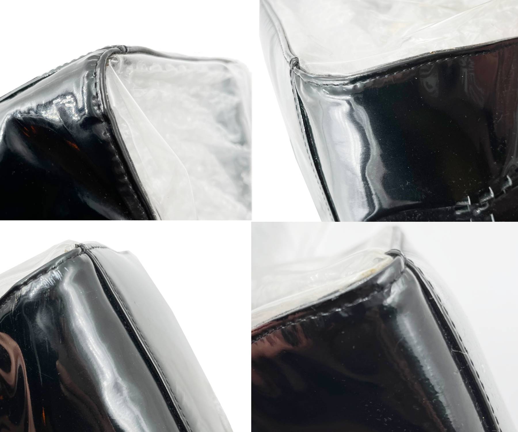 -It shows some light marks on the patent leather. There are 2 holes at the folding points, but it’s so small, not obvious.
