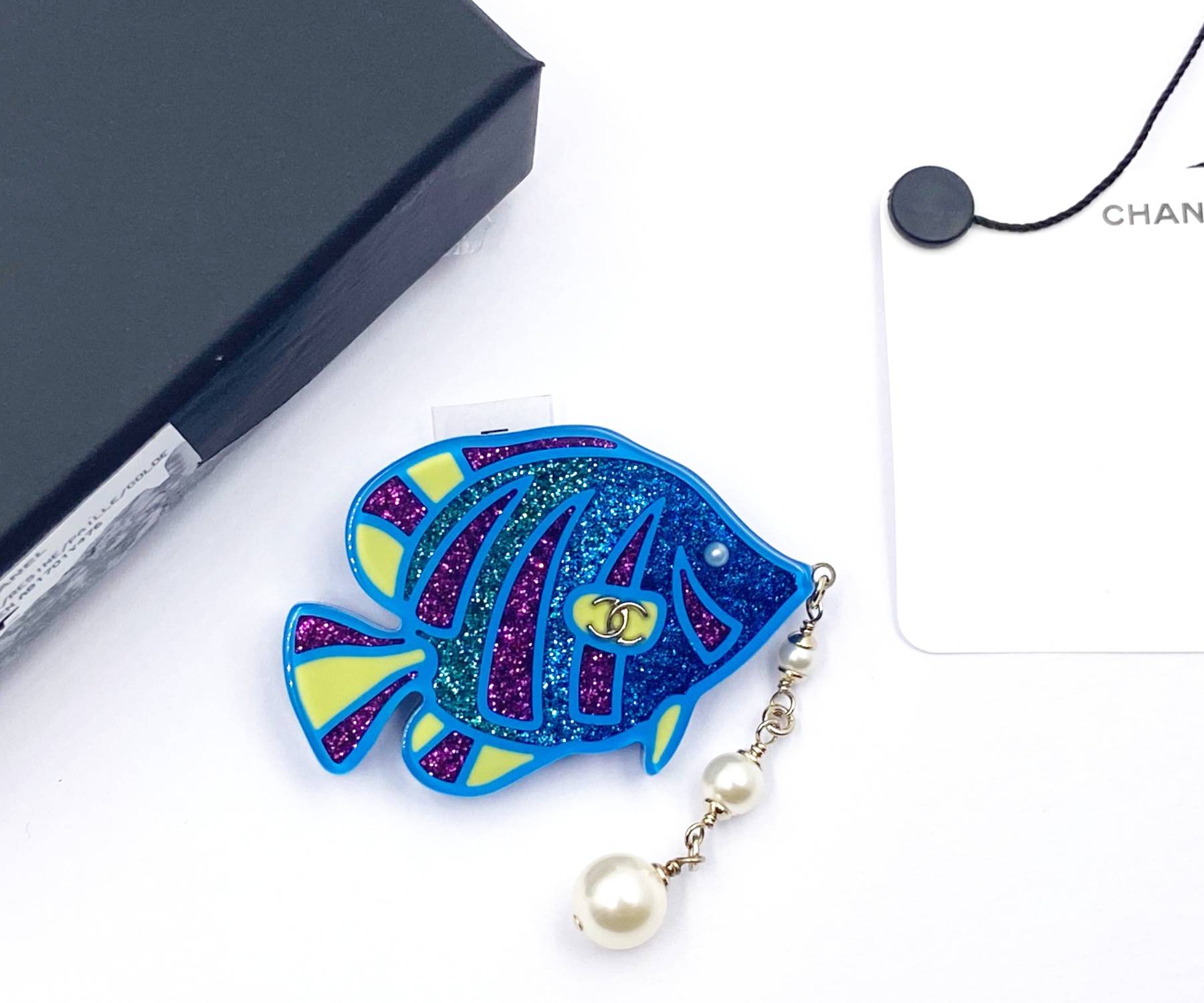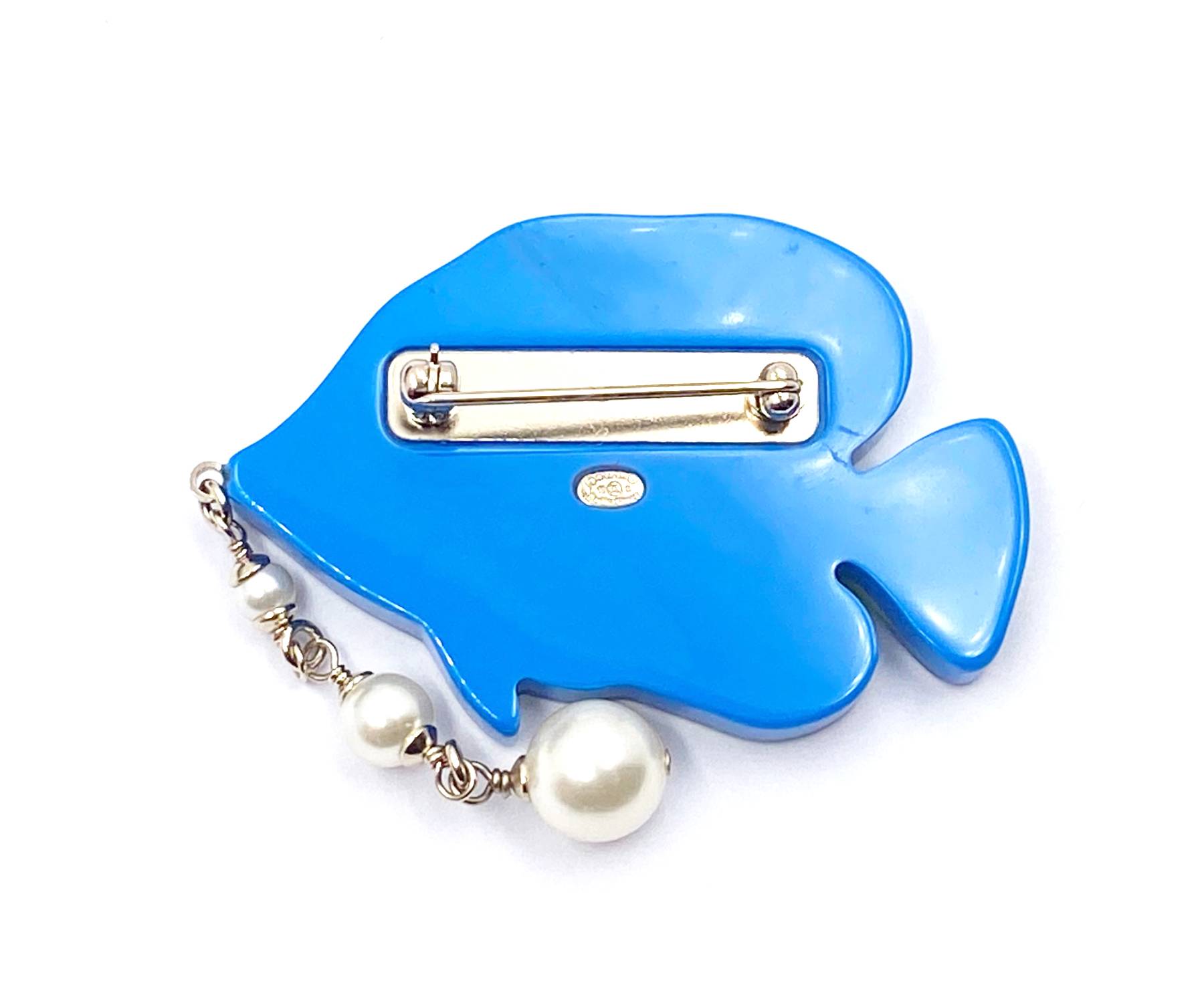 Chanel Brand New Blue Glitter Tropical Fish Pearl Brooch