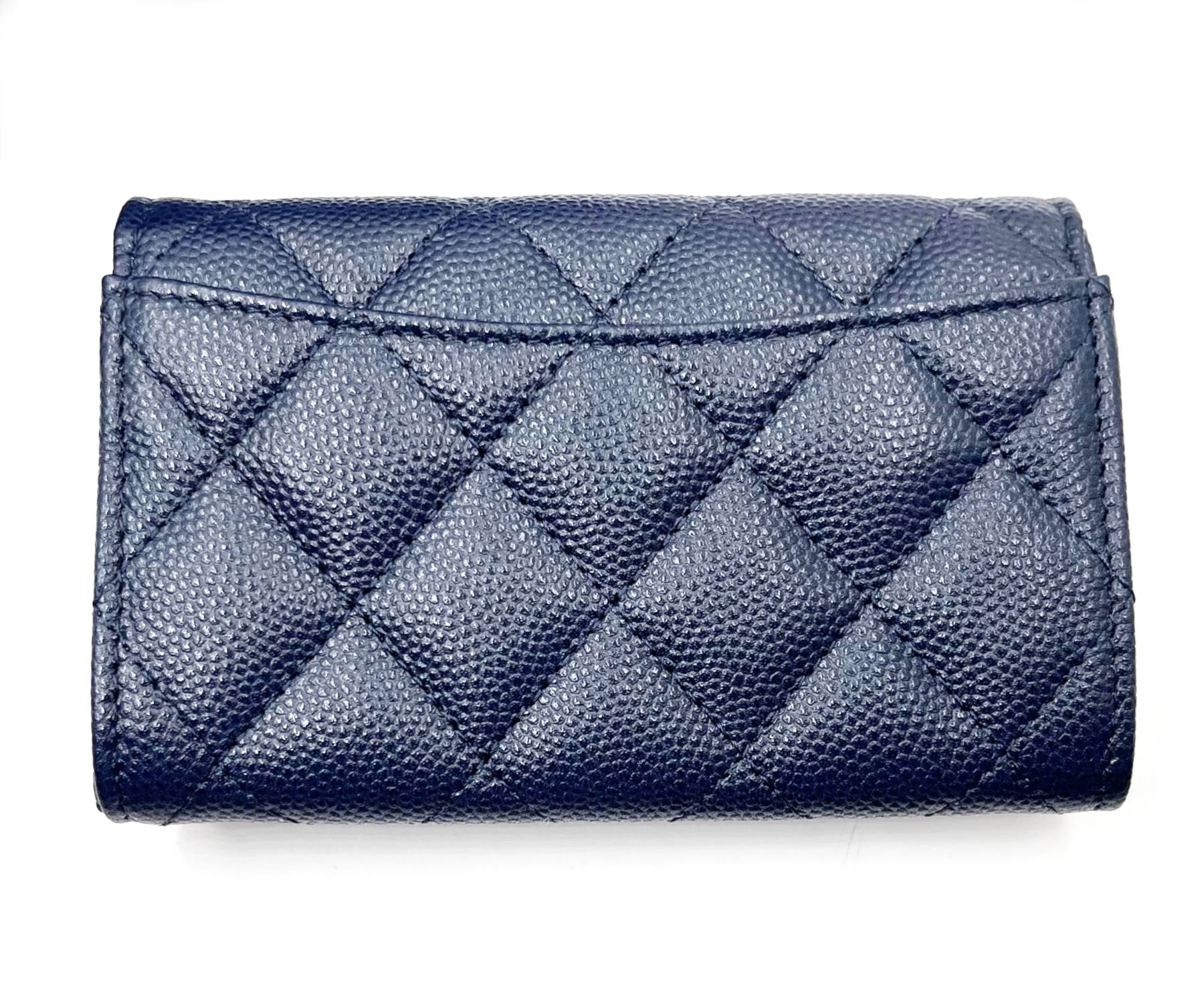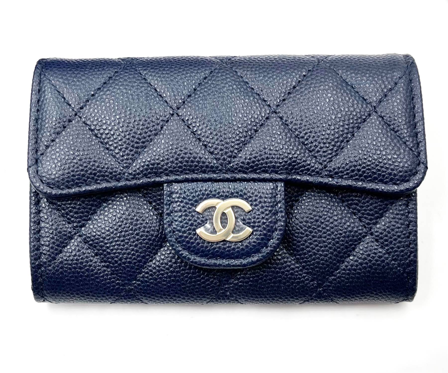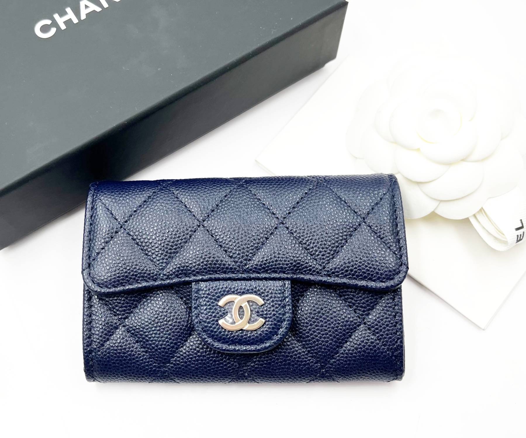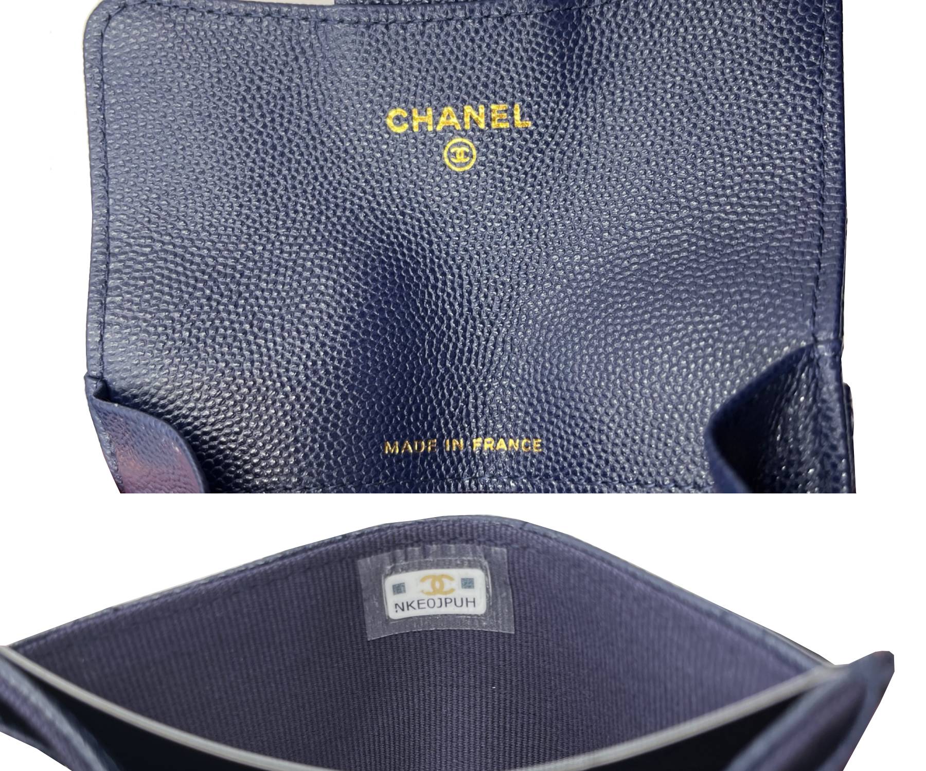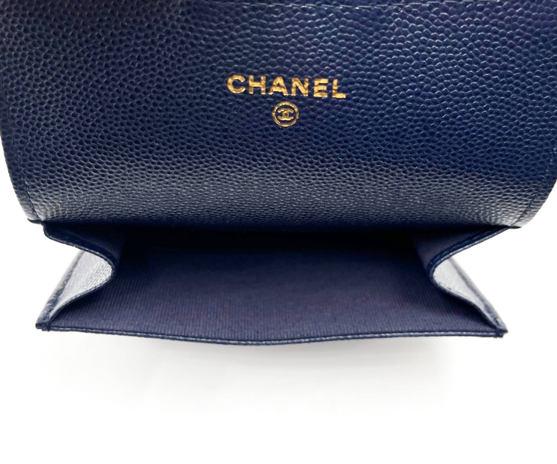 Chanel Brand New Classic Navy Blue Caviar Flap Card Holder
