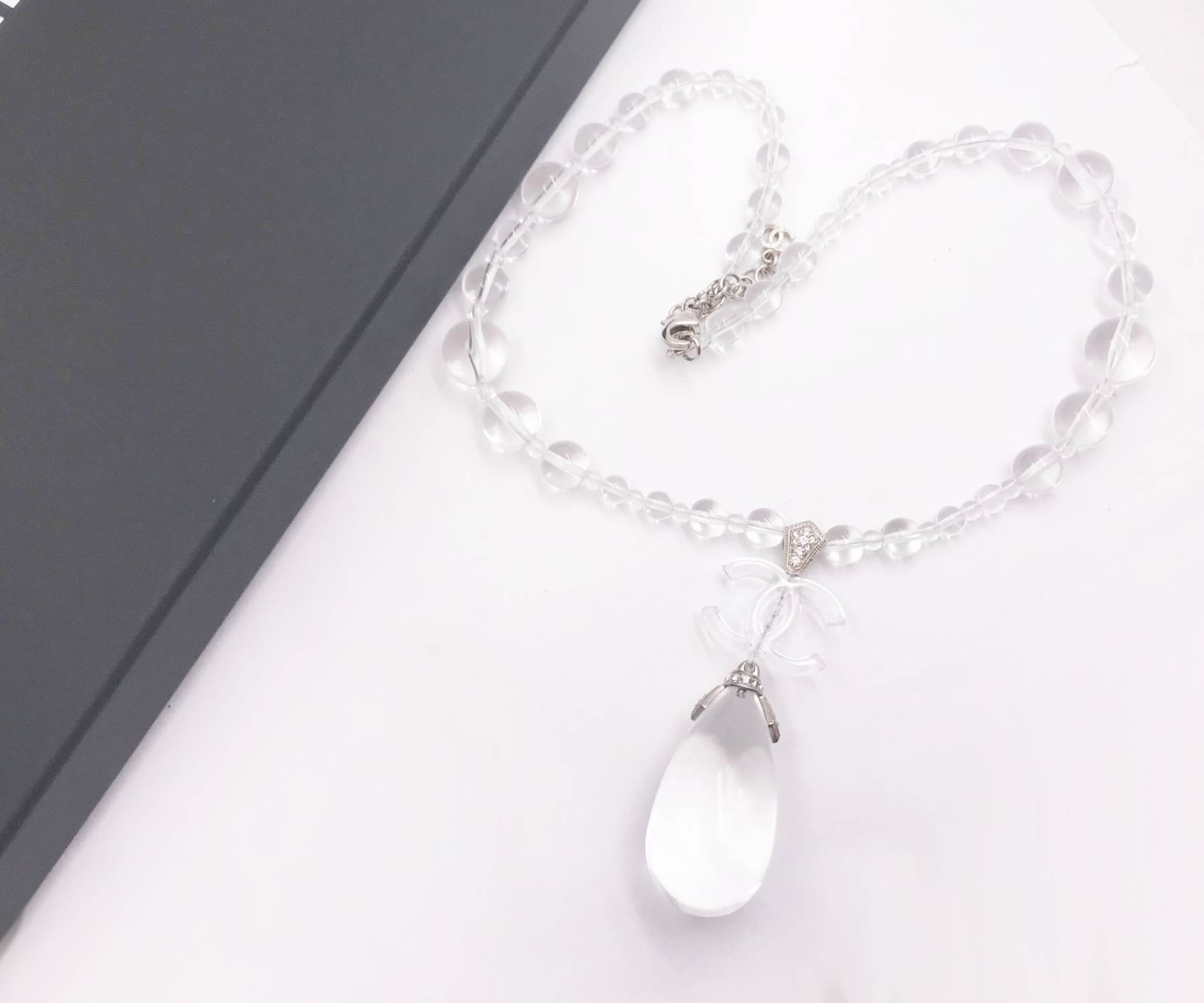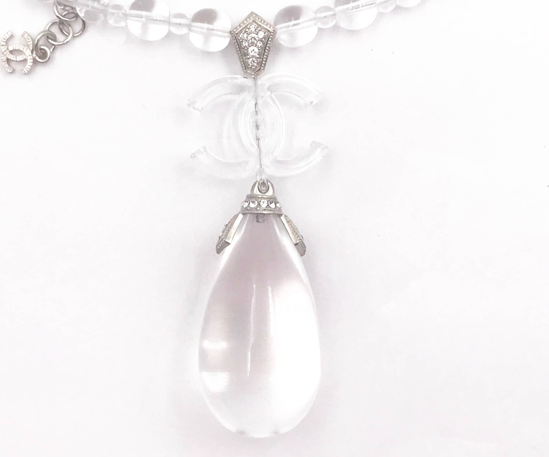 Chanel Brand New Clear CC Water Drop Resin Bead Necklace