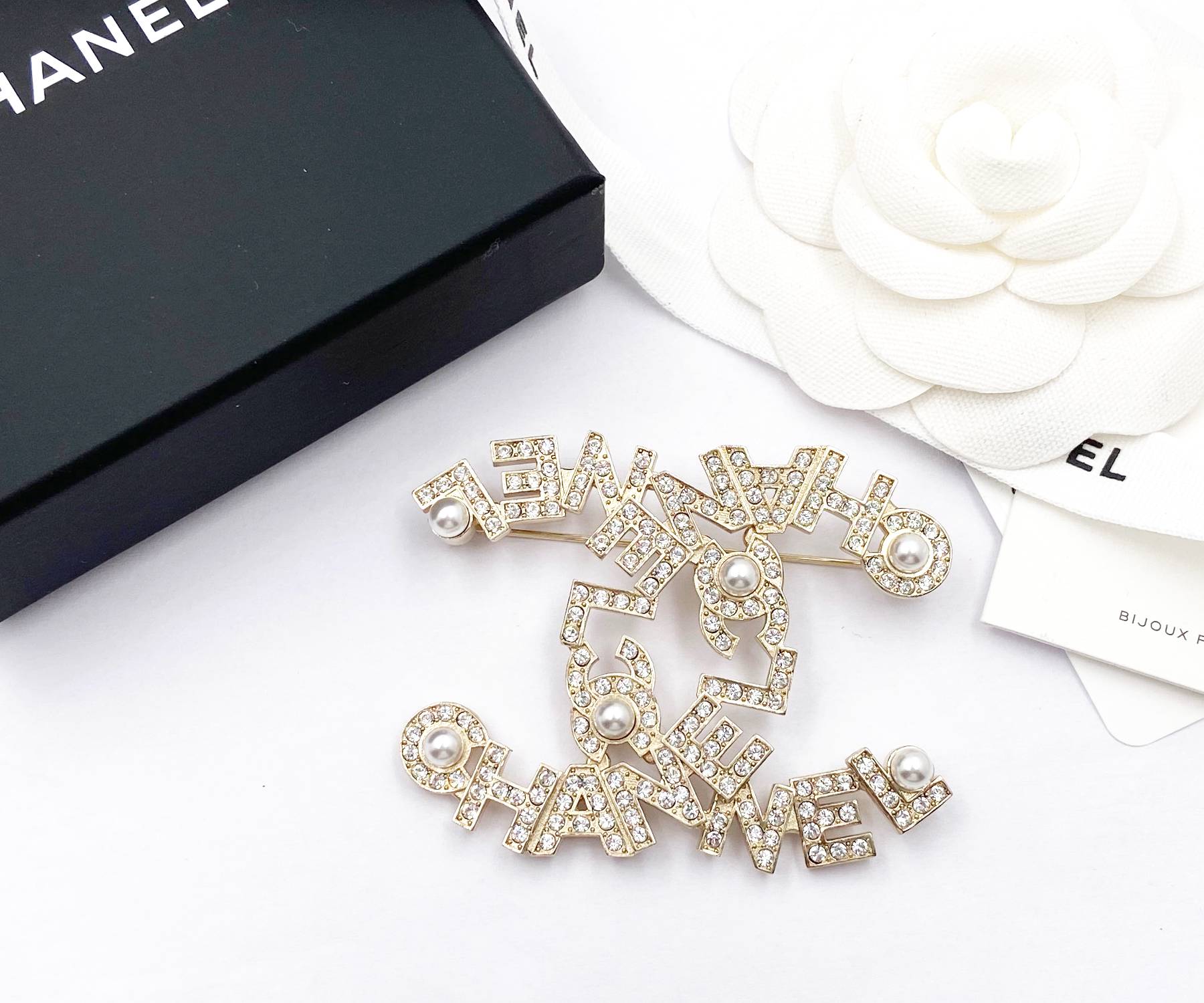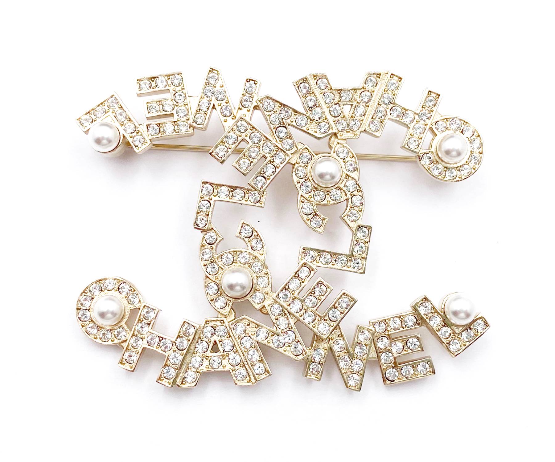 Chanel Brand New Gold CC CHANEL Crystal Pearl Large Brooch