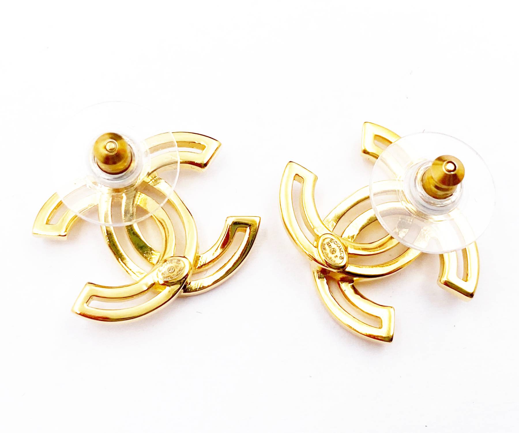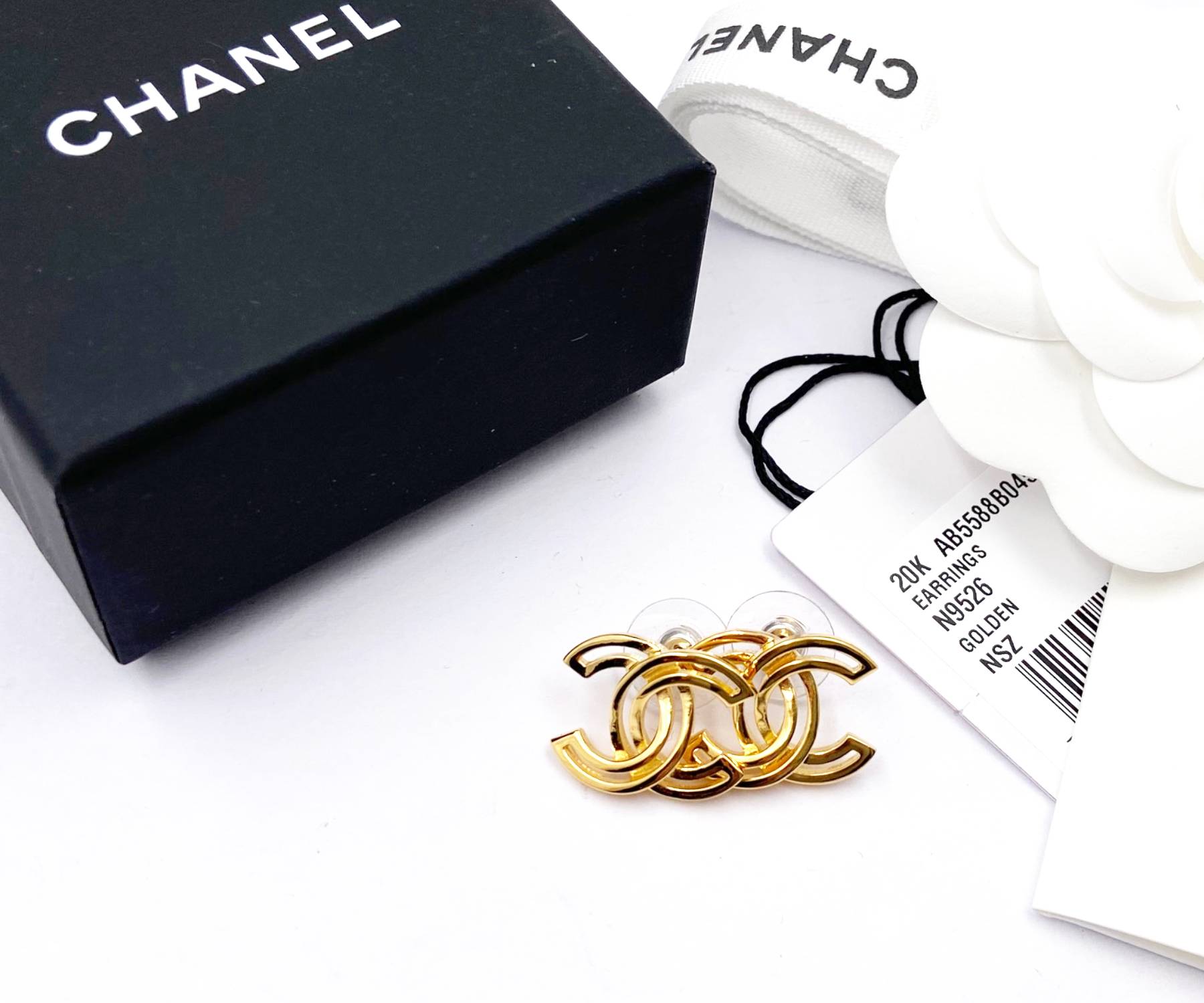 Chanel Brand New Gold CC Cut out Piercing Earrings