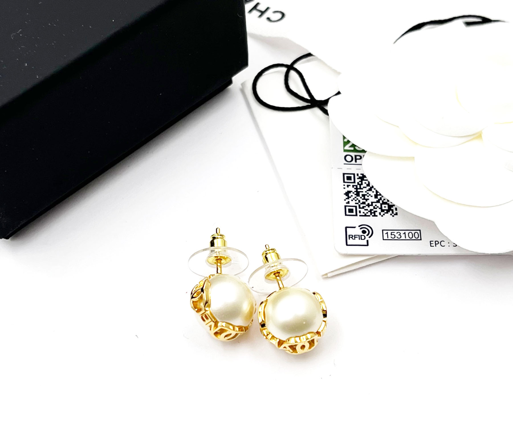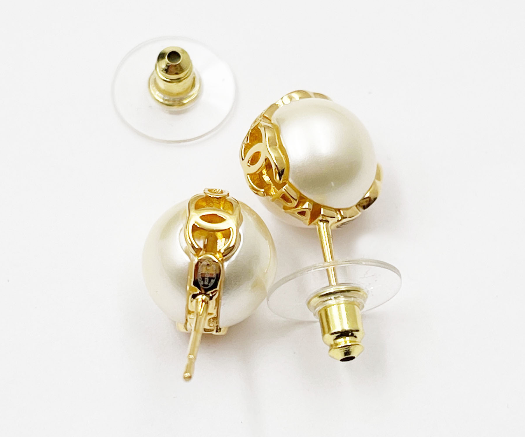 Chanel Brand New Gold CC Letter Pearl Piercing Earrings