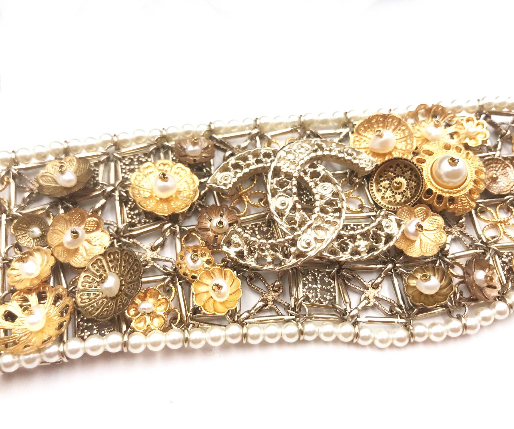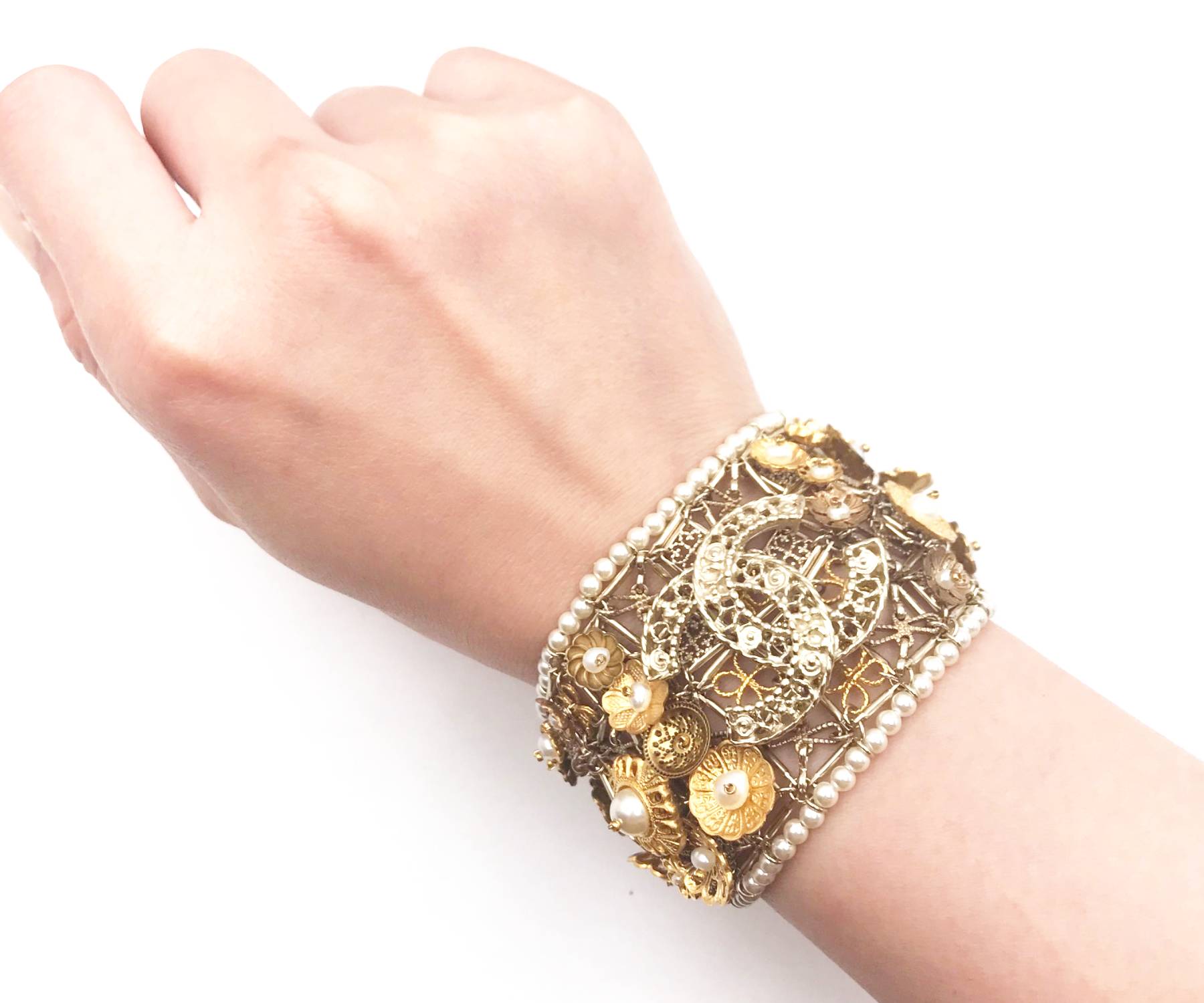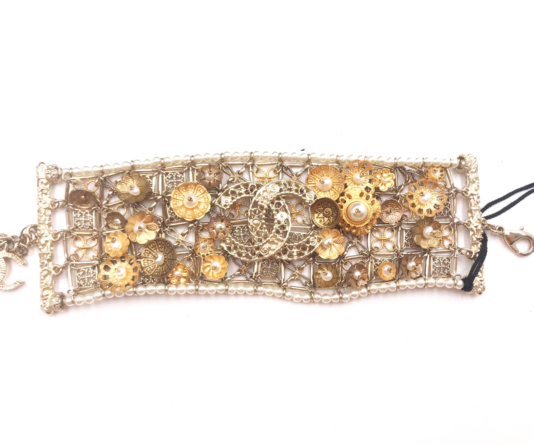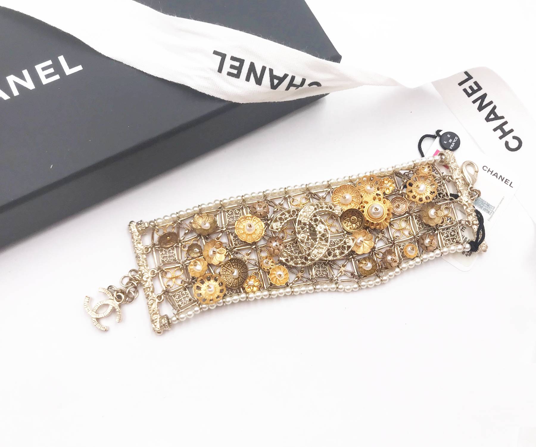 Chanel Brand New Gold Flower Pearl CC Bracelet