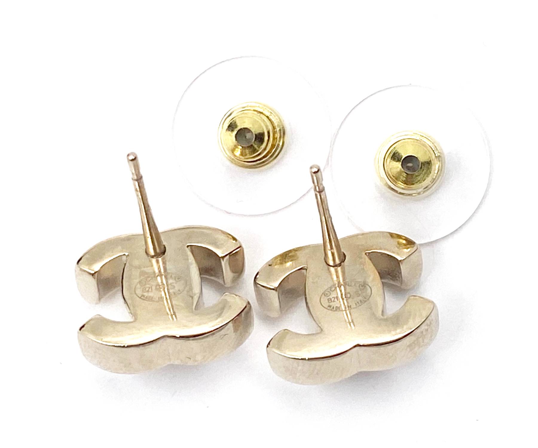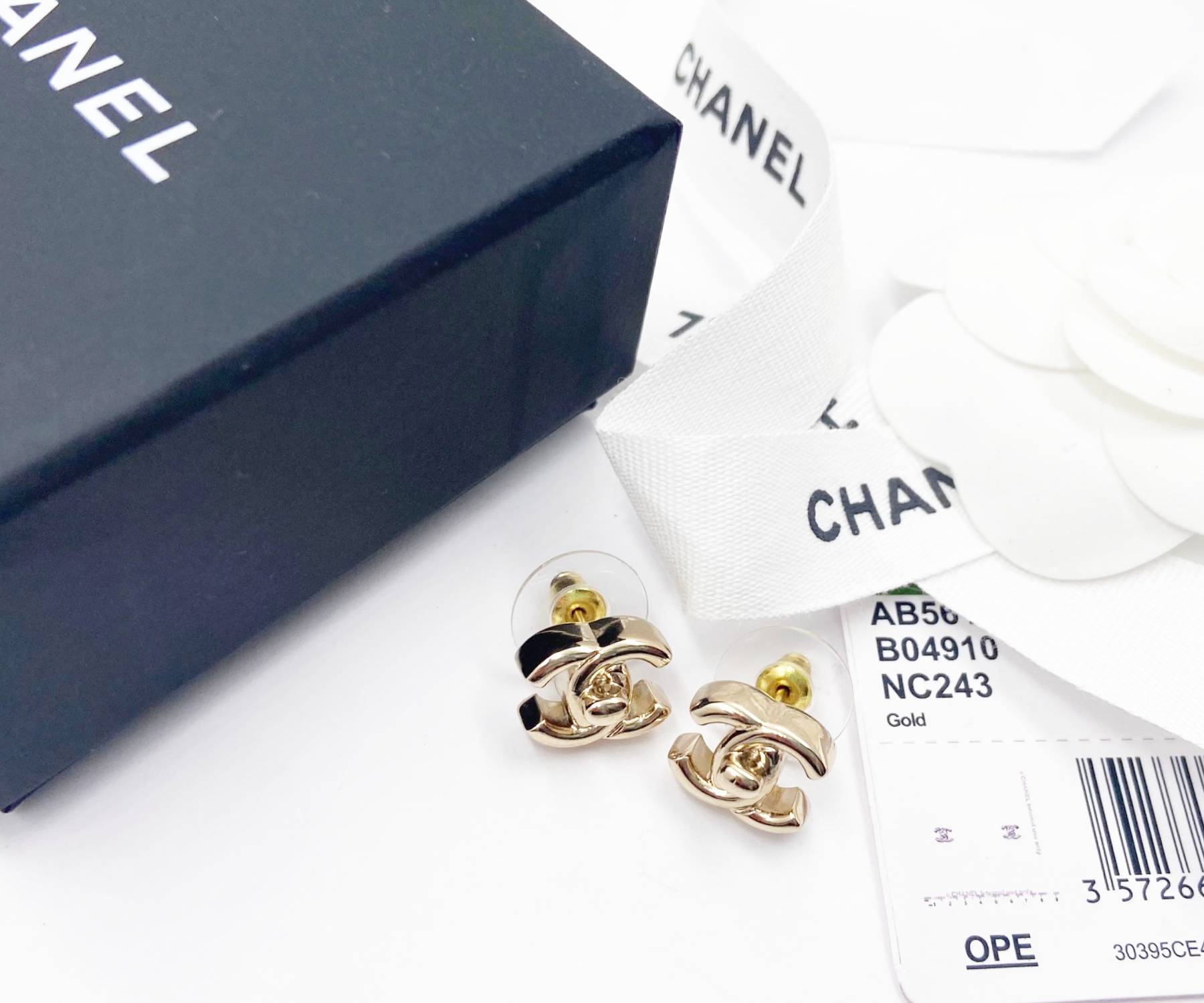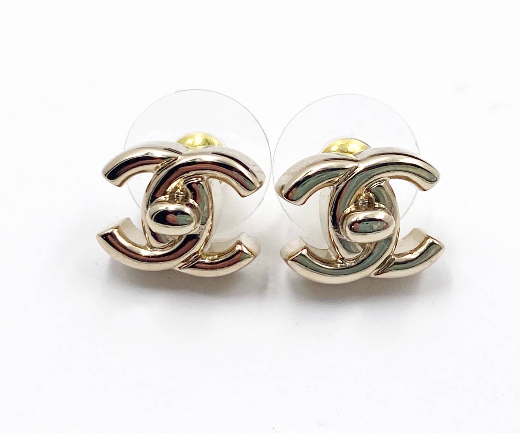 Chanel Brand New Light Gold CC Reissued Turnlock Piercing Earrings