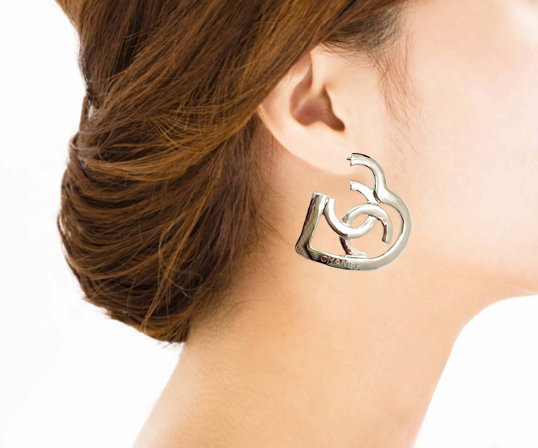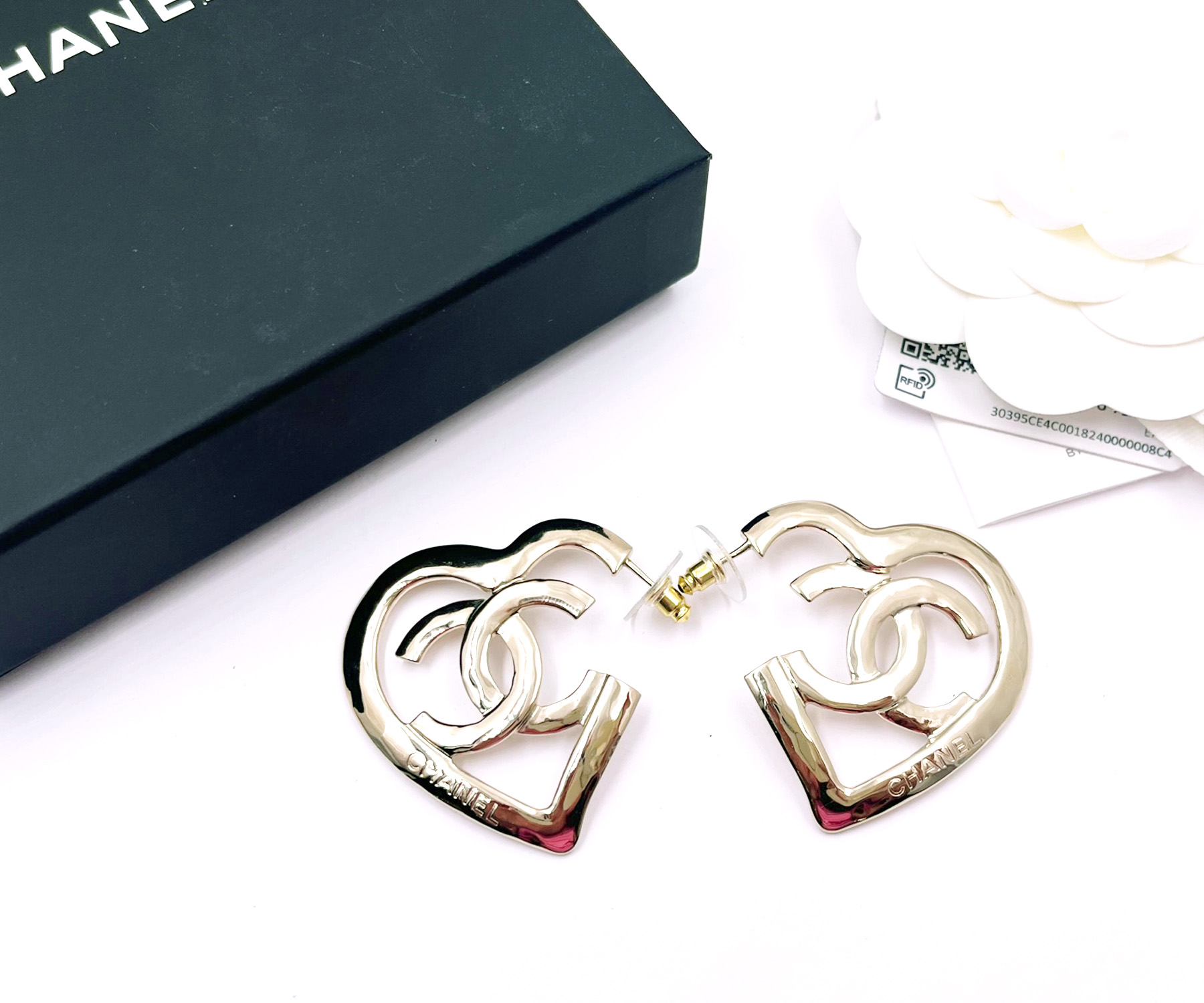 Chanel Brand New Light Gold Open Heart Large Piercing Earrings