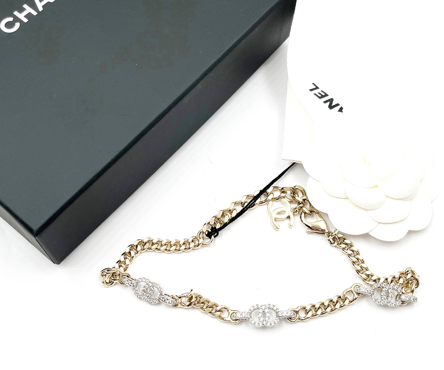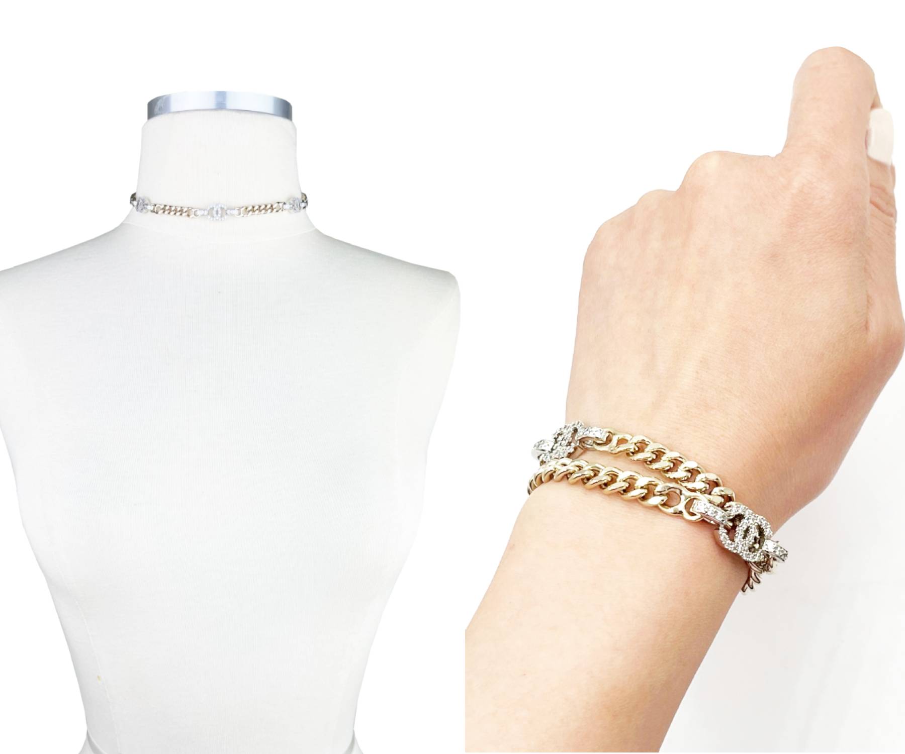 Chanel Brand New Silver CC Crystal Gold Chain Choker Necklace