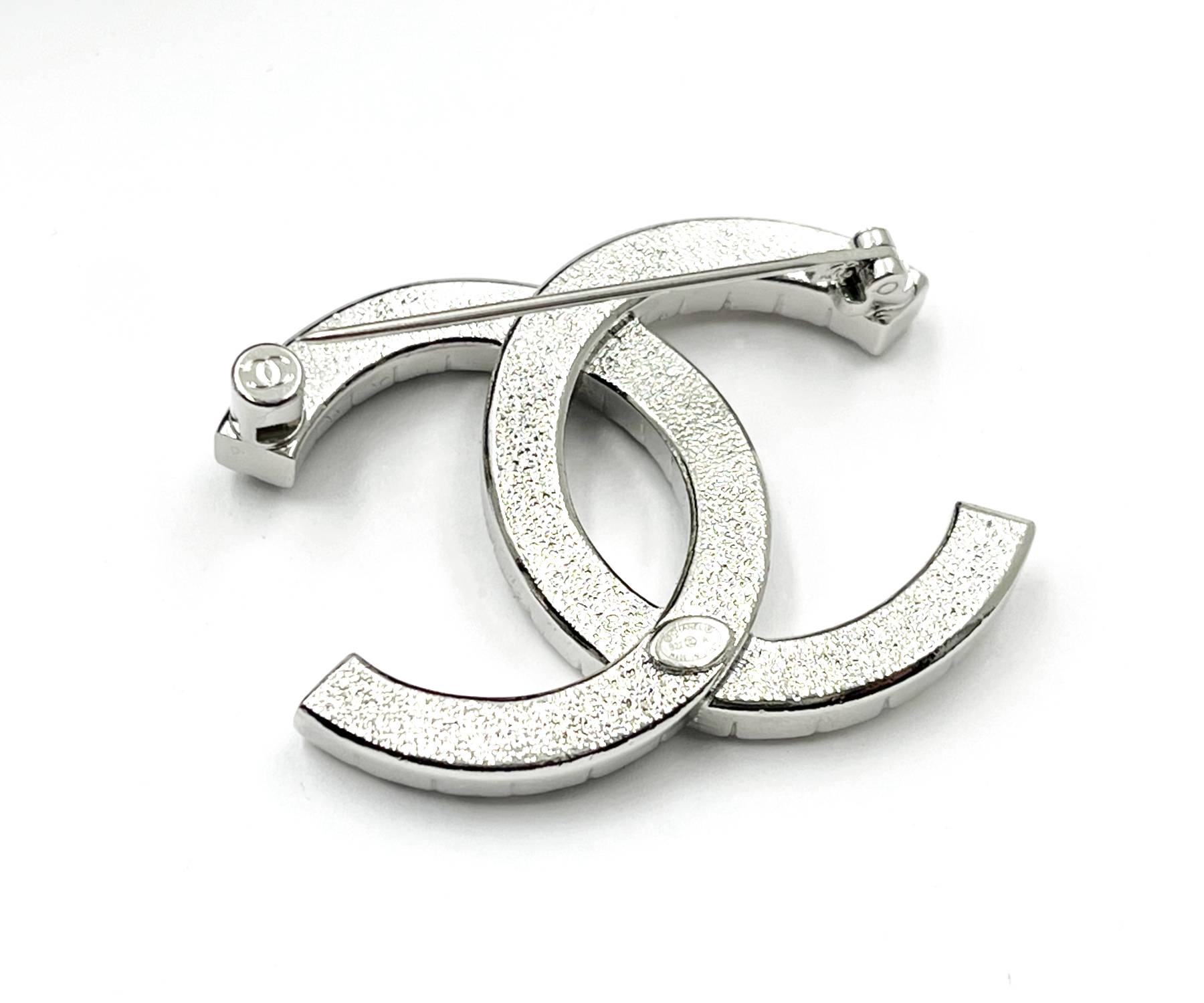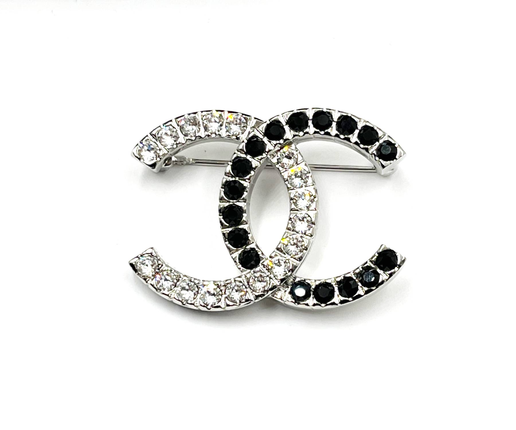 Chanel Brand New Silver CC Silver Black Crystal Brooch