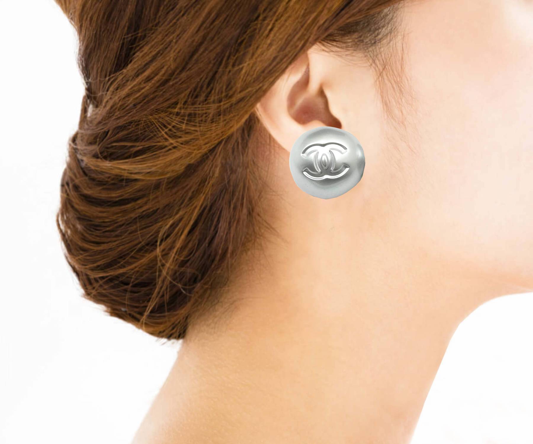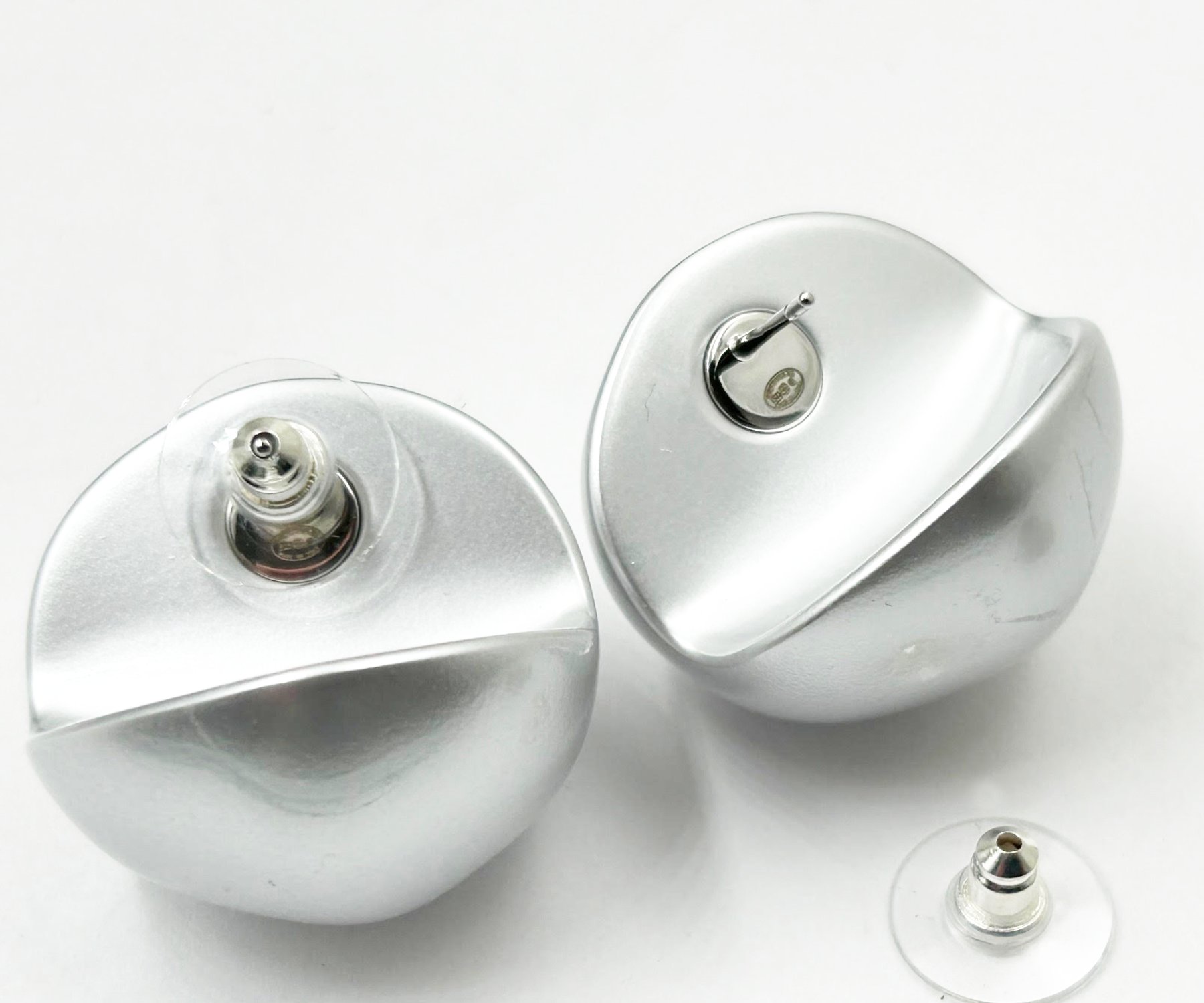 Chanel Brand New Silver Futurist Giant Piercing Earrings