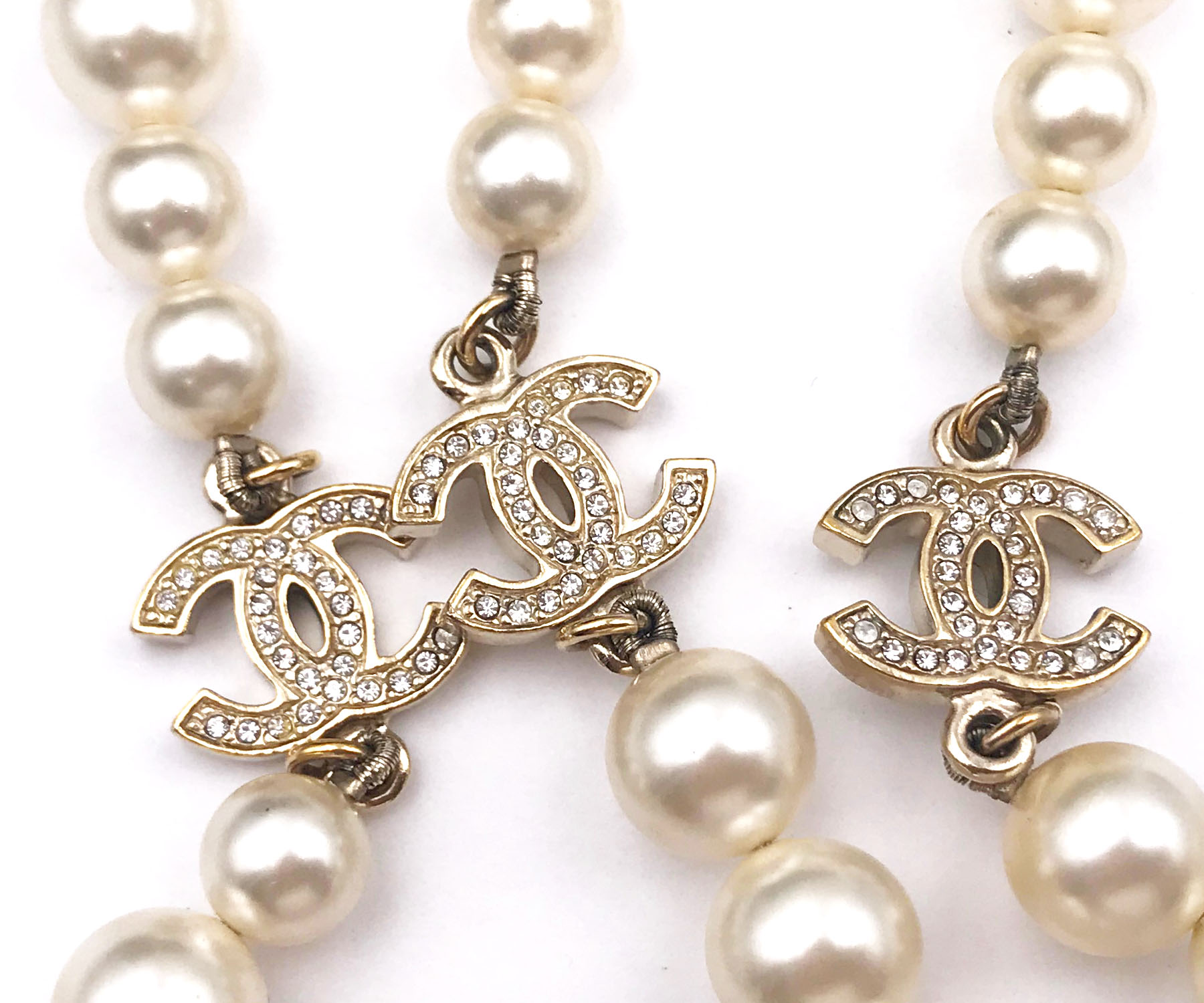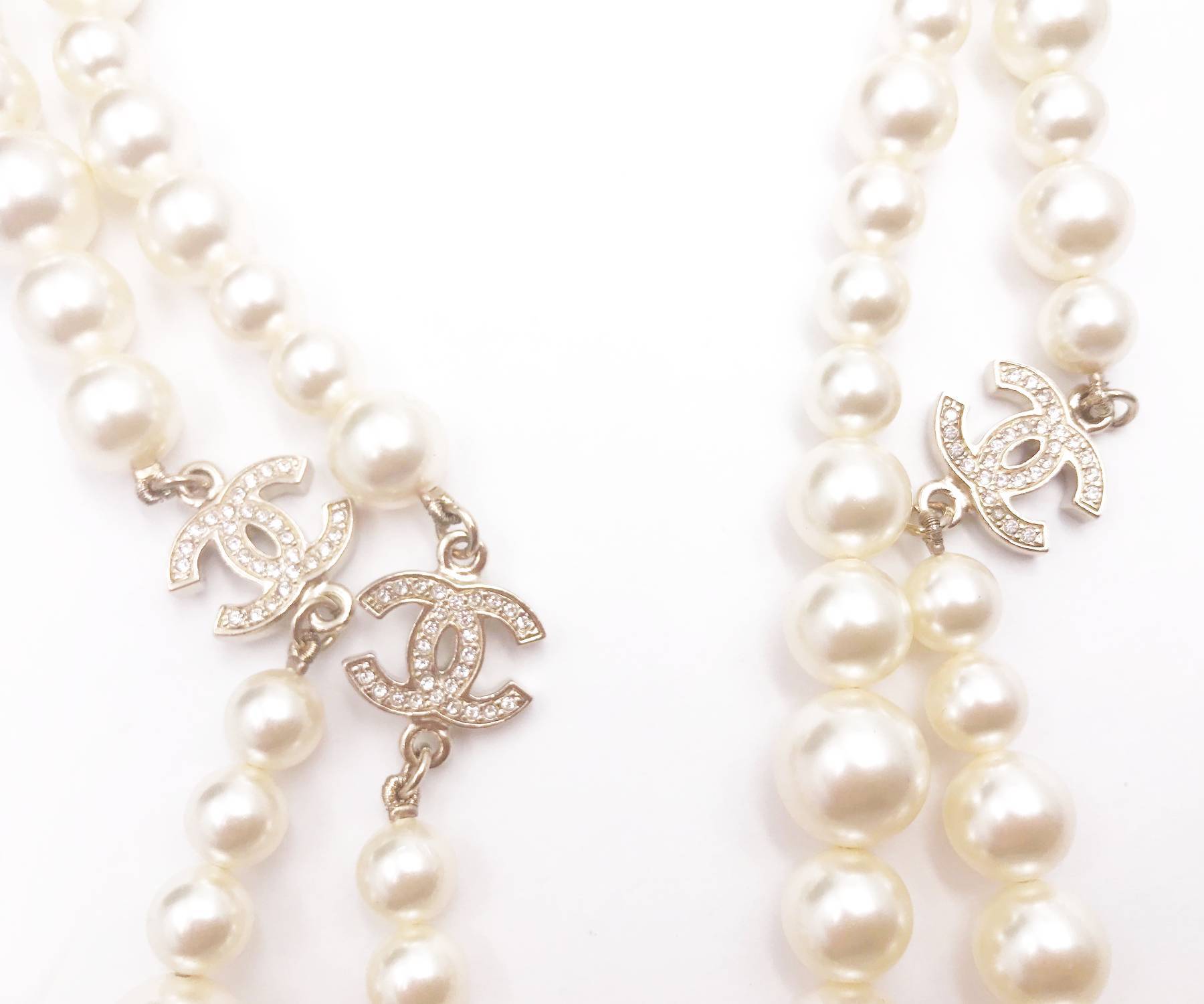 Chanel Classic 3 Gold CC Crystal Long Pearl Necklace