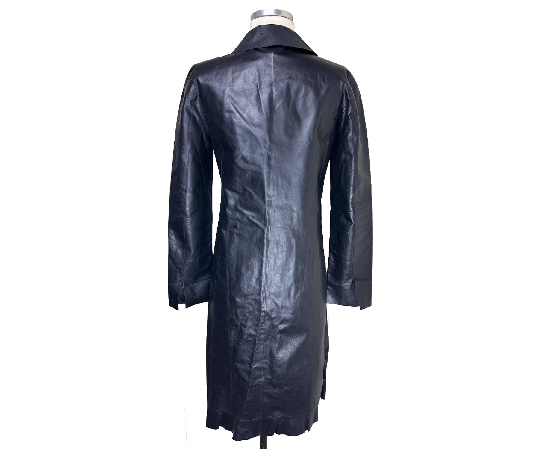 -Classic black leather 1 ply raw edge coat is good for every day and under the rain
