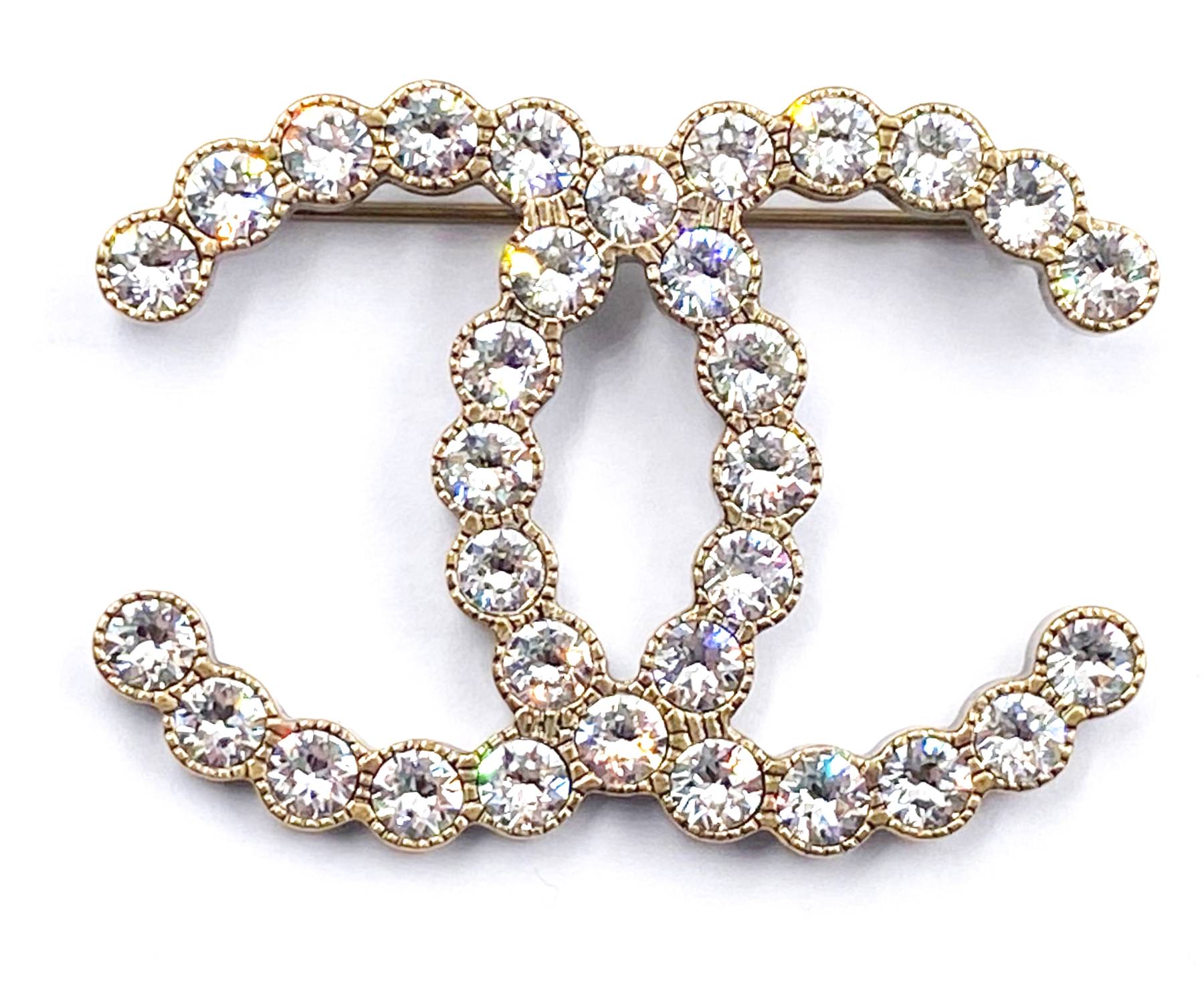 Chanel Classic Rustic Gold Crystal Brooch