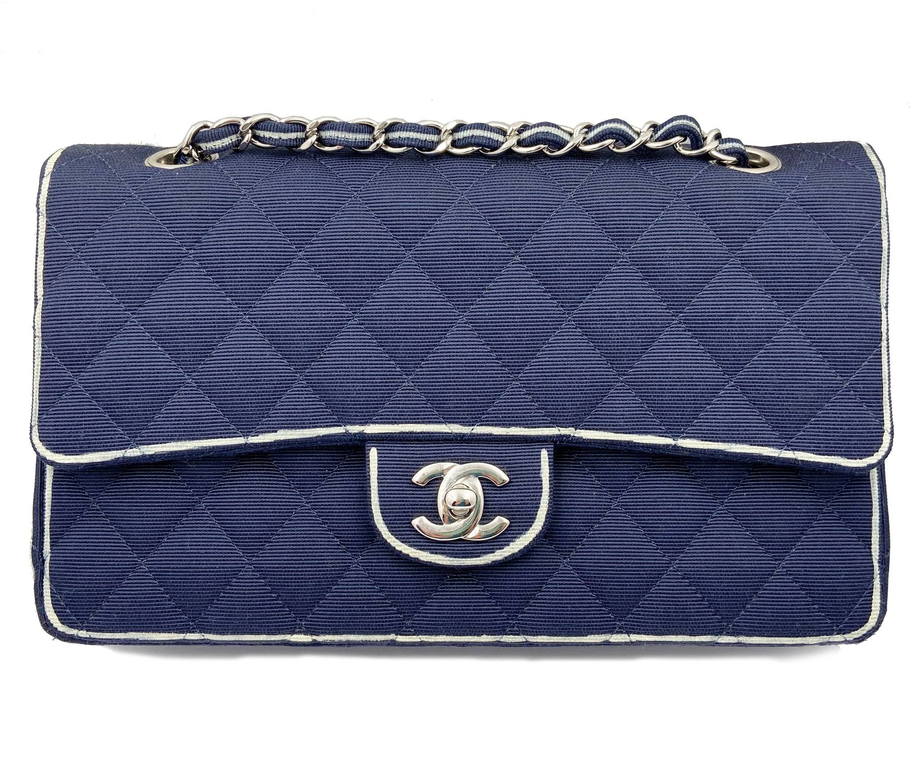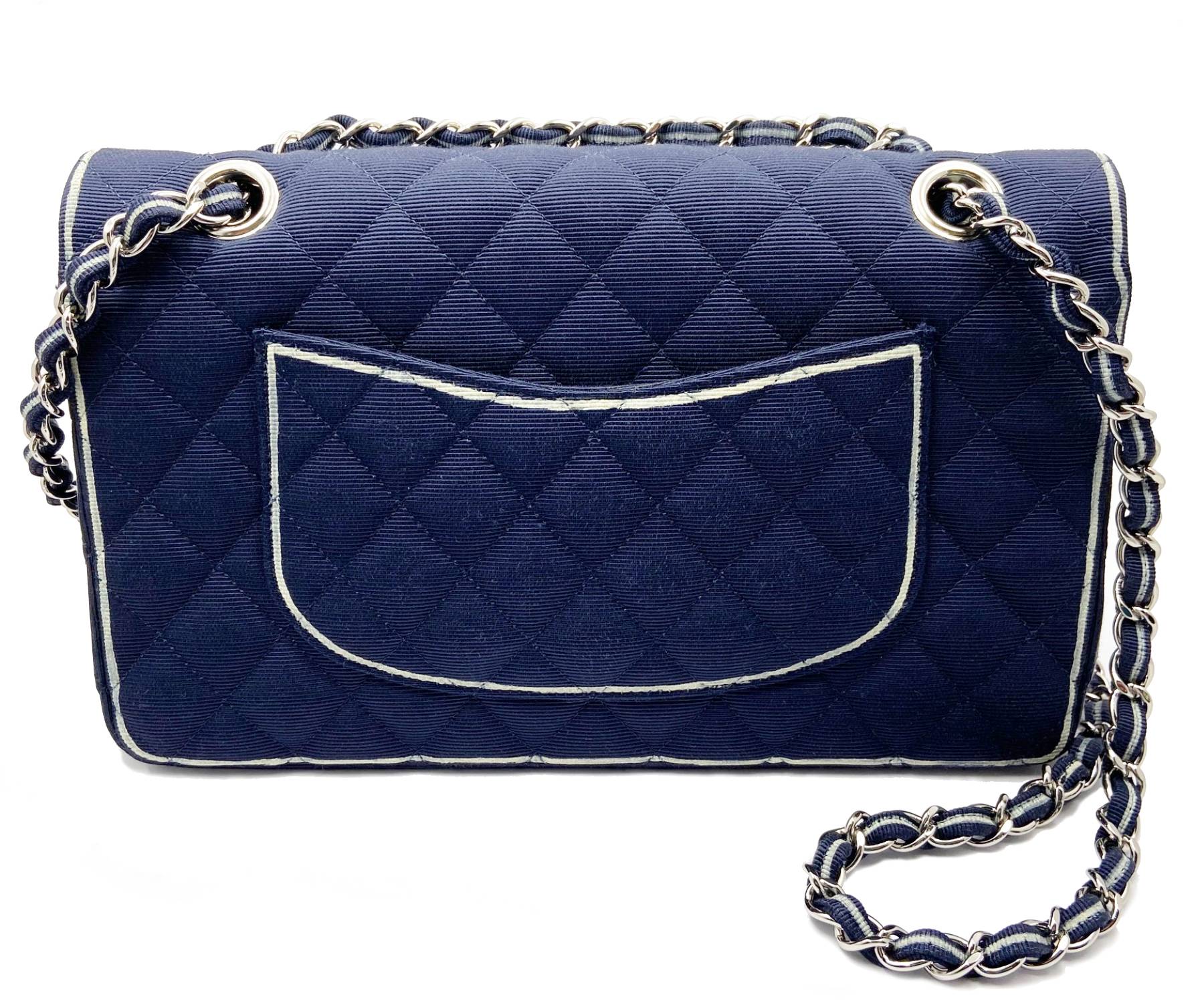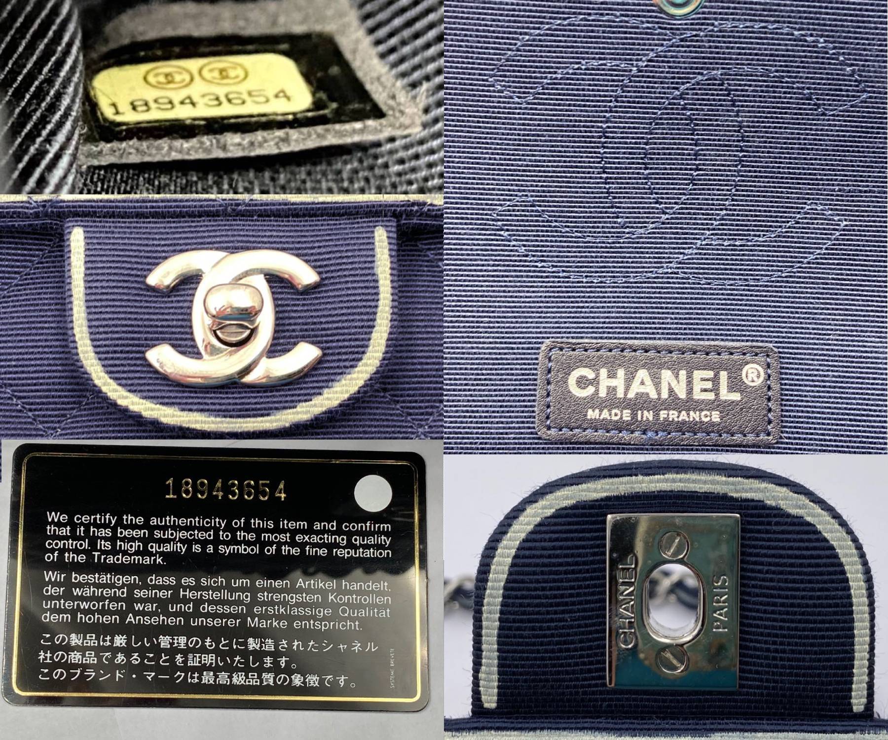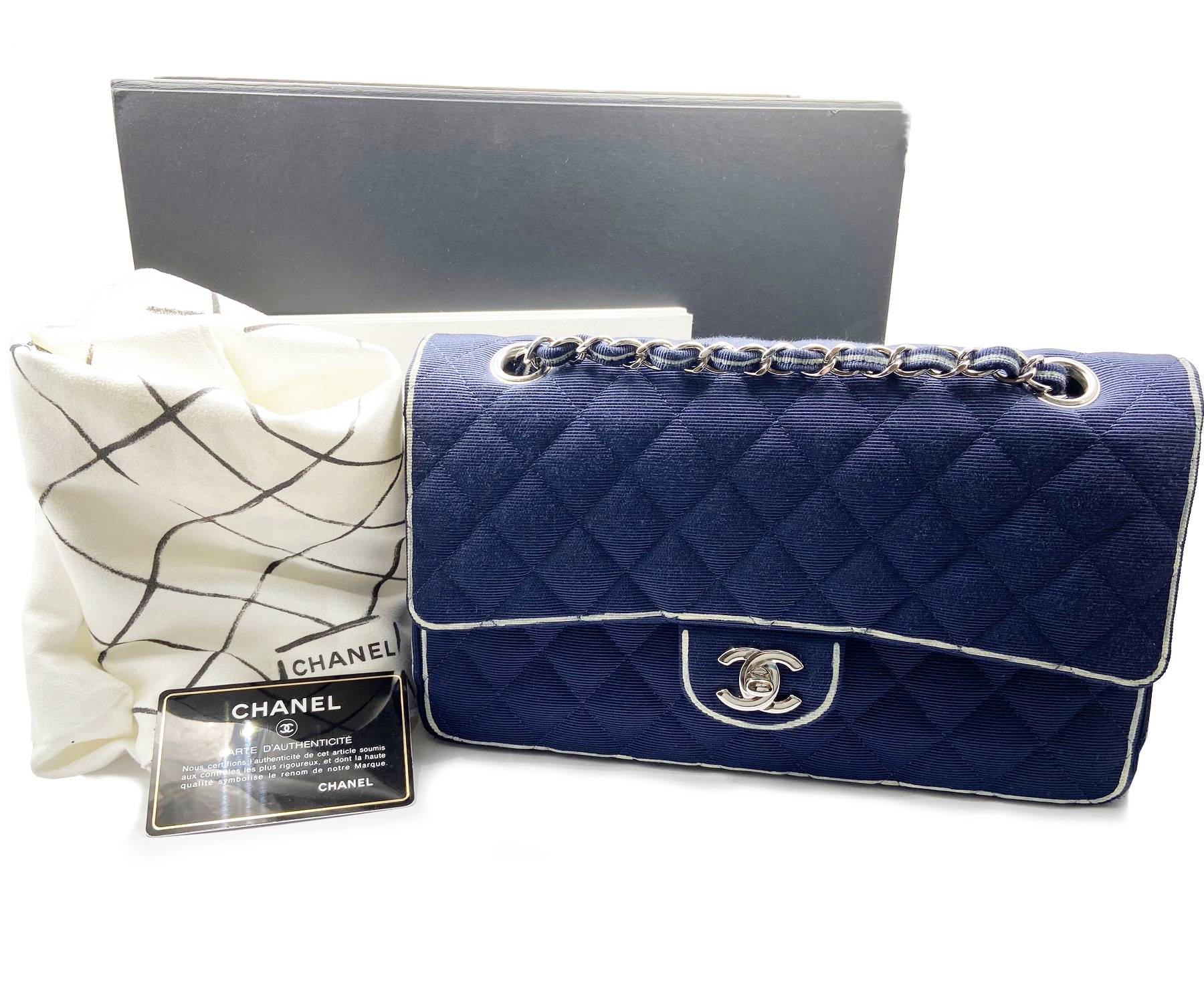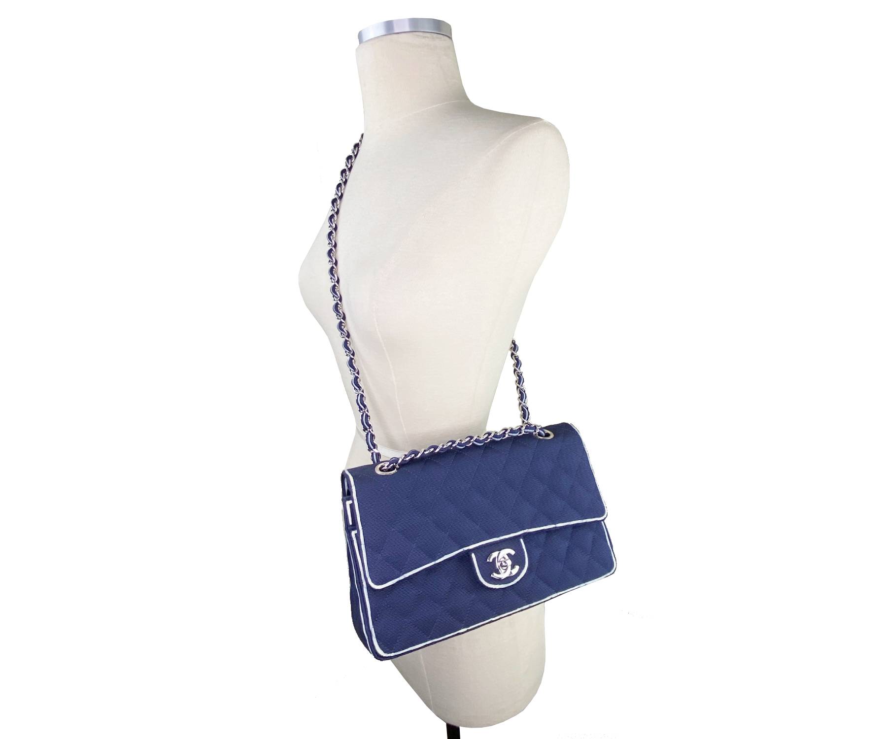 Chanel Classic Timeless 10″ White Paint Navy Double Flap Shoulder Bag
