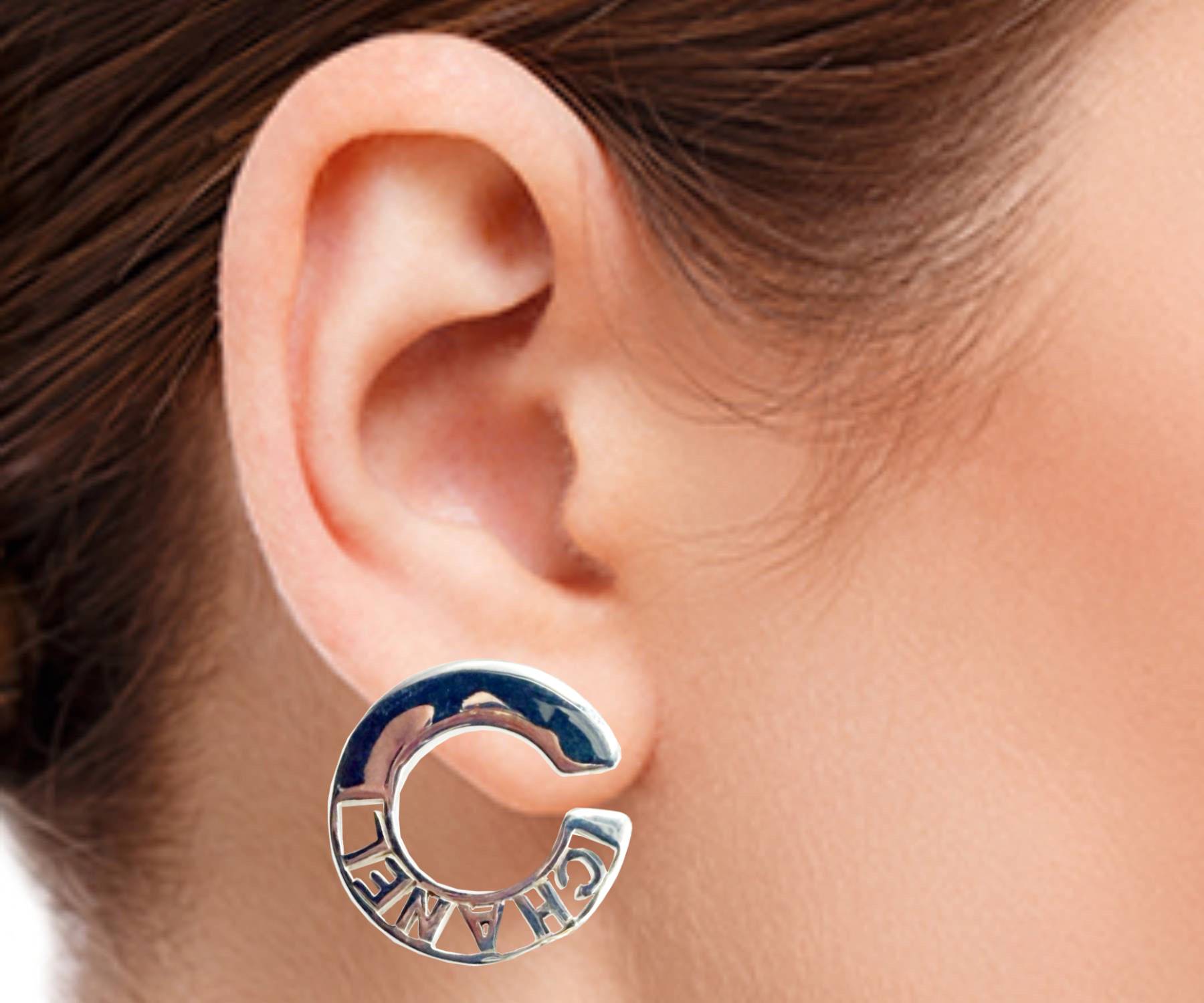 Chanel Fine Jewelry 925 Silver Letter C Clip on Earrings