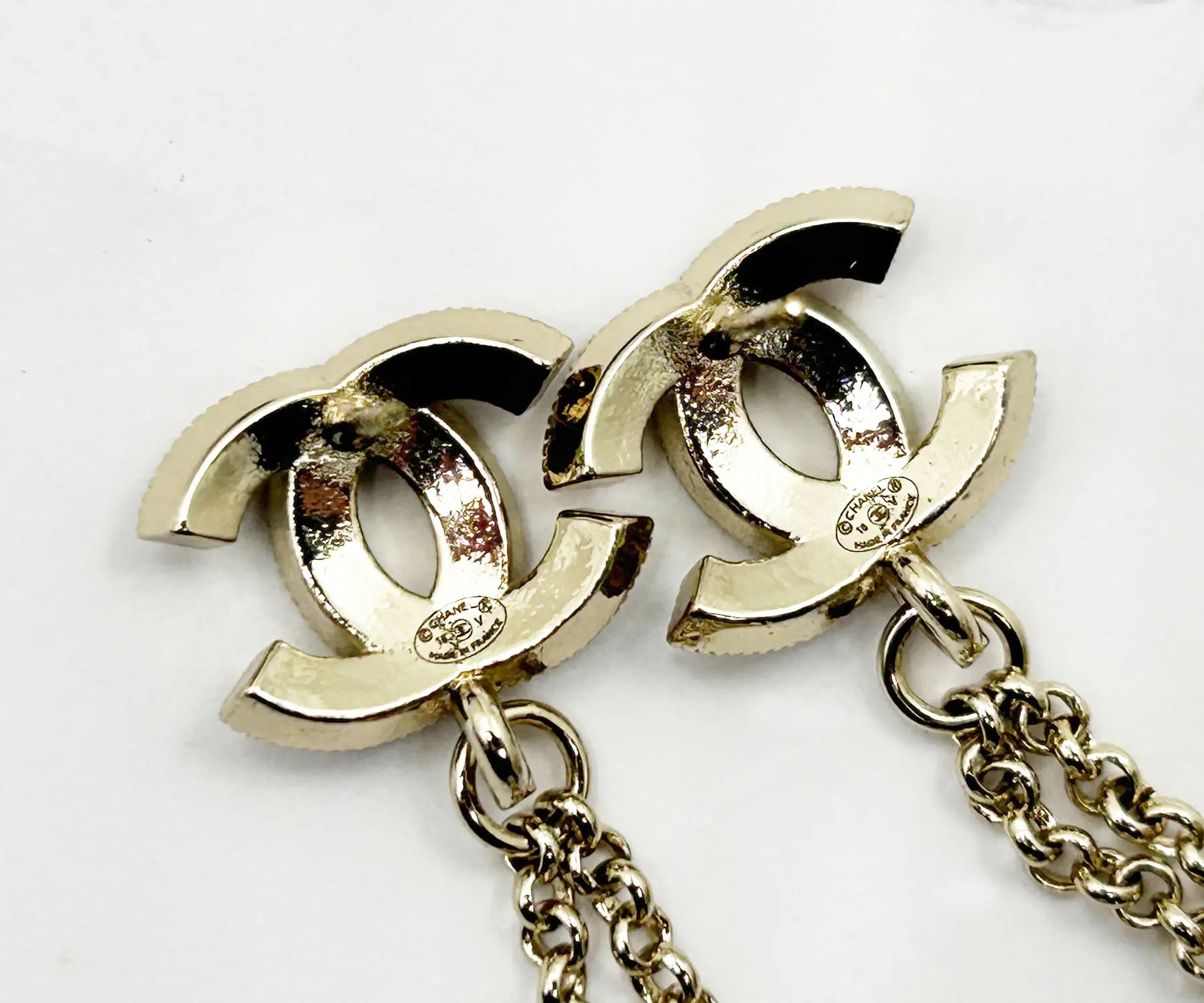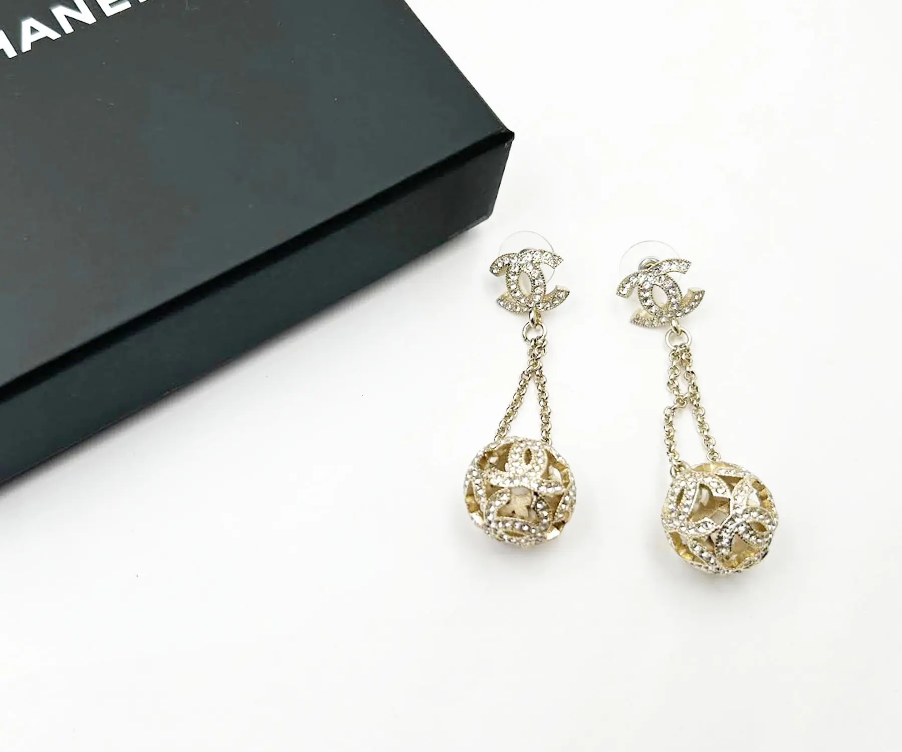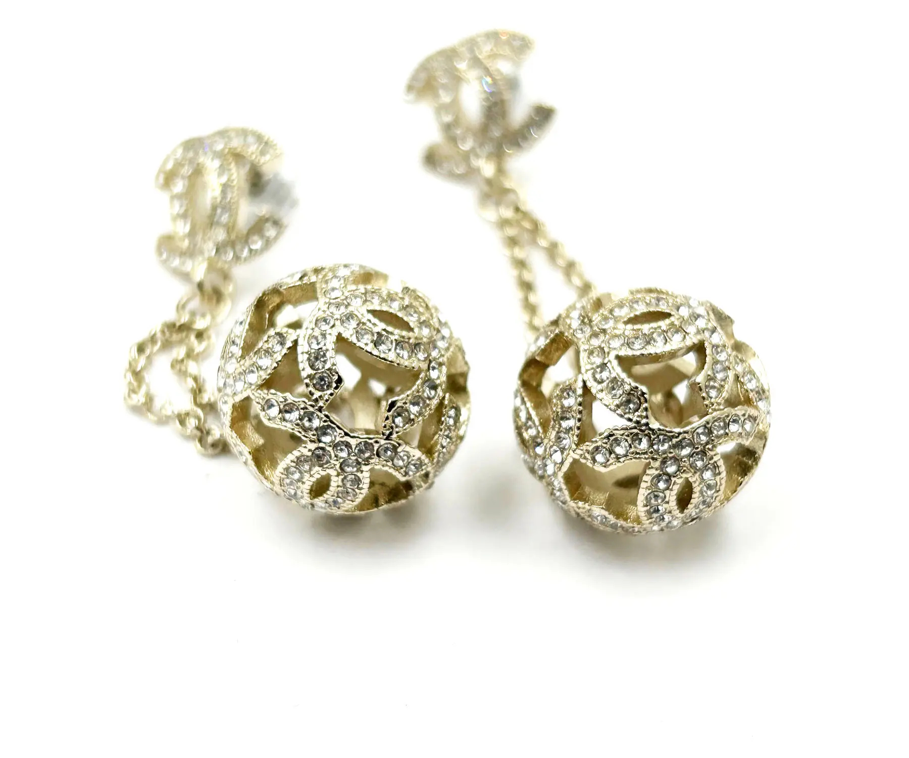 Chanel Gold CC Crystal Ball Dangle Piercing Earrings