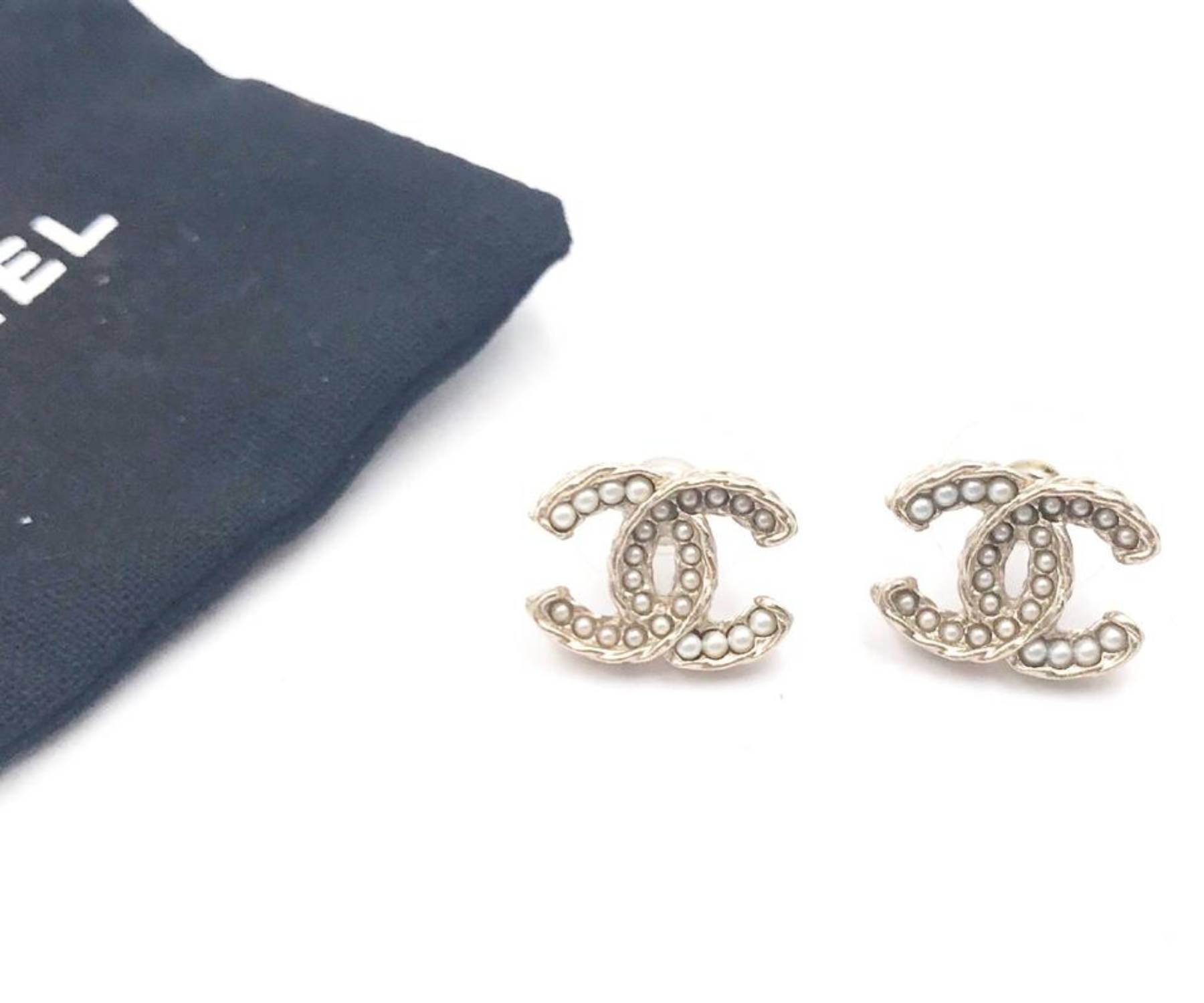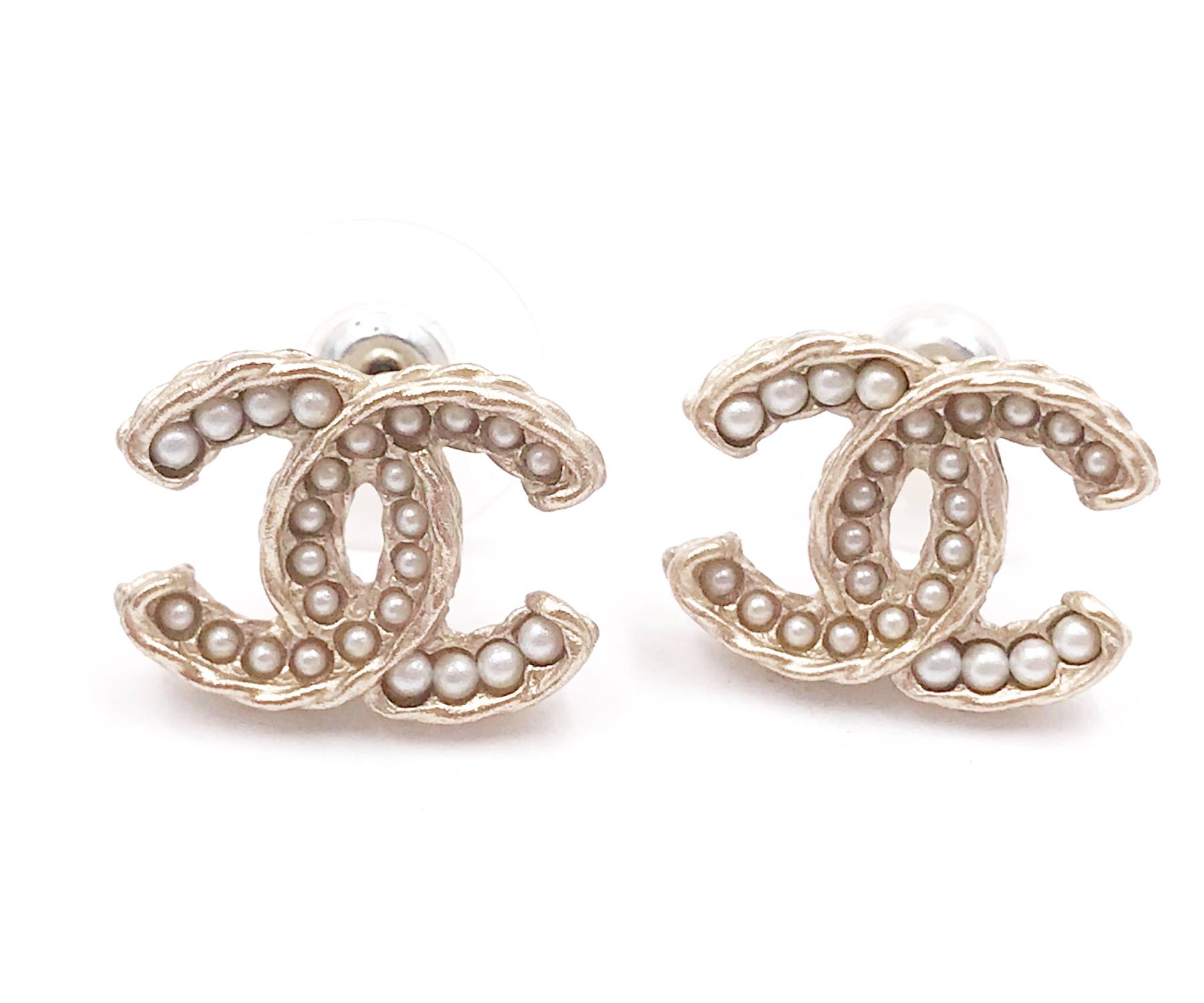 Chanel Gold CC Gradient Pearl Piercing Earrings