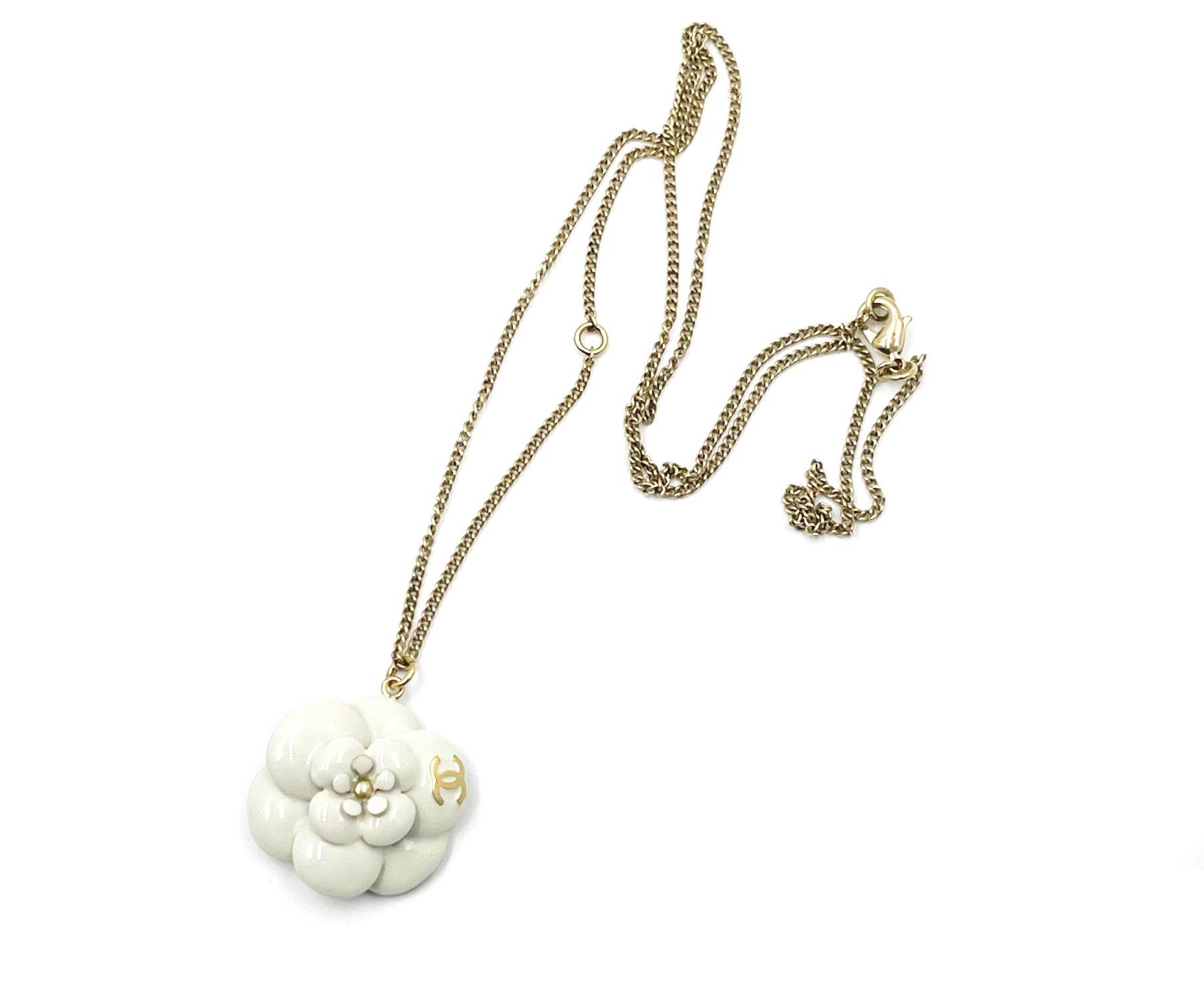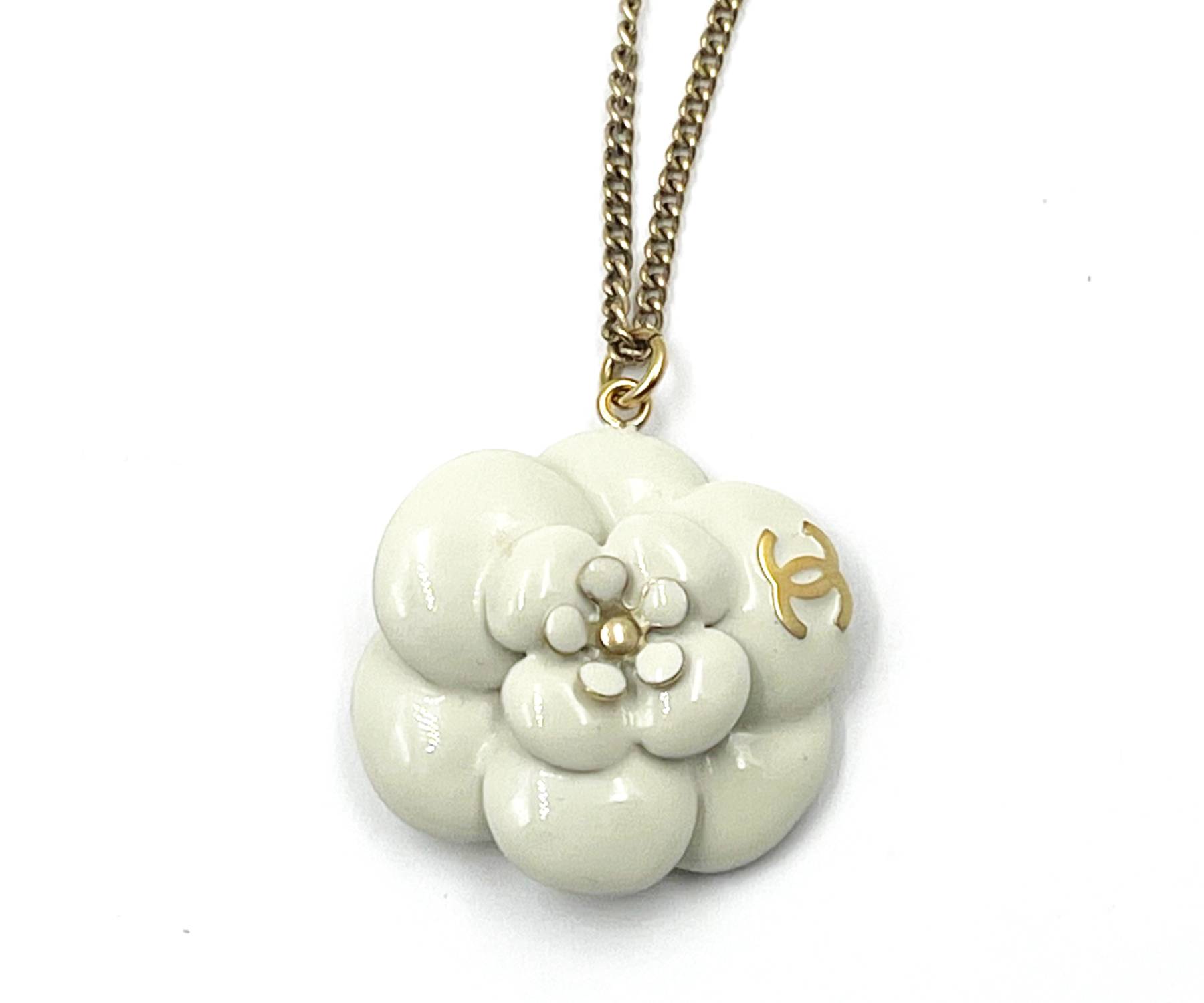 Chanel Gold CC Ivory Enamel Camellia Pendant Necklace