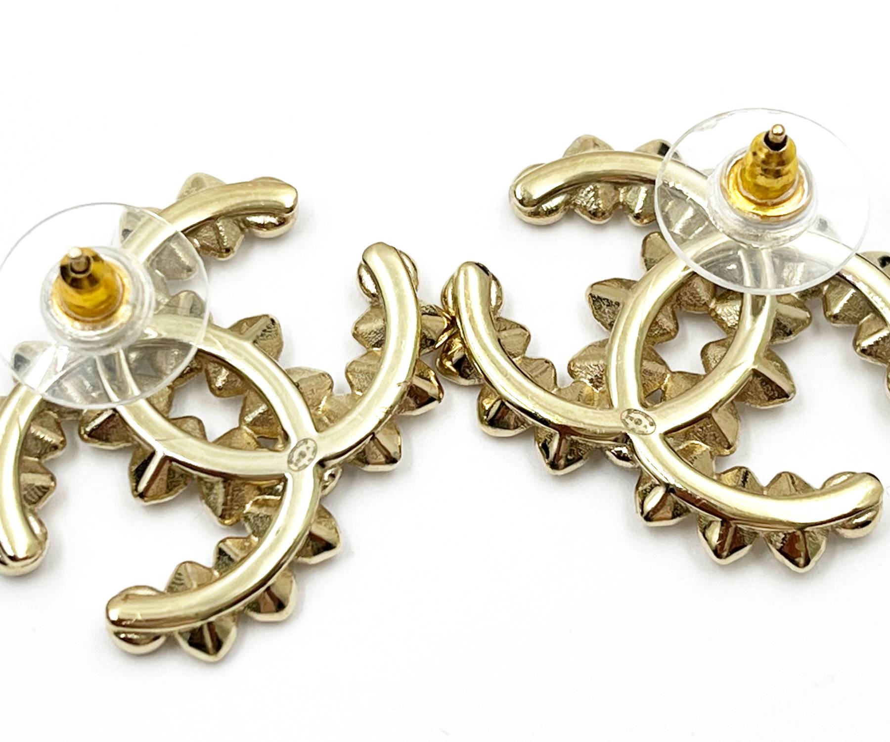Chanel Gold CC Marquise Crystal Large Piercing Earrings