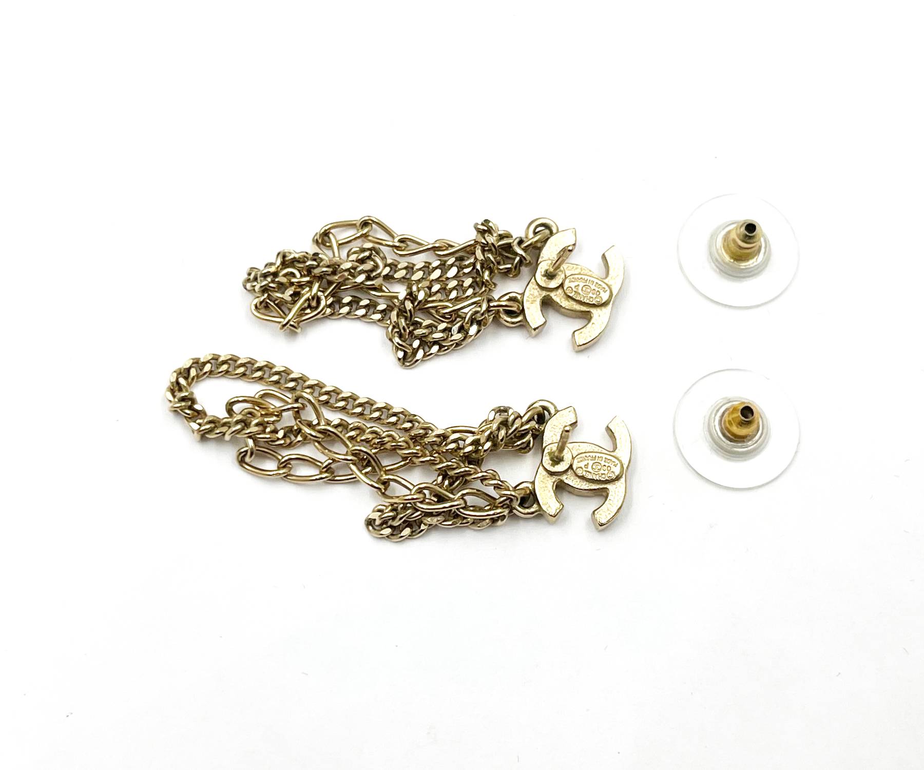 Chanel Gold CC Multi Chain Dangle Piercing Earrings