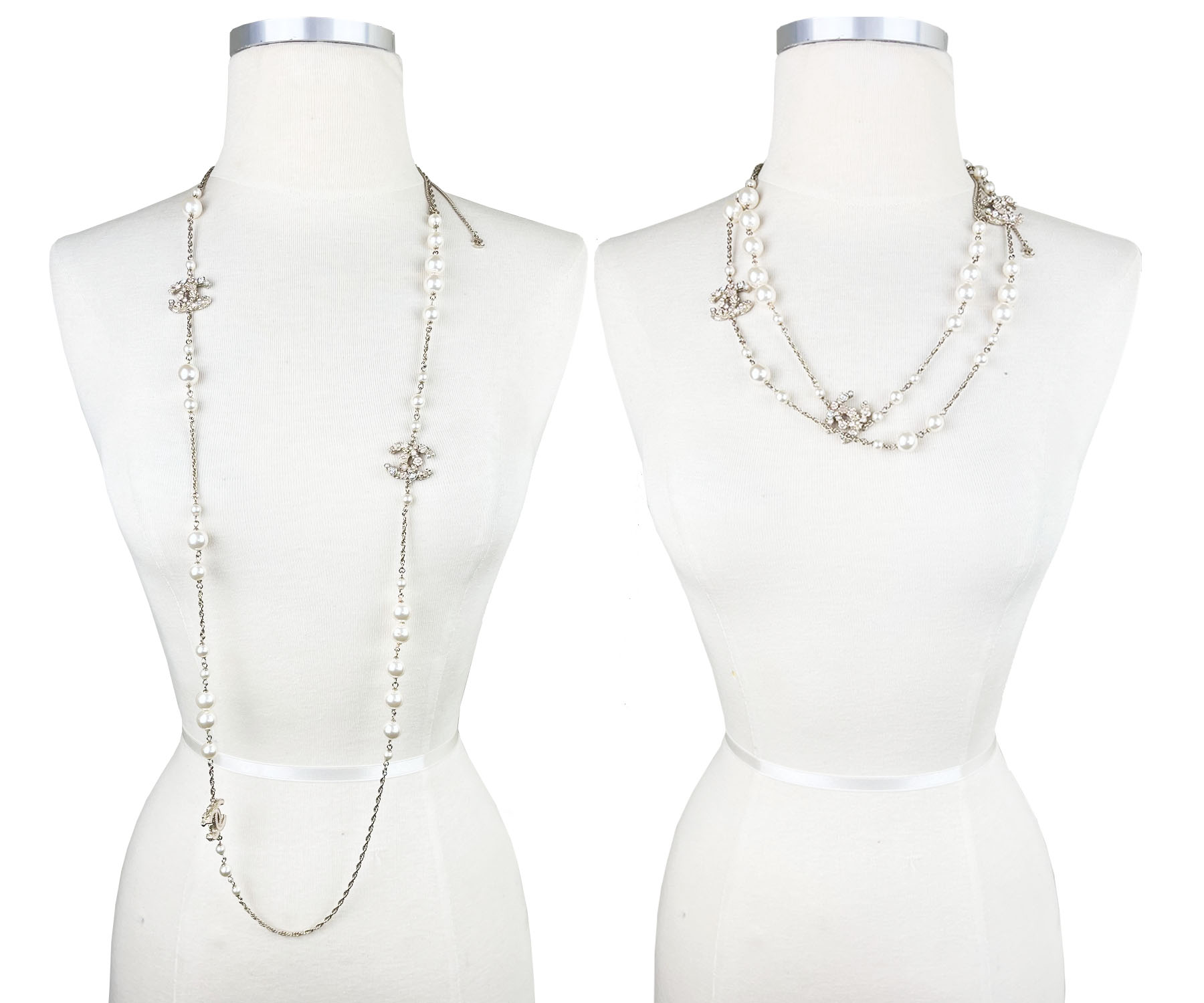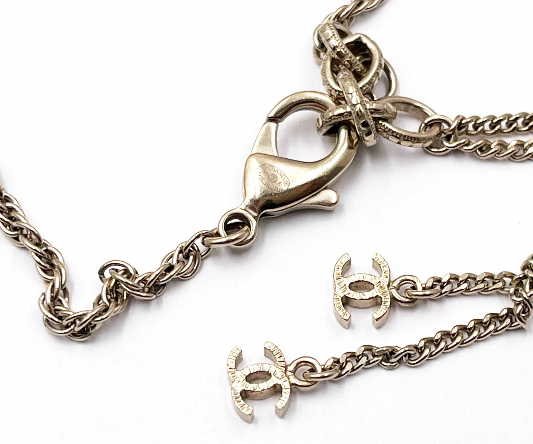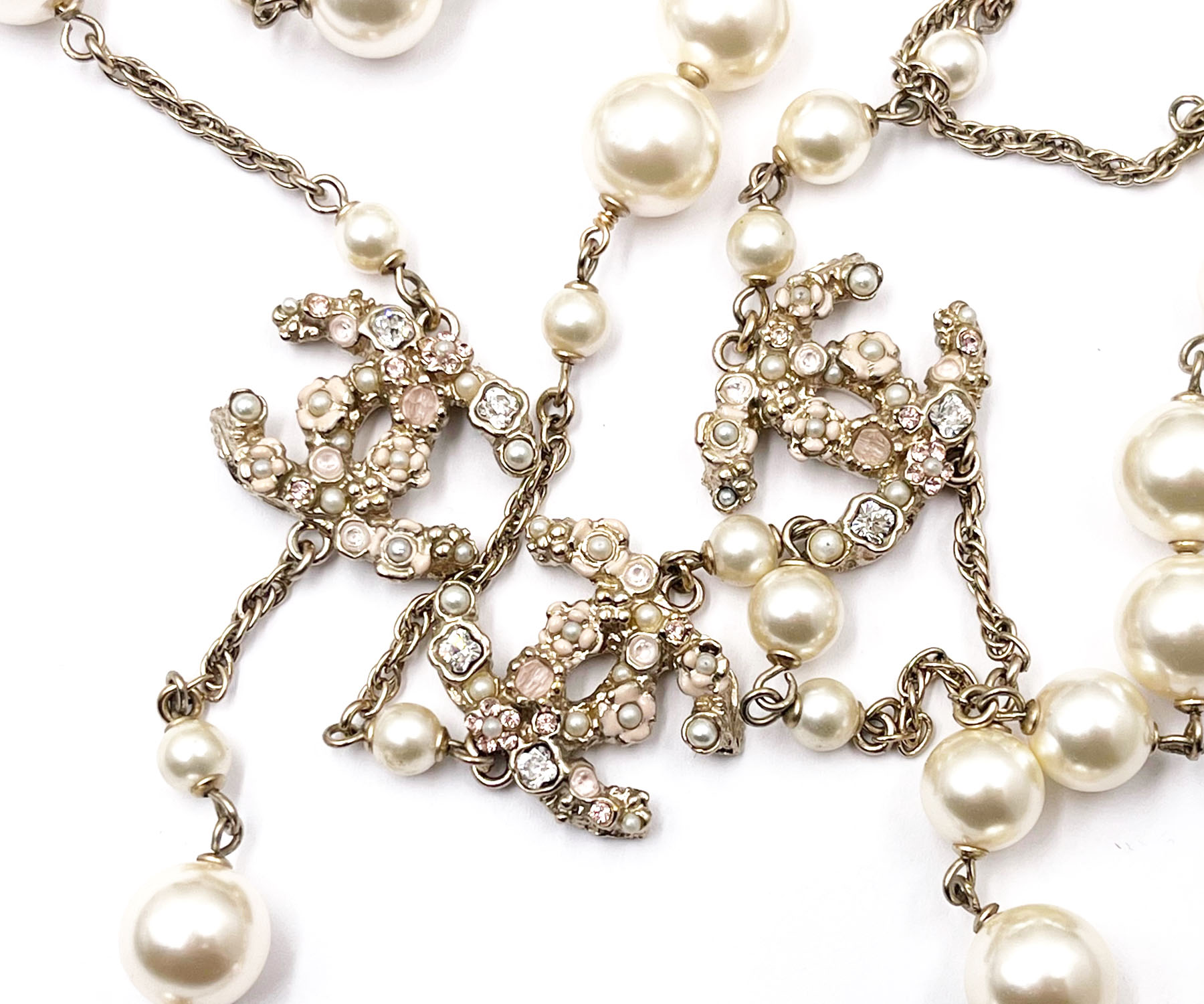 Chanel gold CC Pastel Flower Crystal Pearl Long Necklace