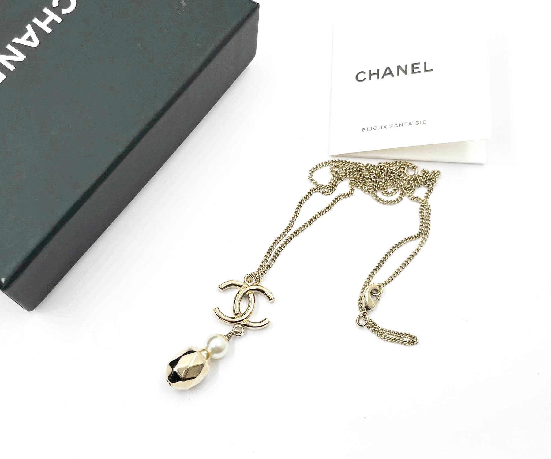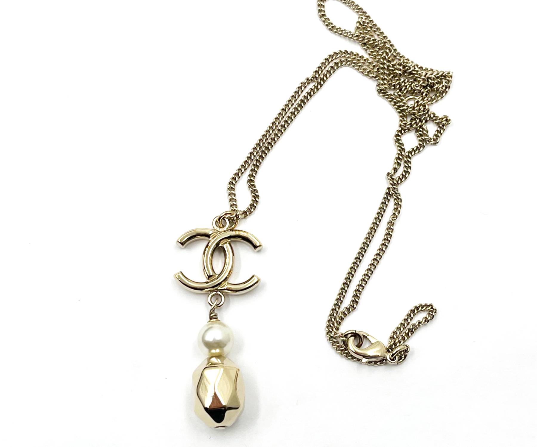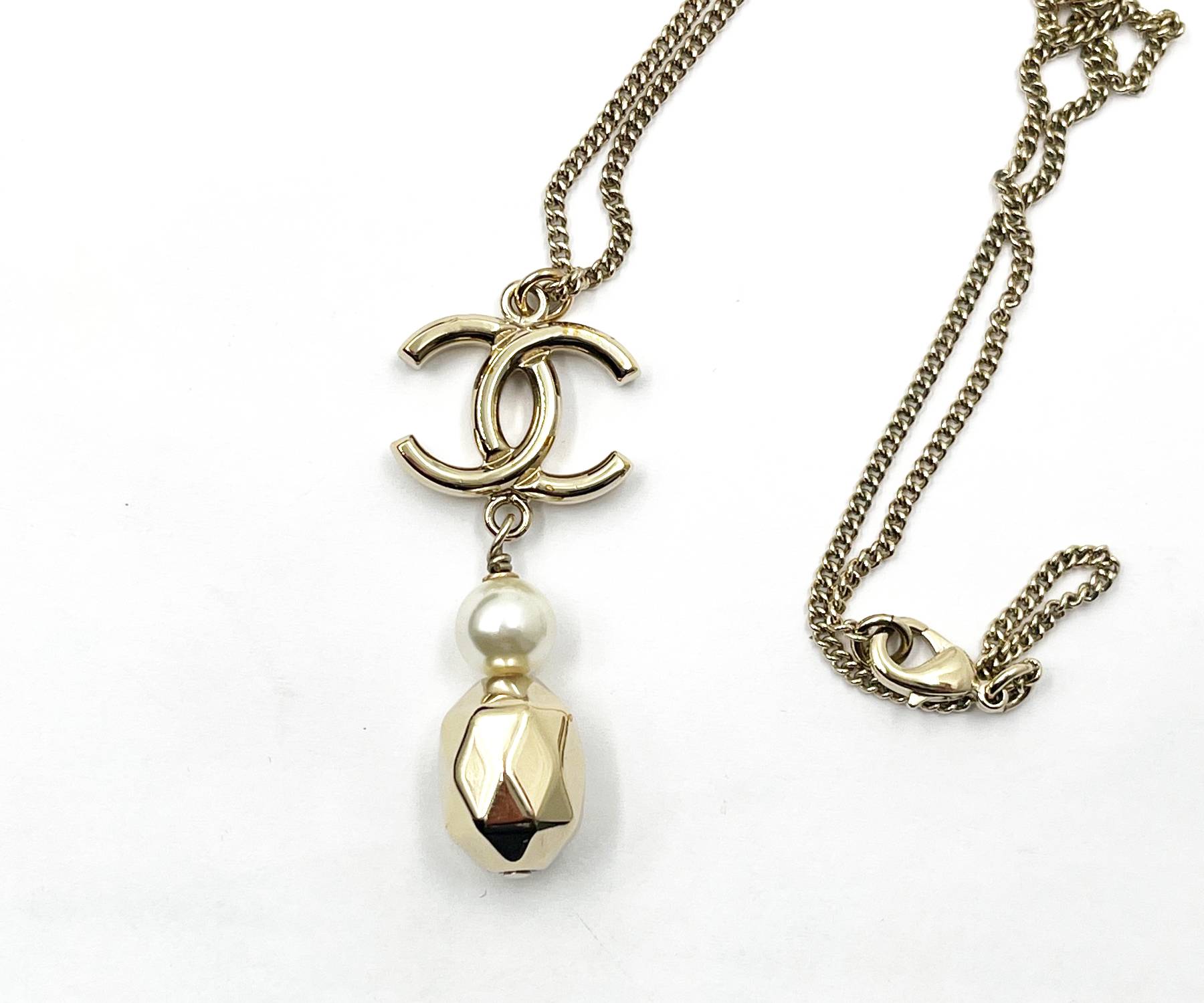 Chanel Gold CC Pearl Geo Bead Pendant Necklace