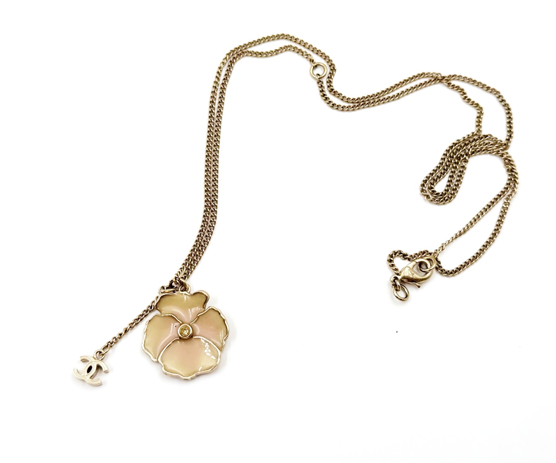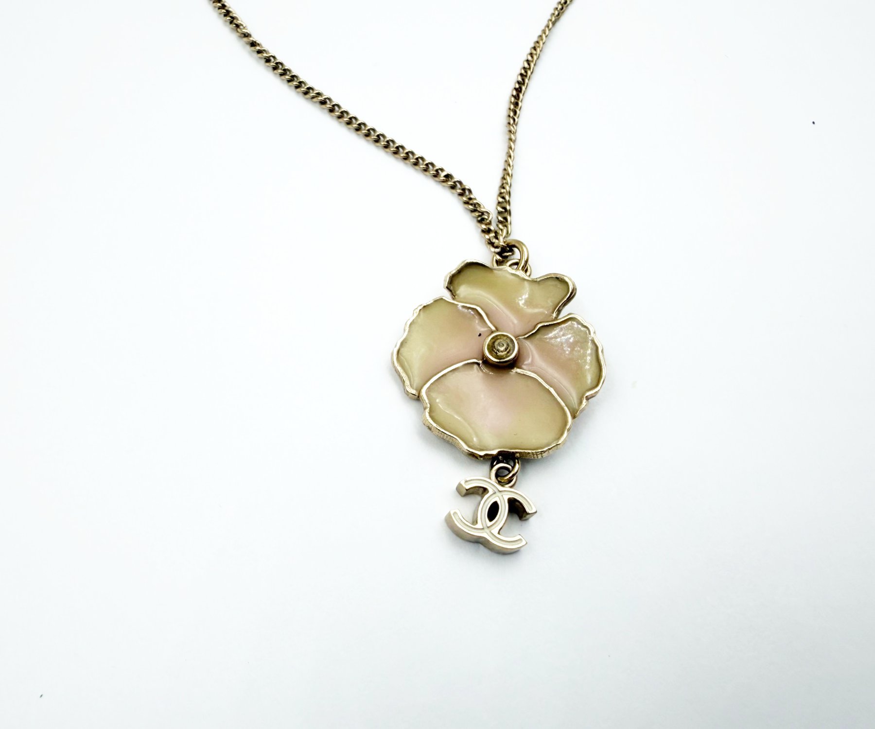 Chanel Gold CC Pink Camellia Flower Necklace
