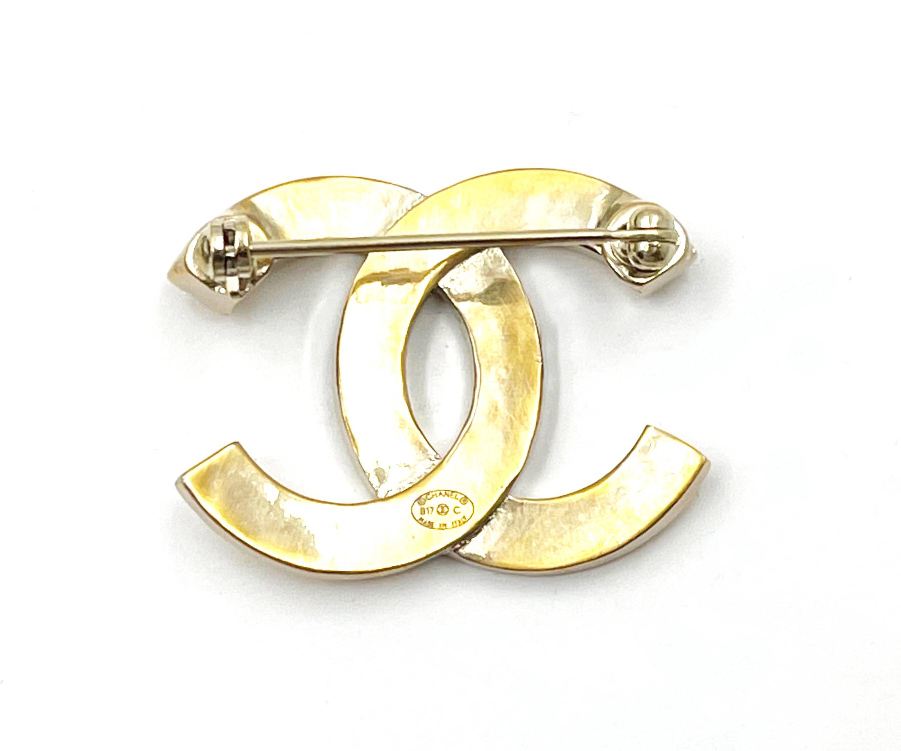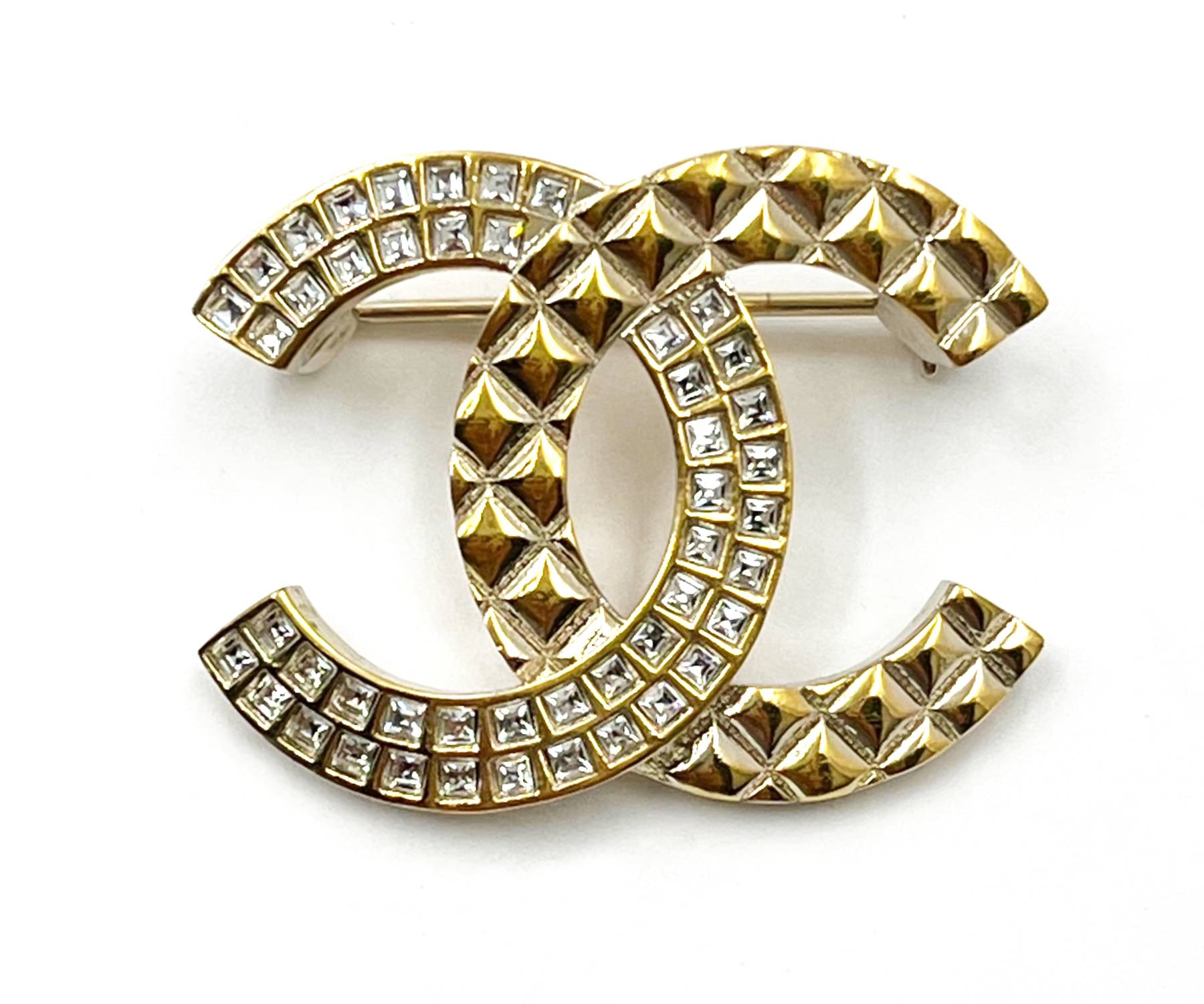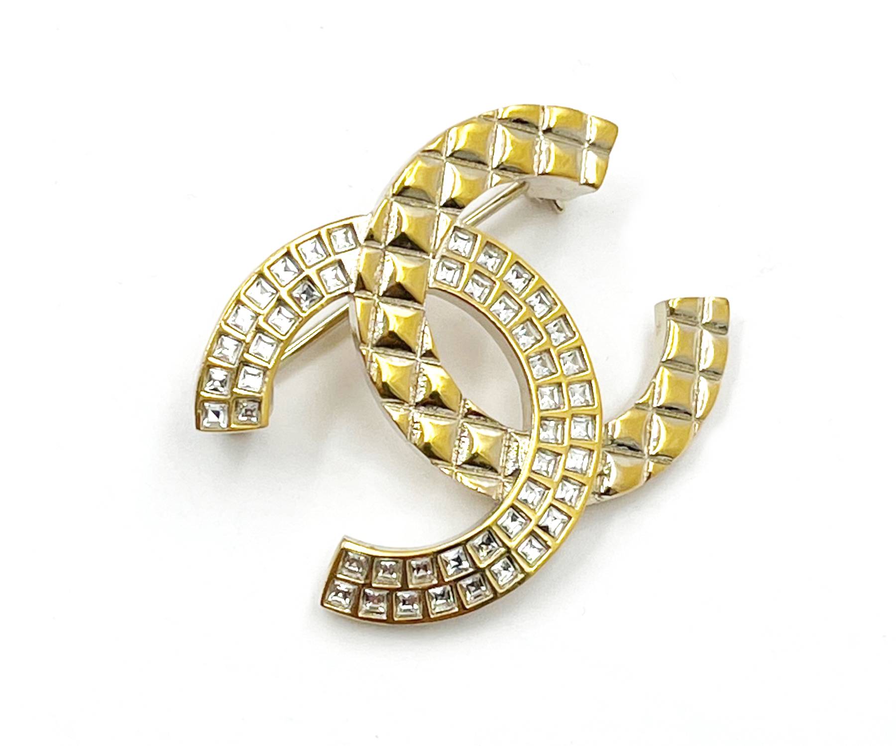 Chanel Gold CC Plaid Princess Square Crystal Small Brooch