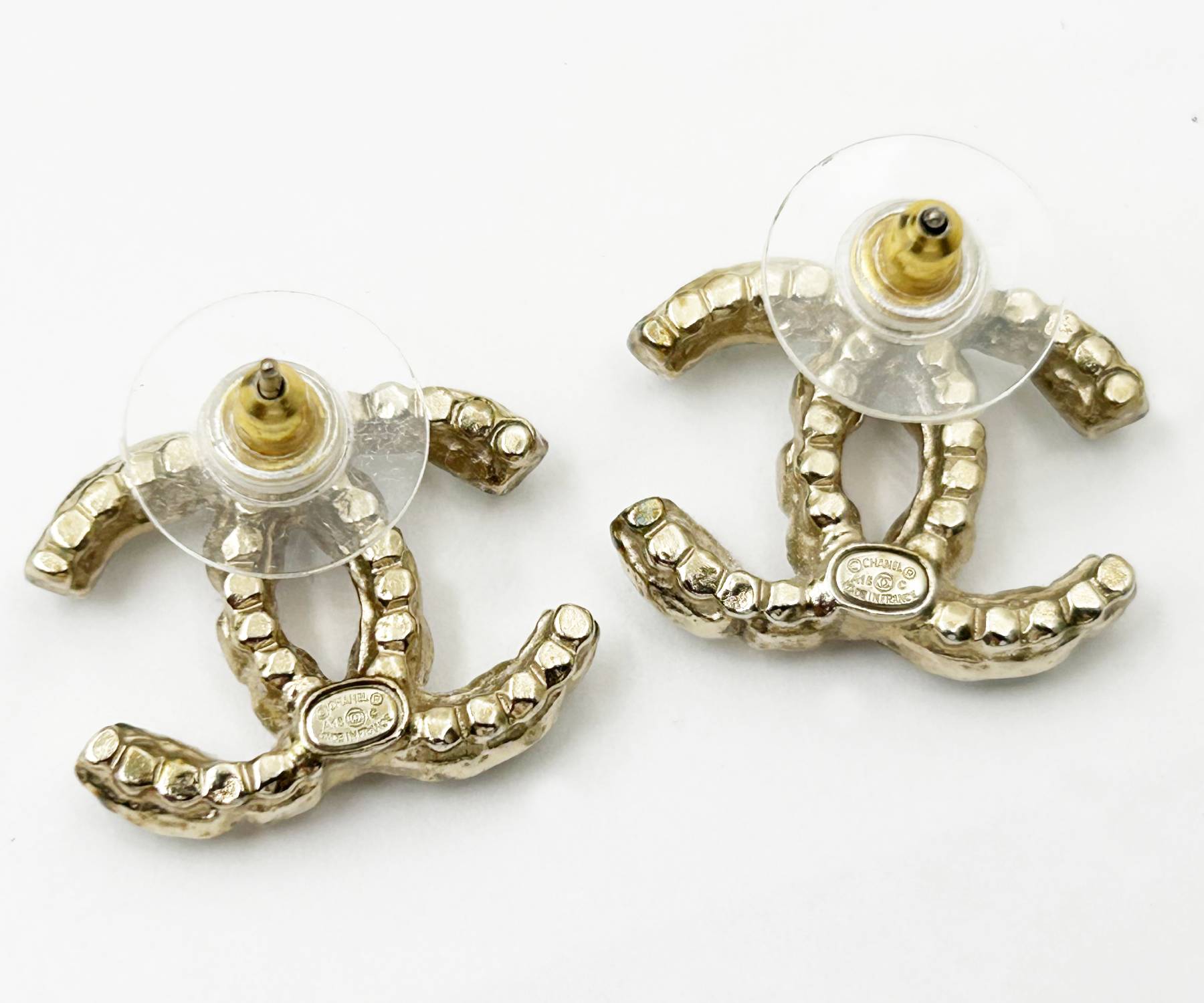 Chanel Gold CC Seed Pearl Mint Crystal PIercing Earrings
