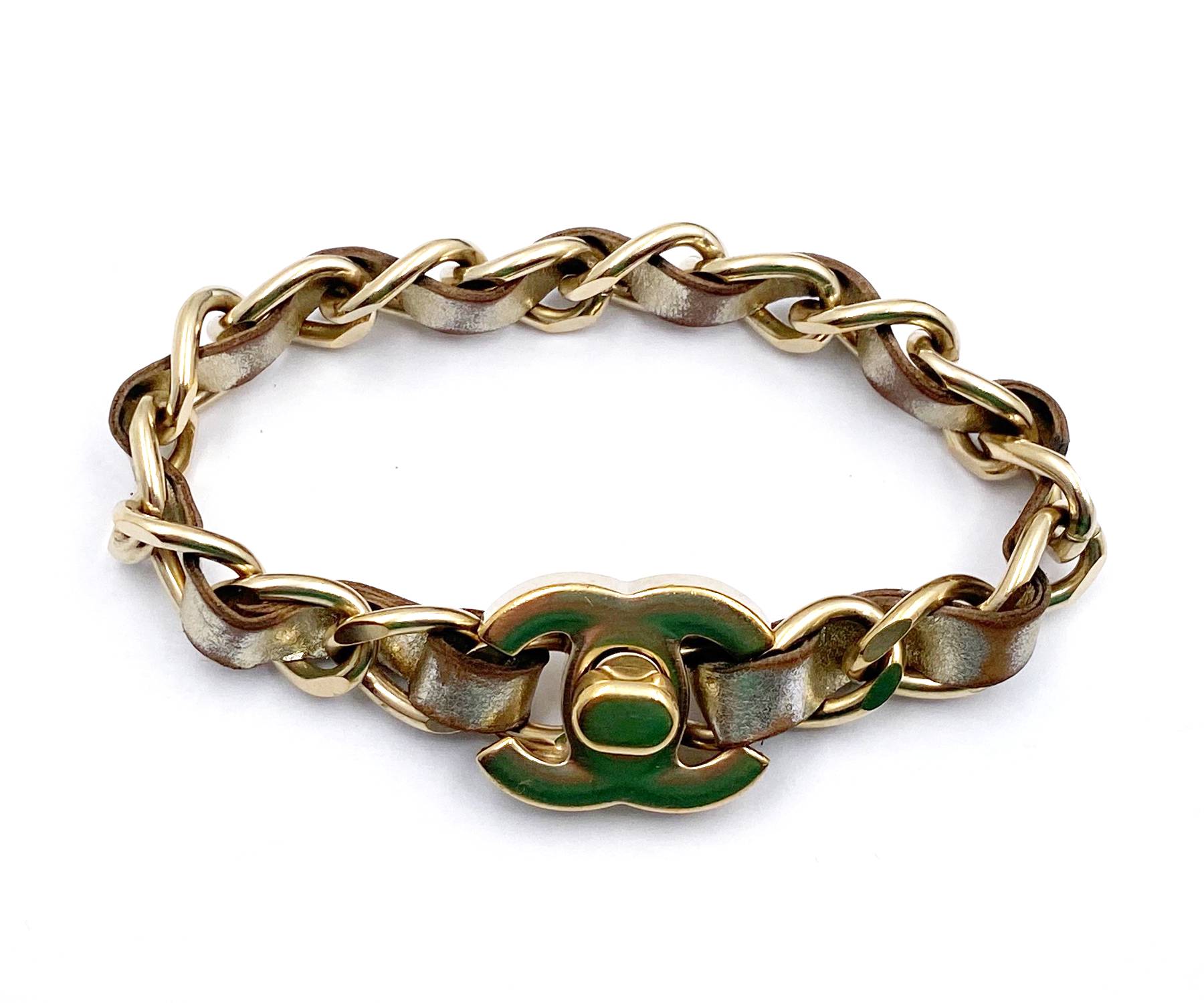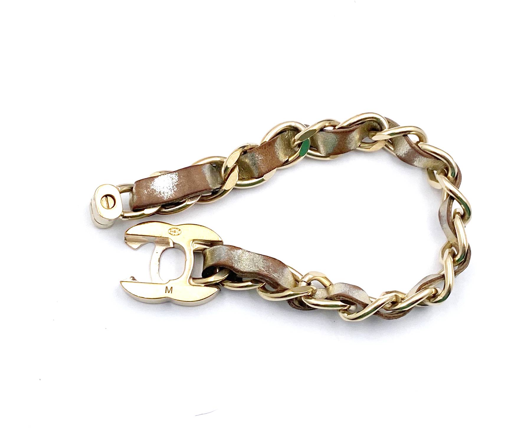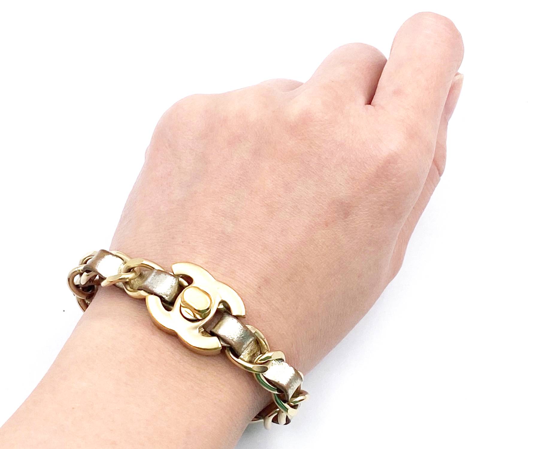 Chanel Gold CC Turnlock Leather Large Bracelet