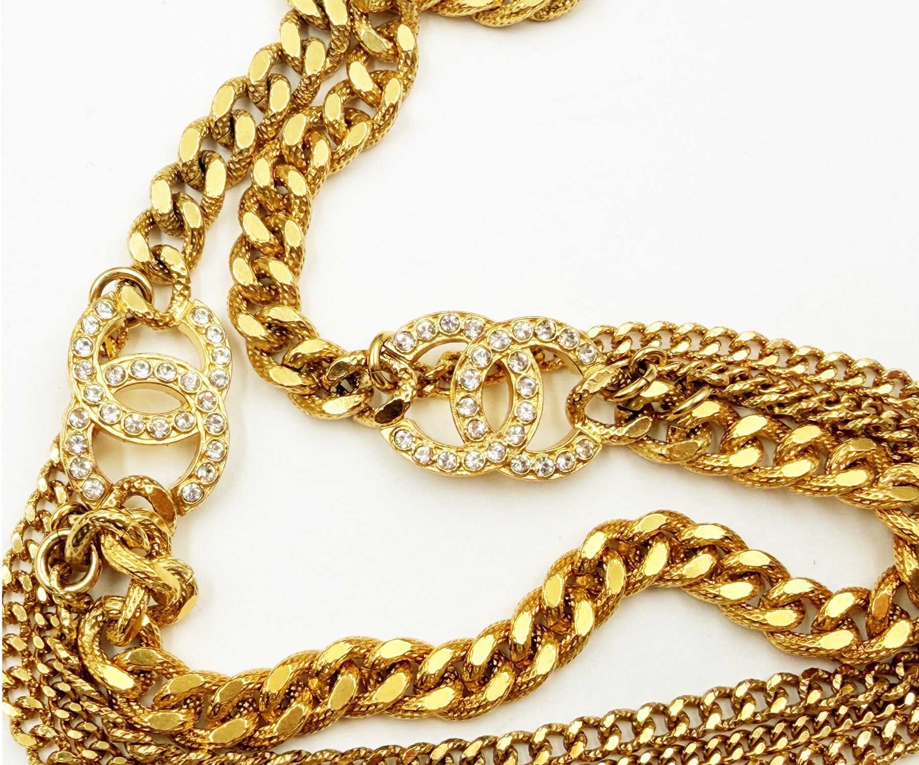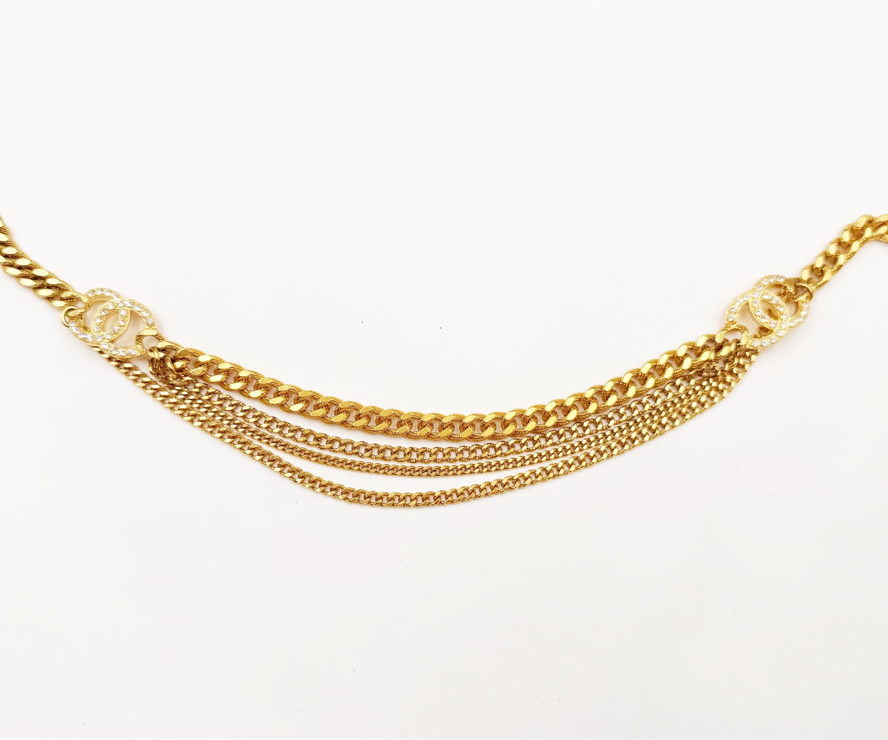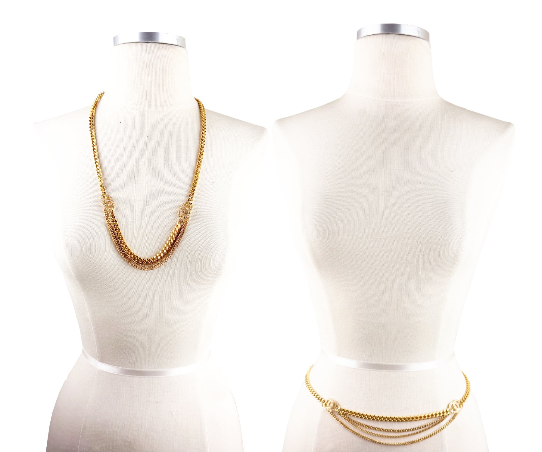 Chanel Gold Plated Double CC Crystal Chains Belt Necklace
