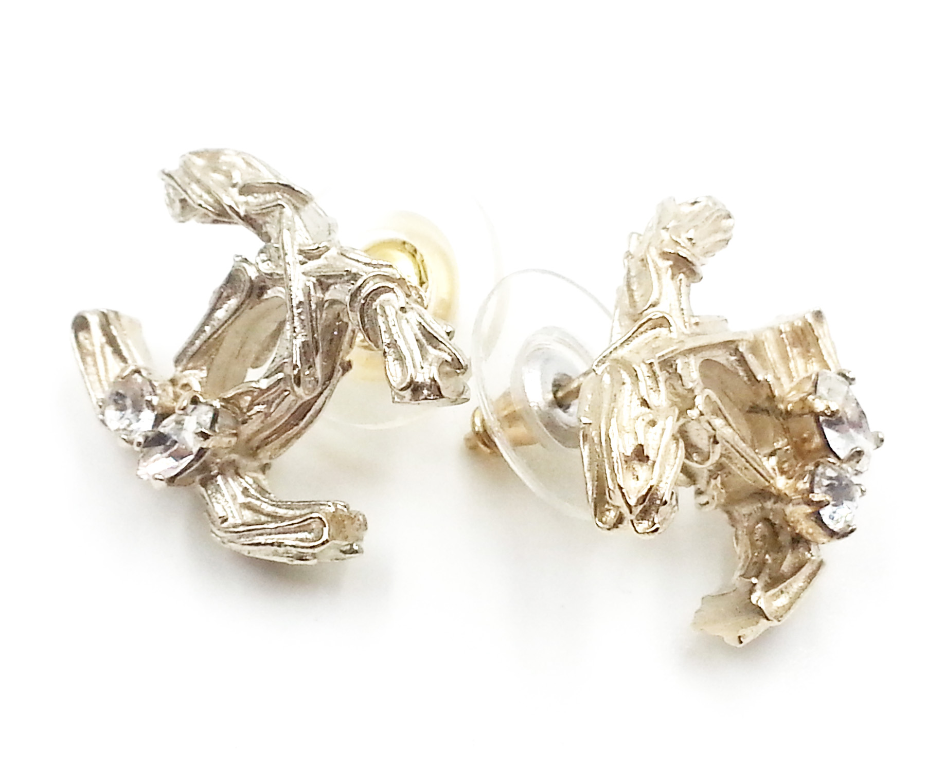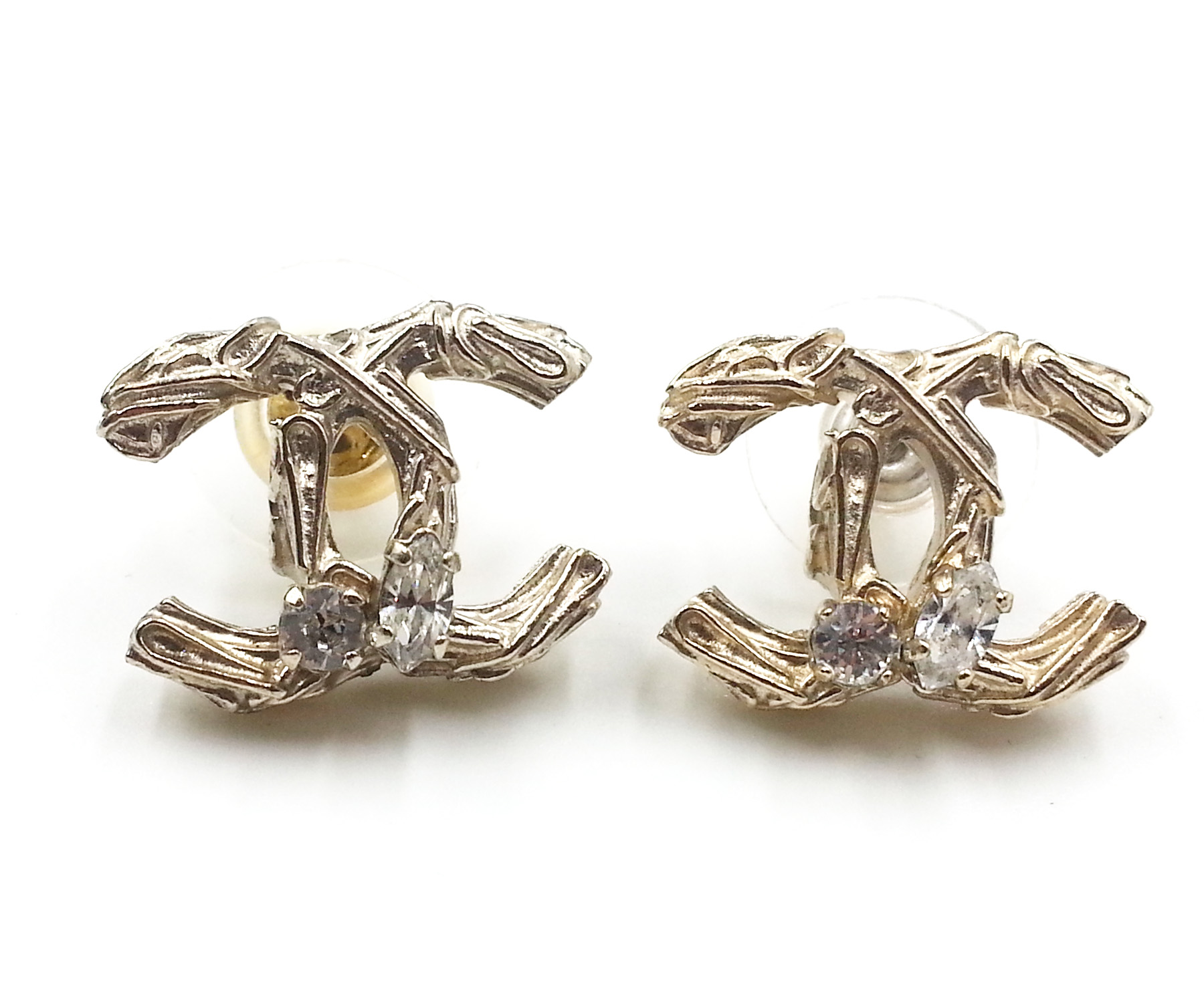 Chanel Gold Tree Branch CC Crystal Piercing Earrings