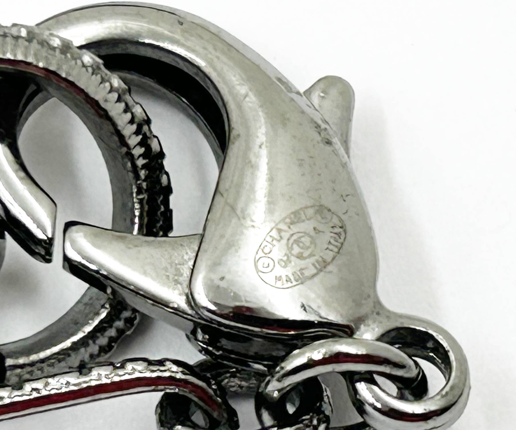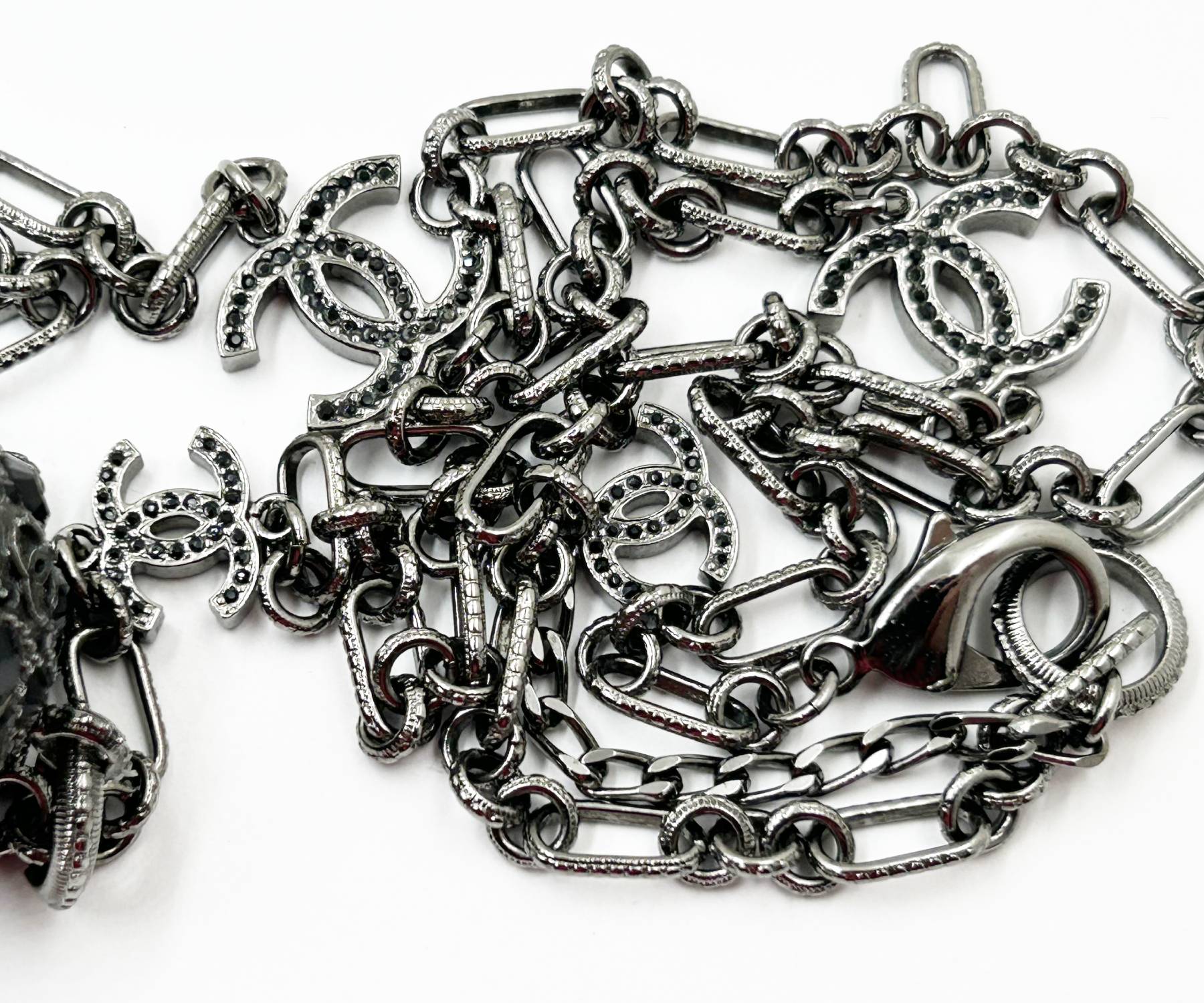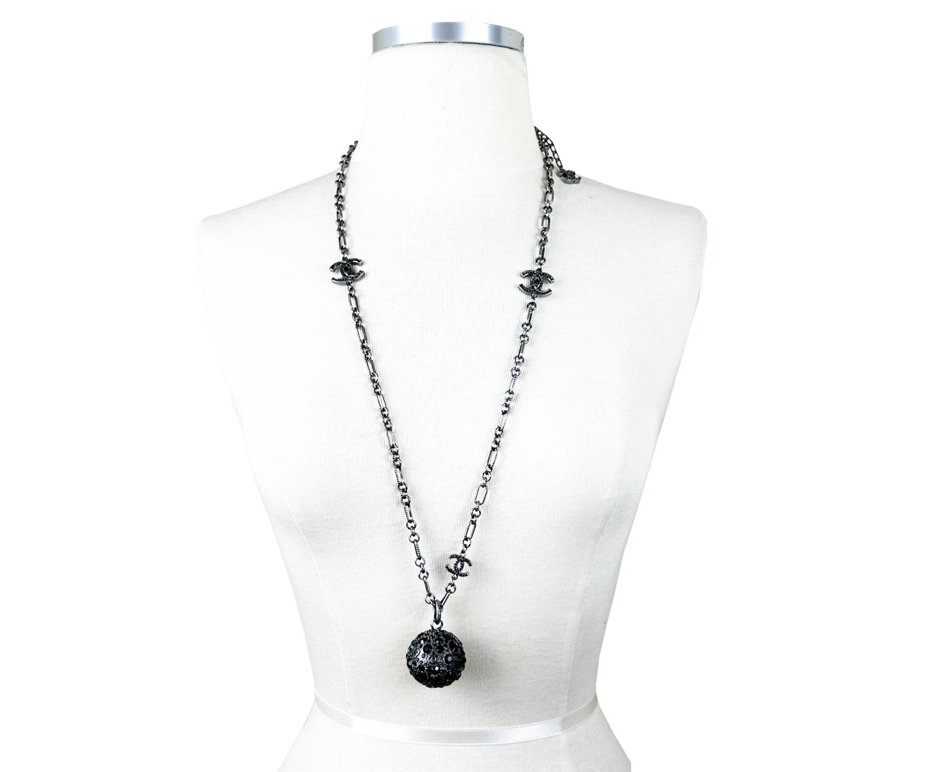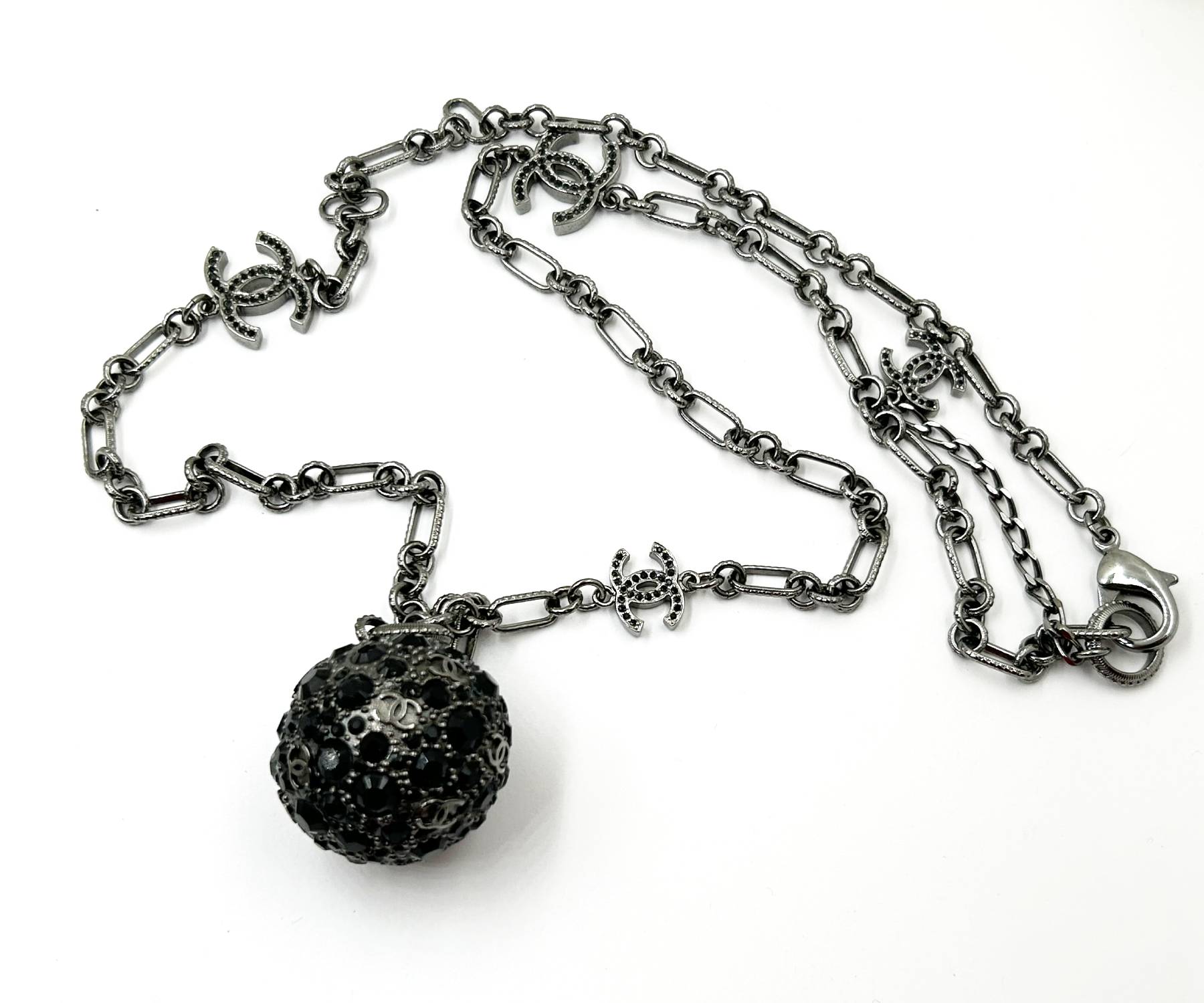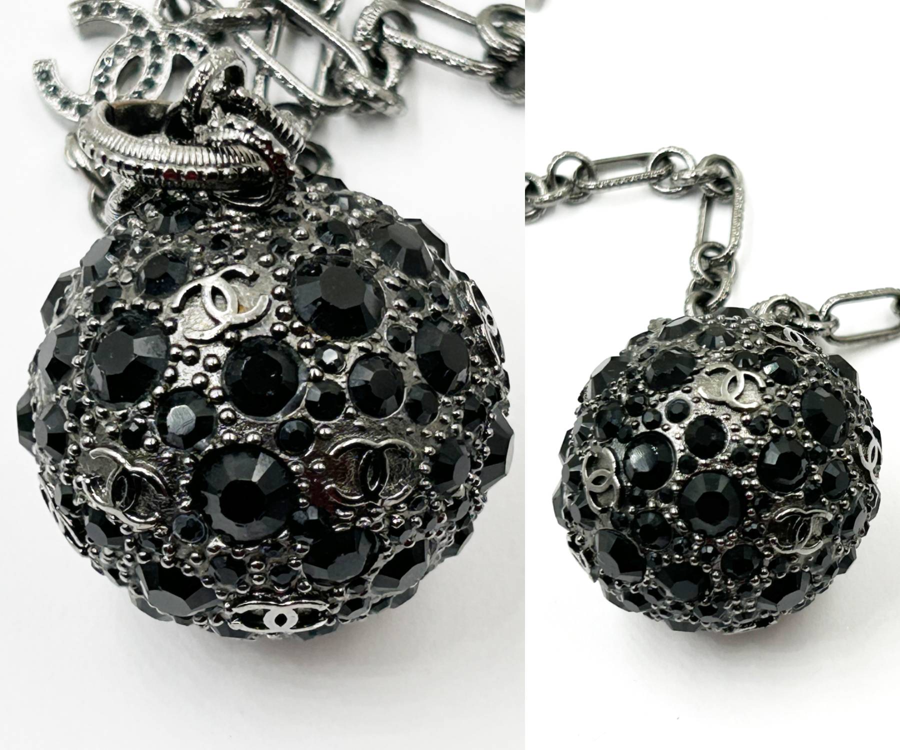 Chanel Gunmetal CC Black Crystal Ball Pendant Necklace