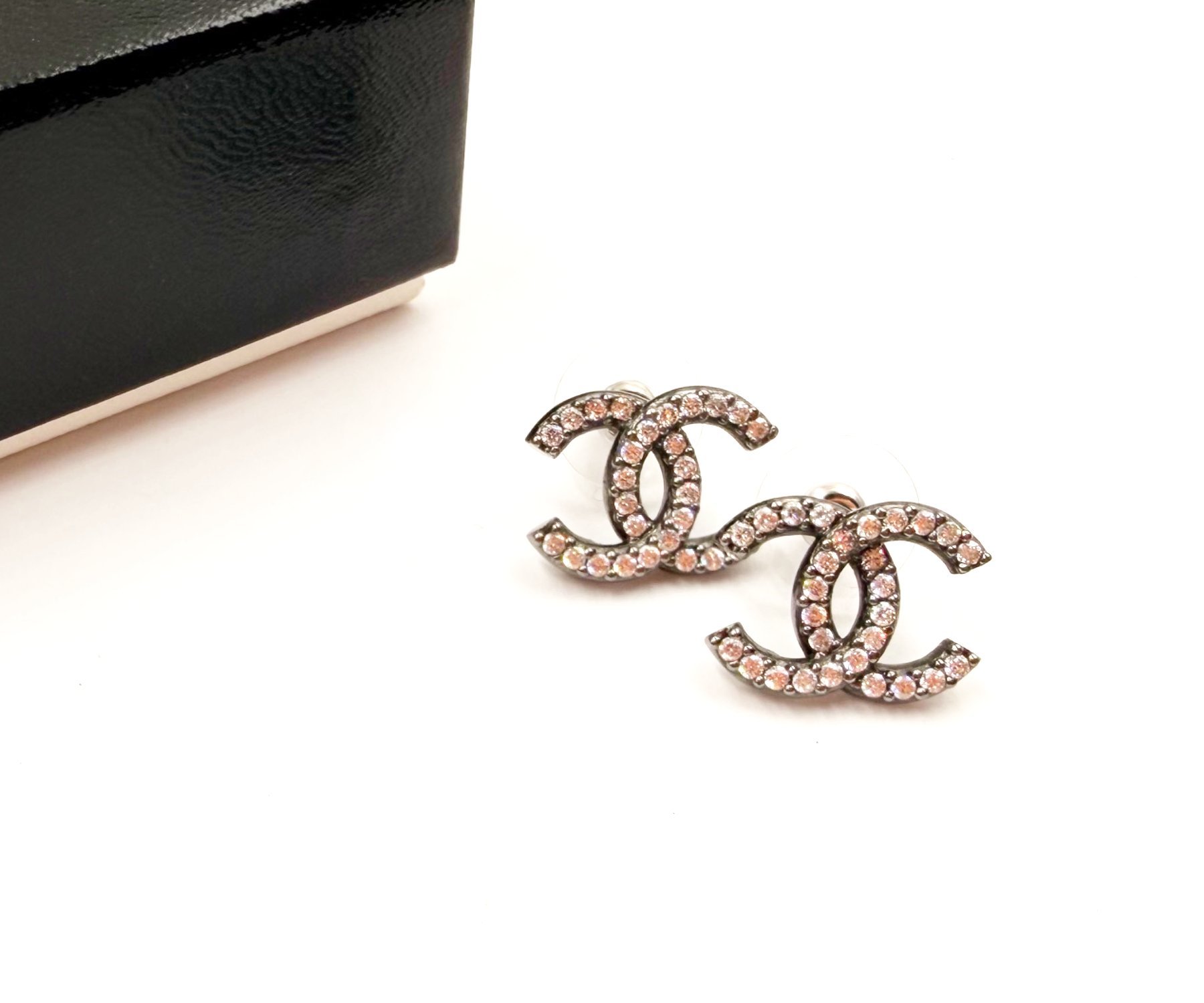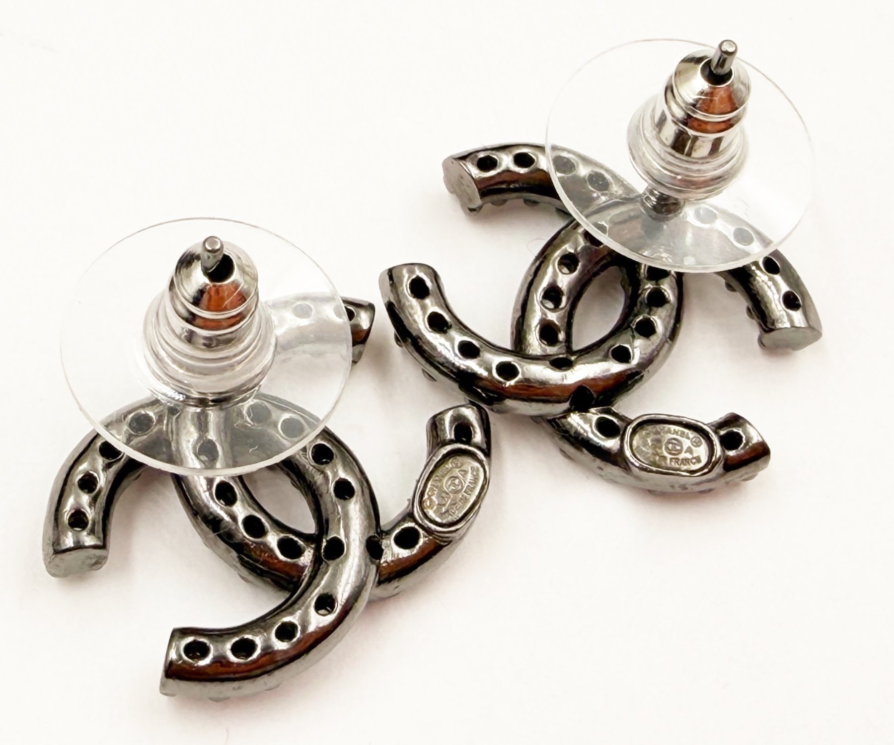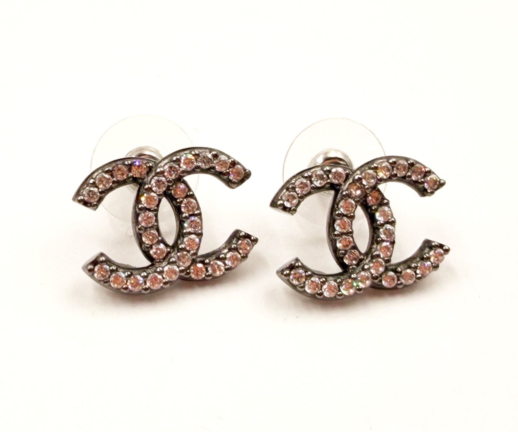 Chanel Gunmetal CC Crystal Medium Piercing Earrings