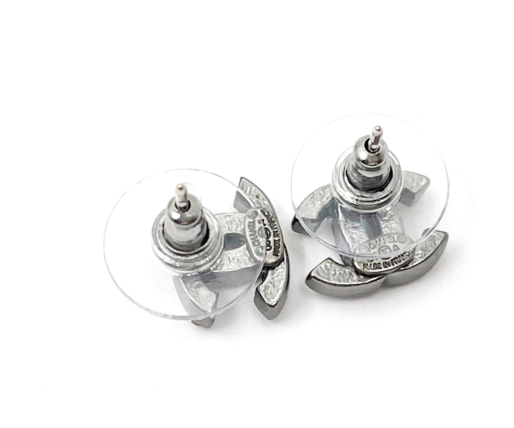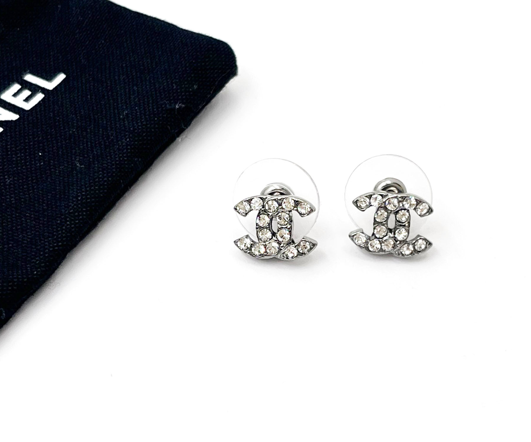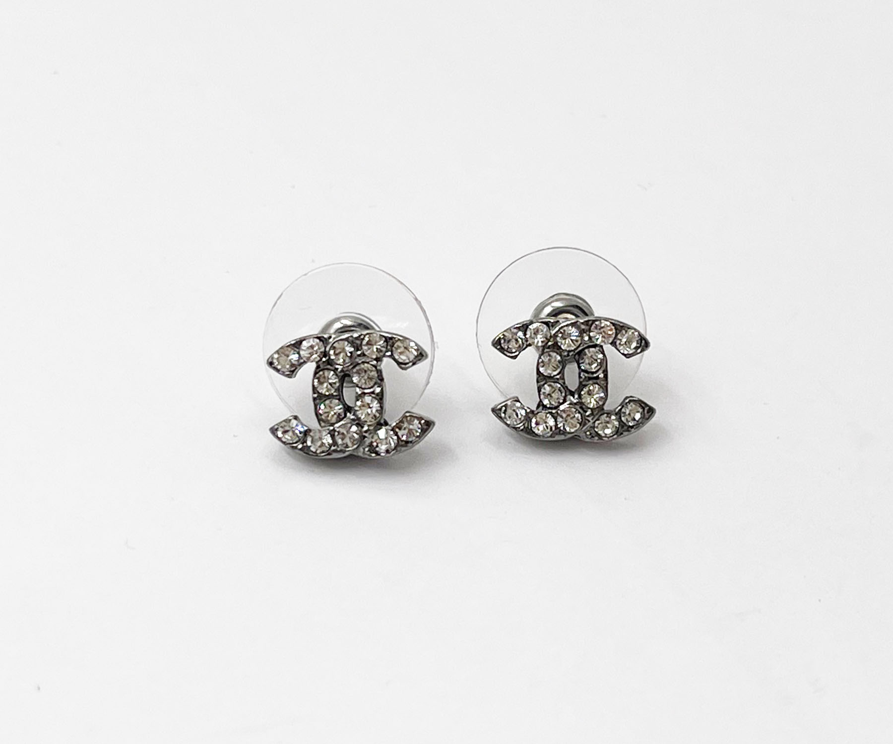 Chanel Gunmetal CC Crystal Small Piercing Earrings