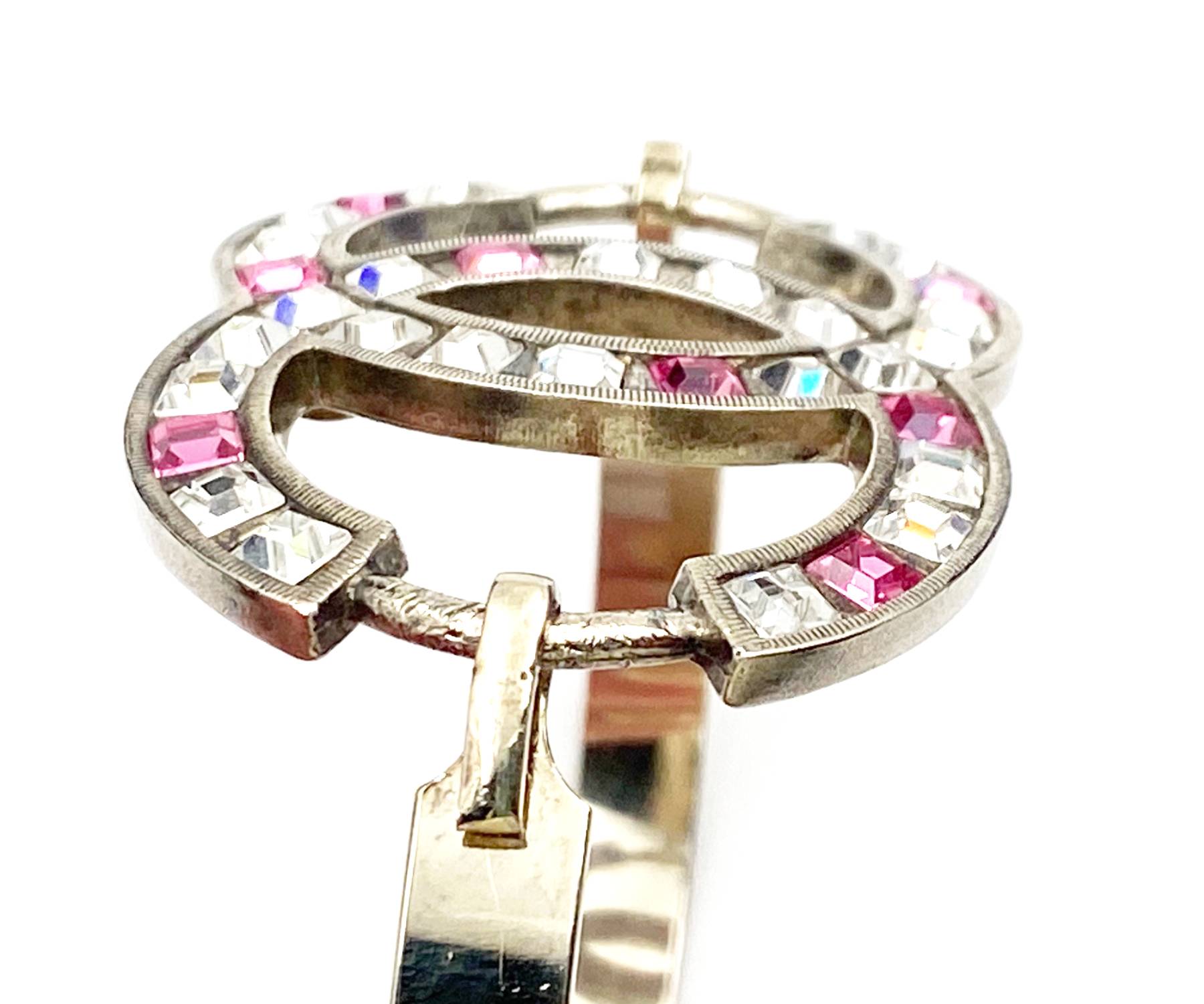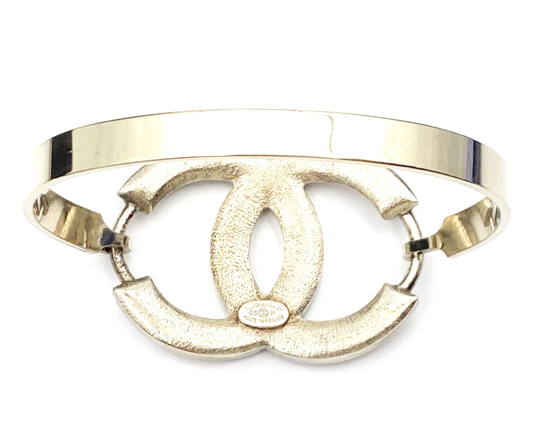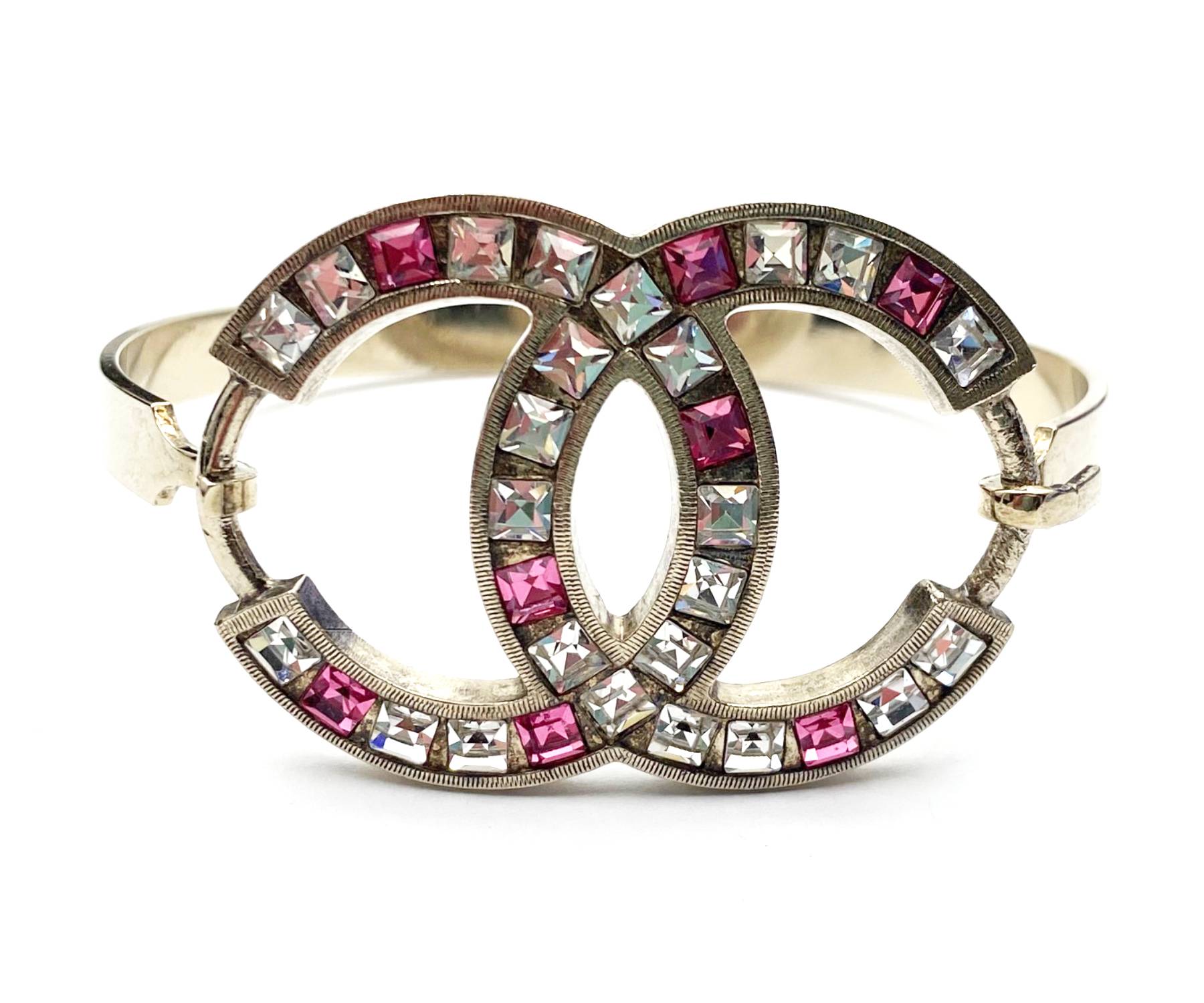 Chanel Light Gold CC Pink Princess Crystal Bangle Bracelet