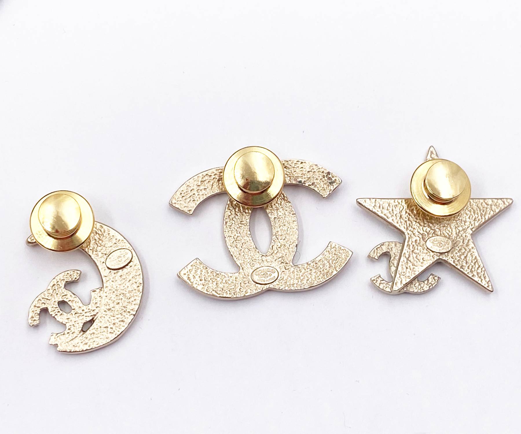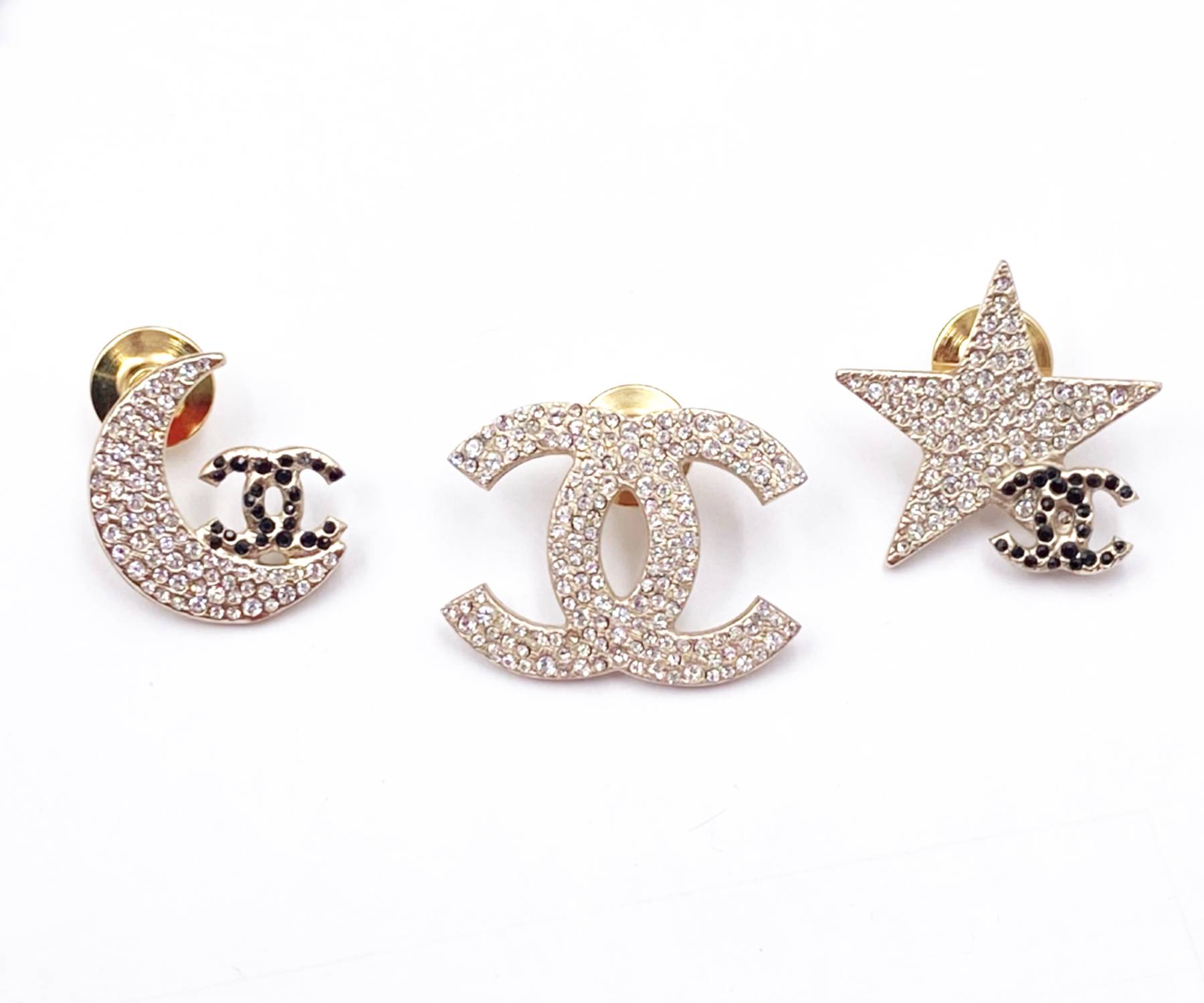 Chanel Rare Gold CC Moon Star Black Crystal 3 Pins
