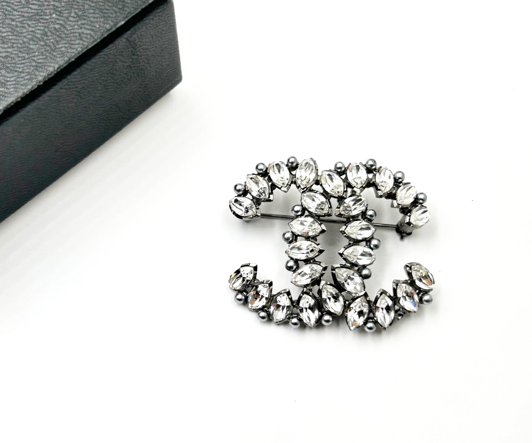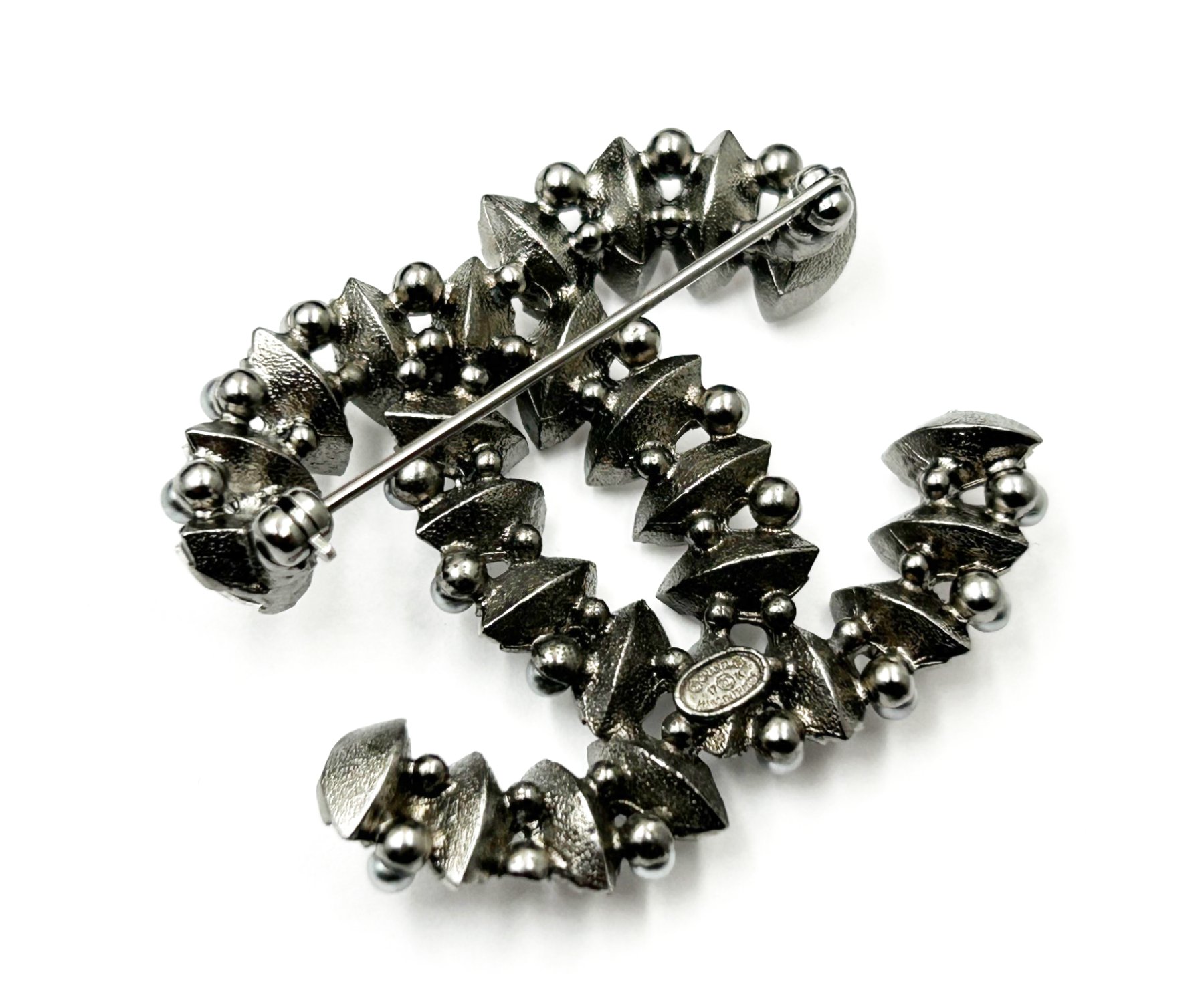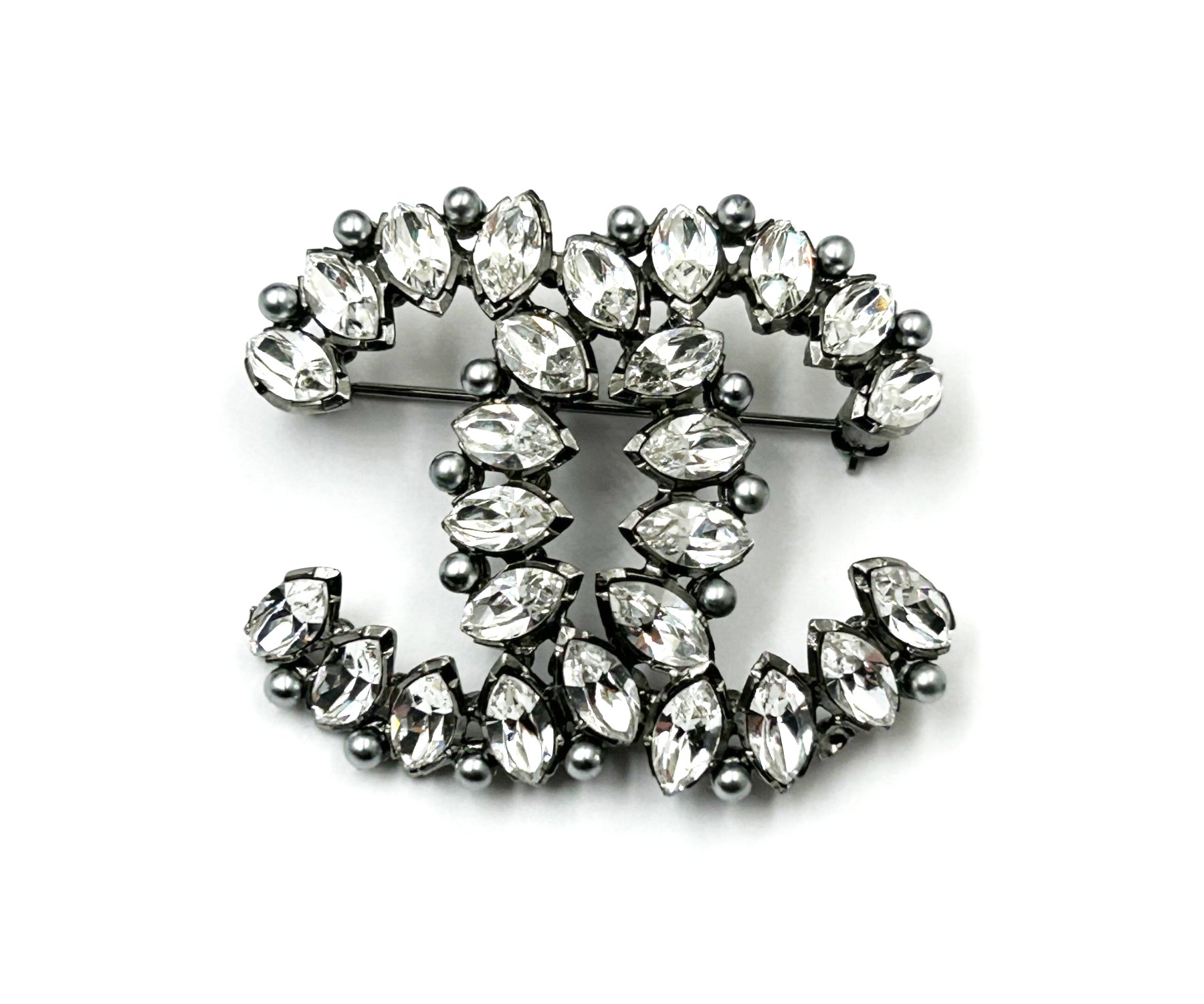 Chanel Rare Gunmetal CC Marquise Crystal Brooch