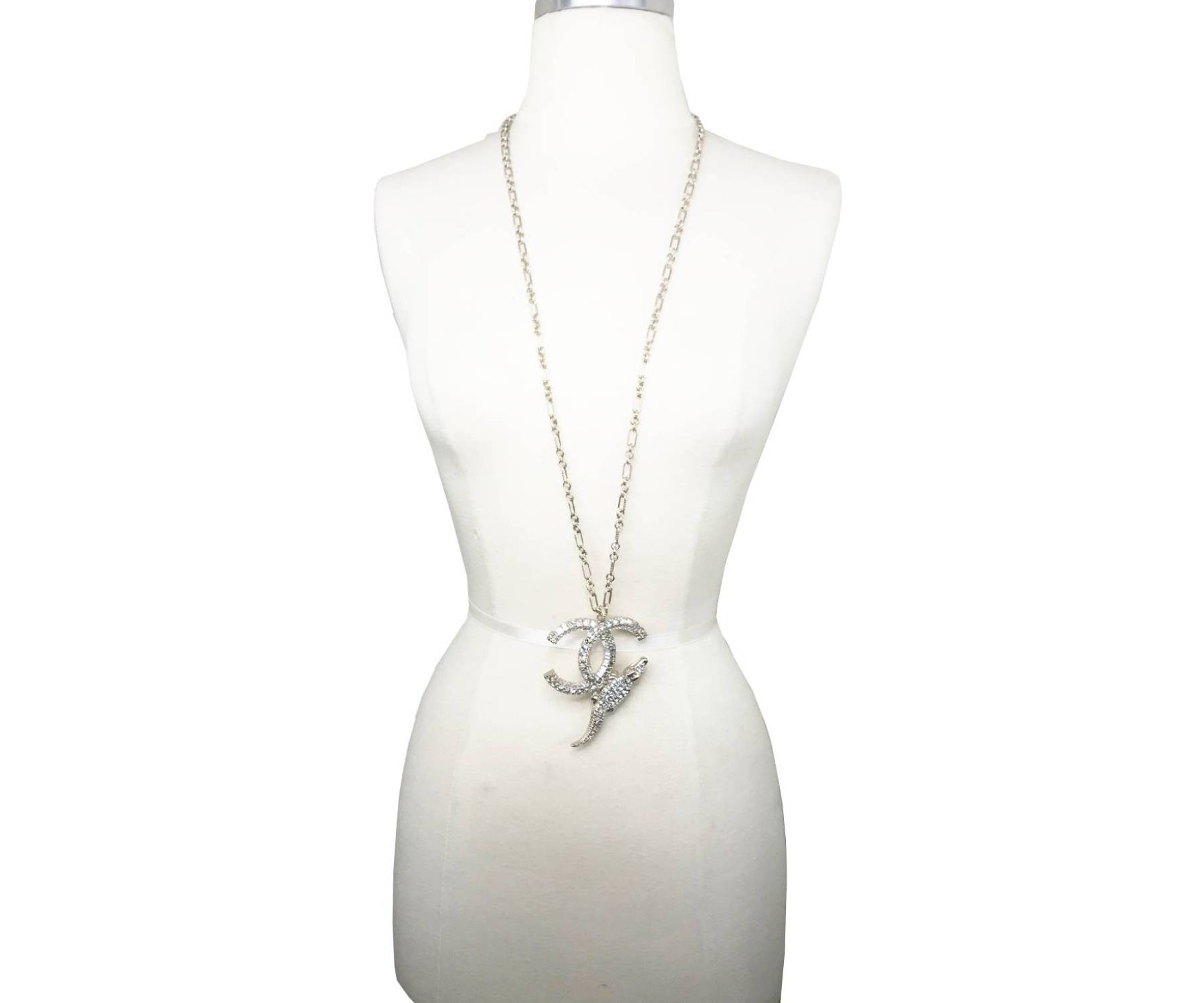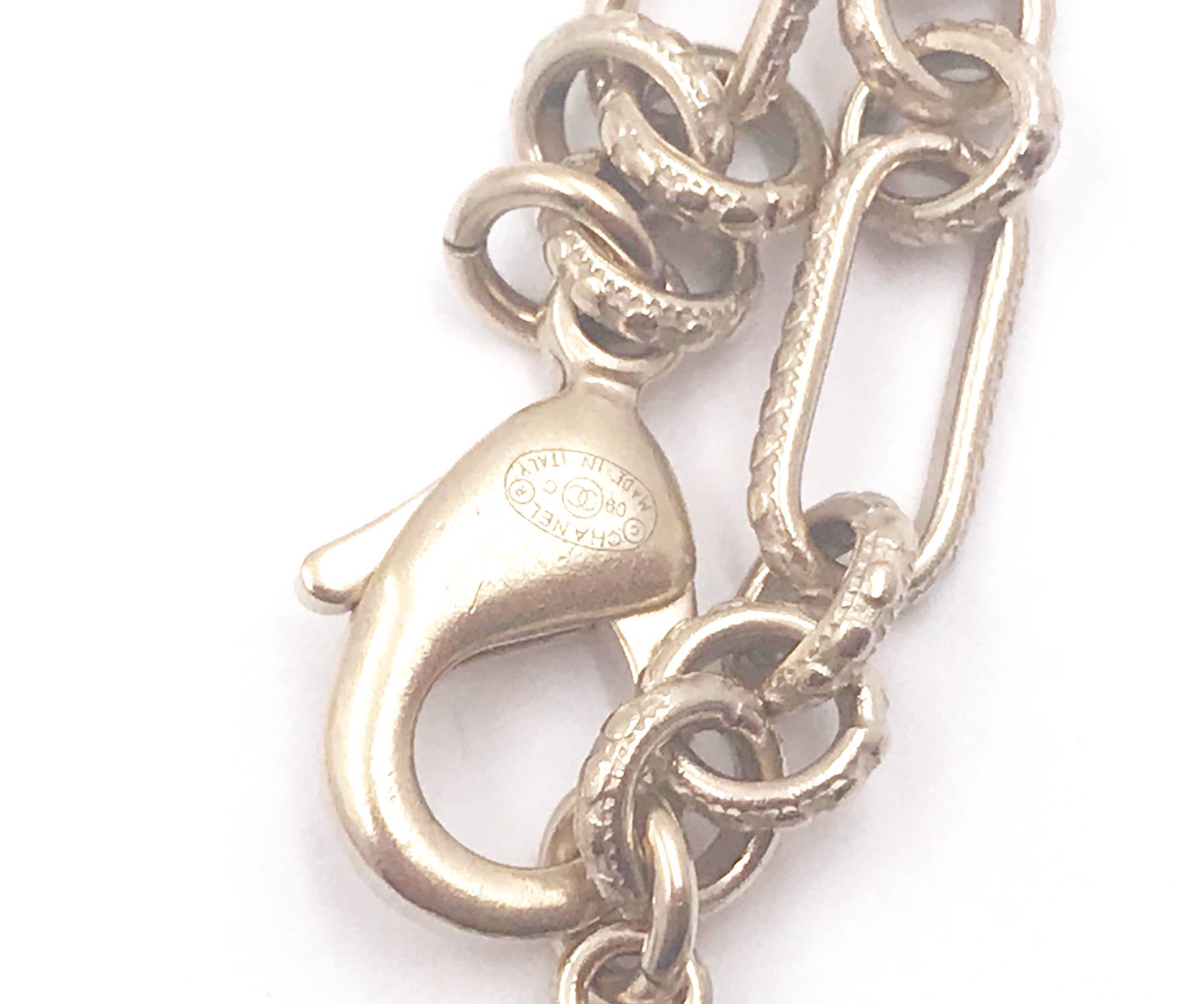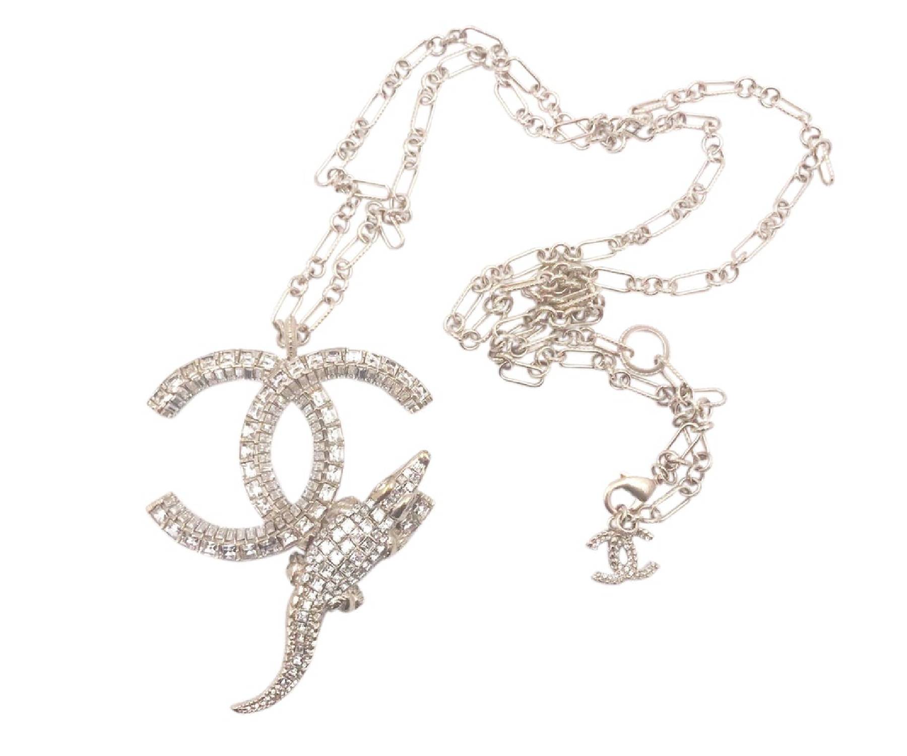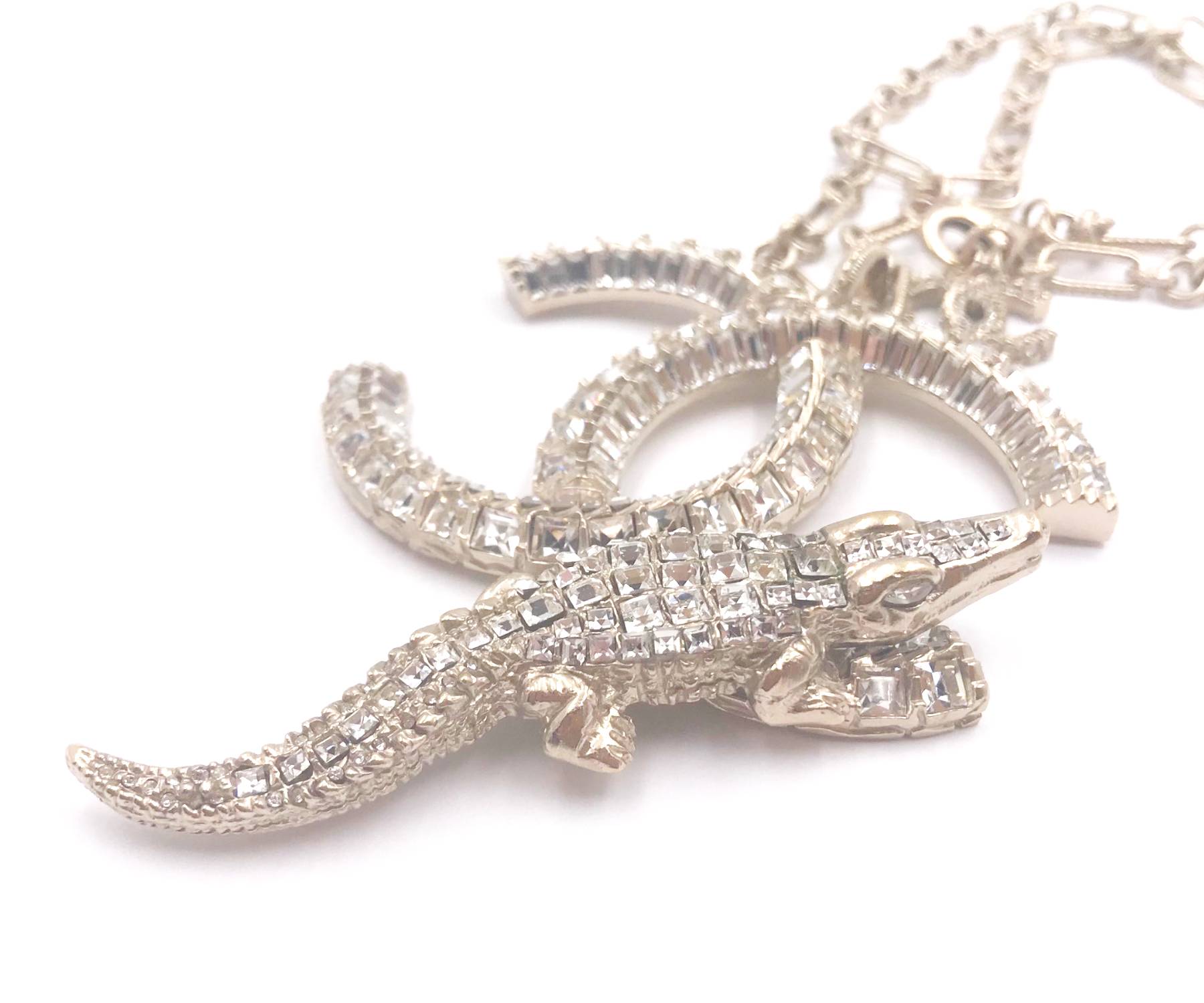 Chanel Rare Light Gold CC Crocodile Crystal Large Pendant Necklace