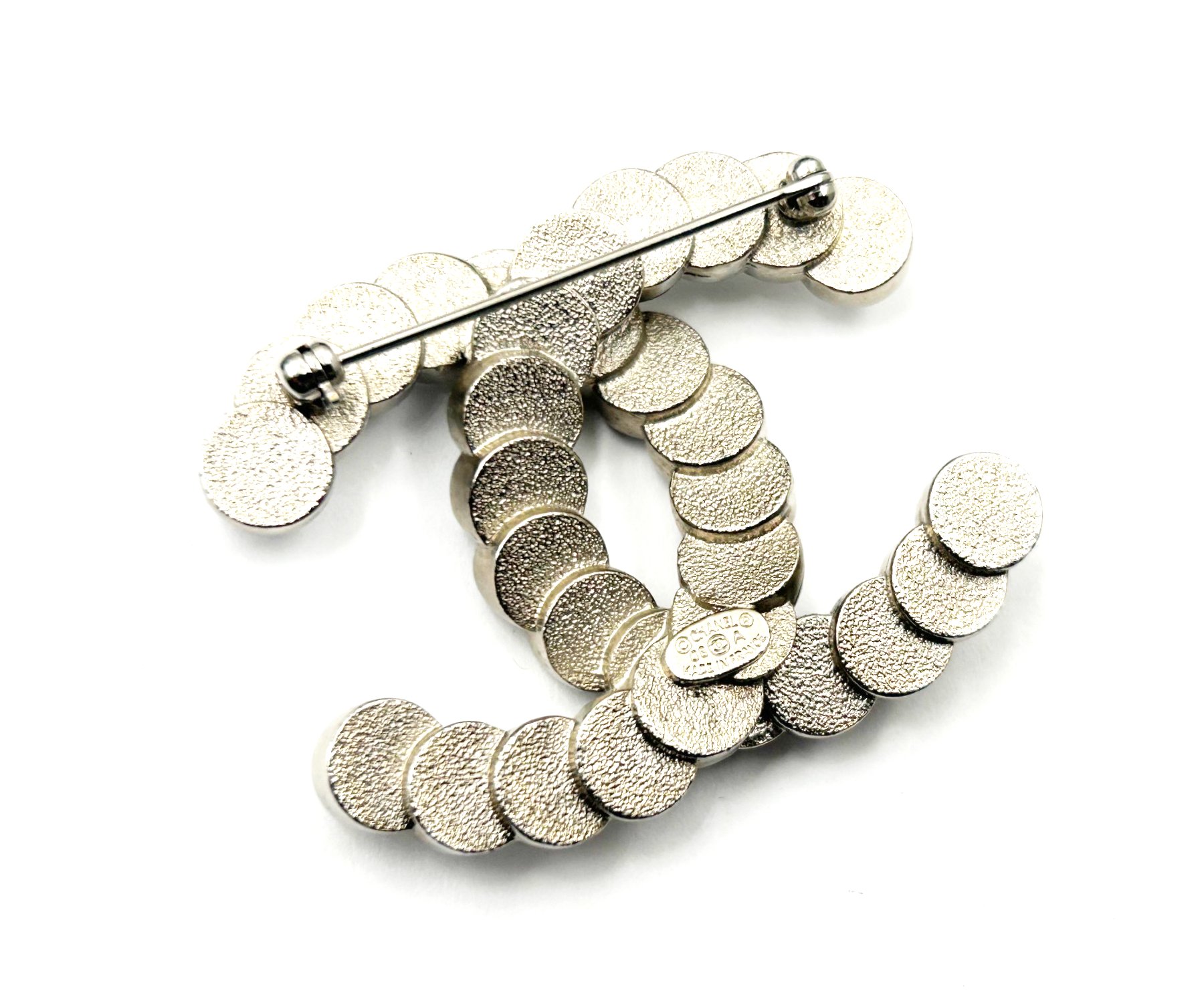 Chanel Rare Silver CC Mother of Pearl Button Brooch