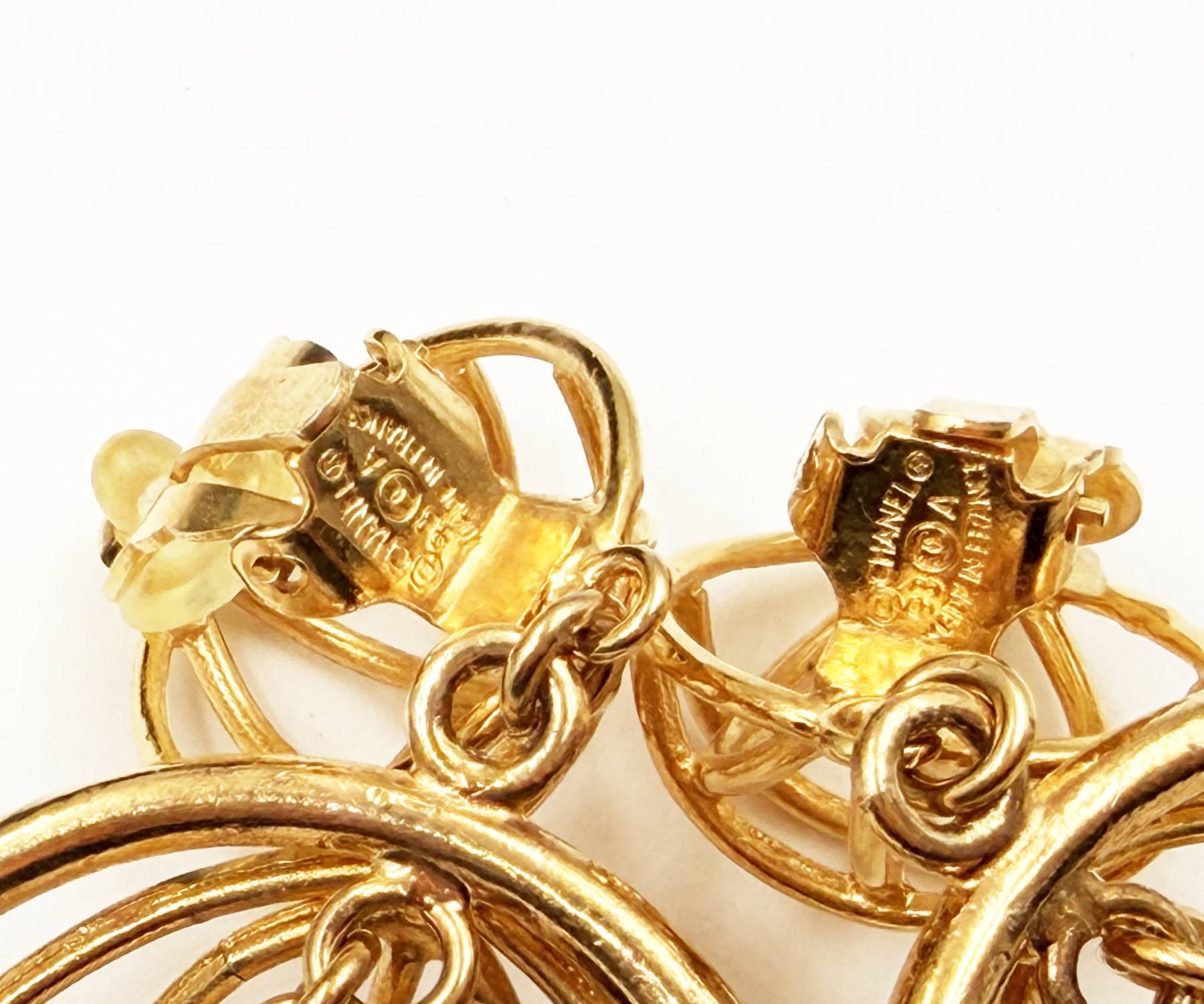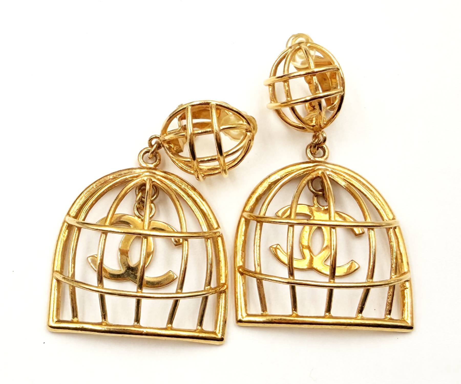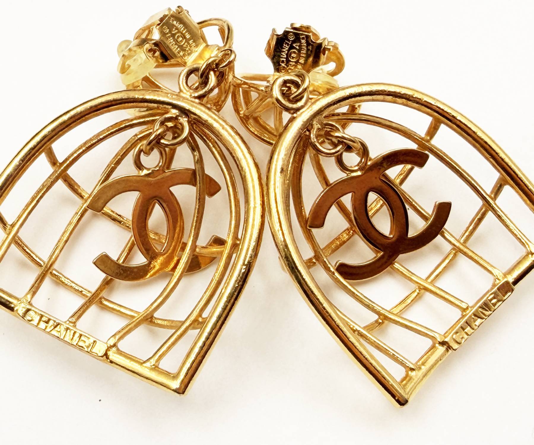 Chanel Rare Vintage Gold Plated CC Bird Cage Clip on Earrings
