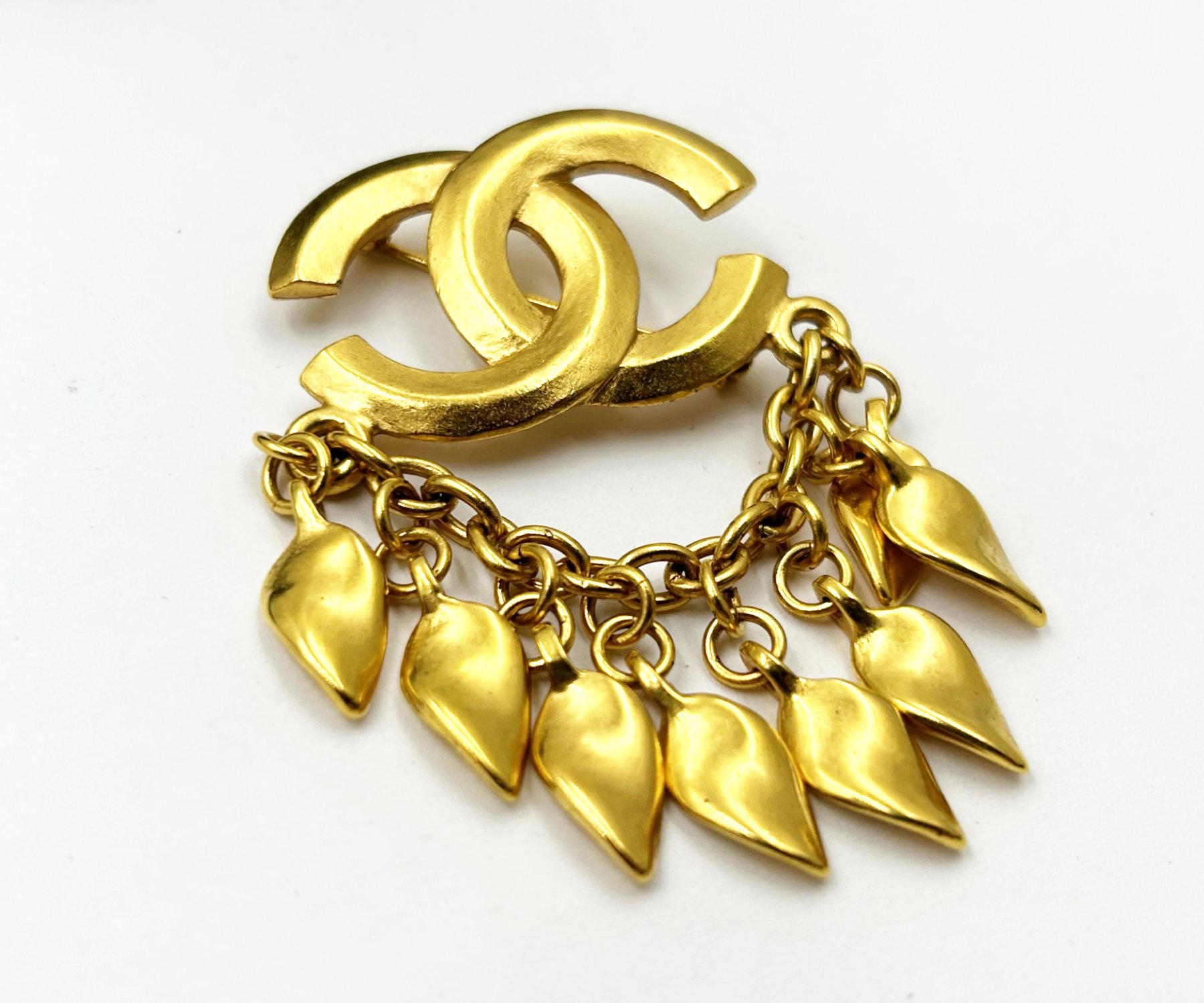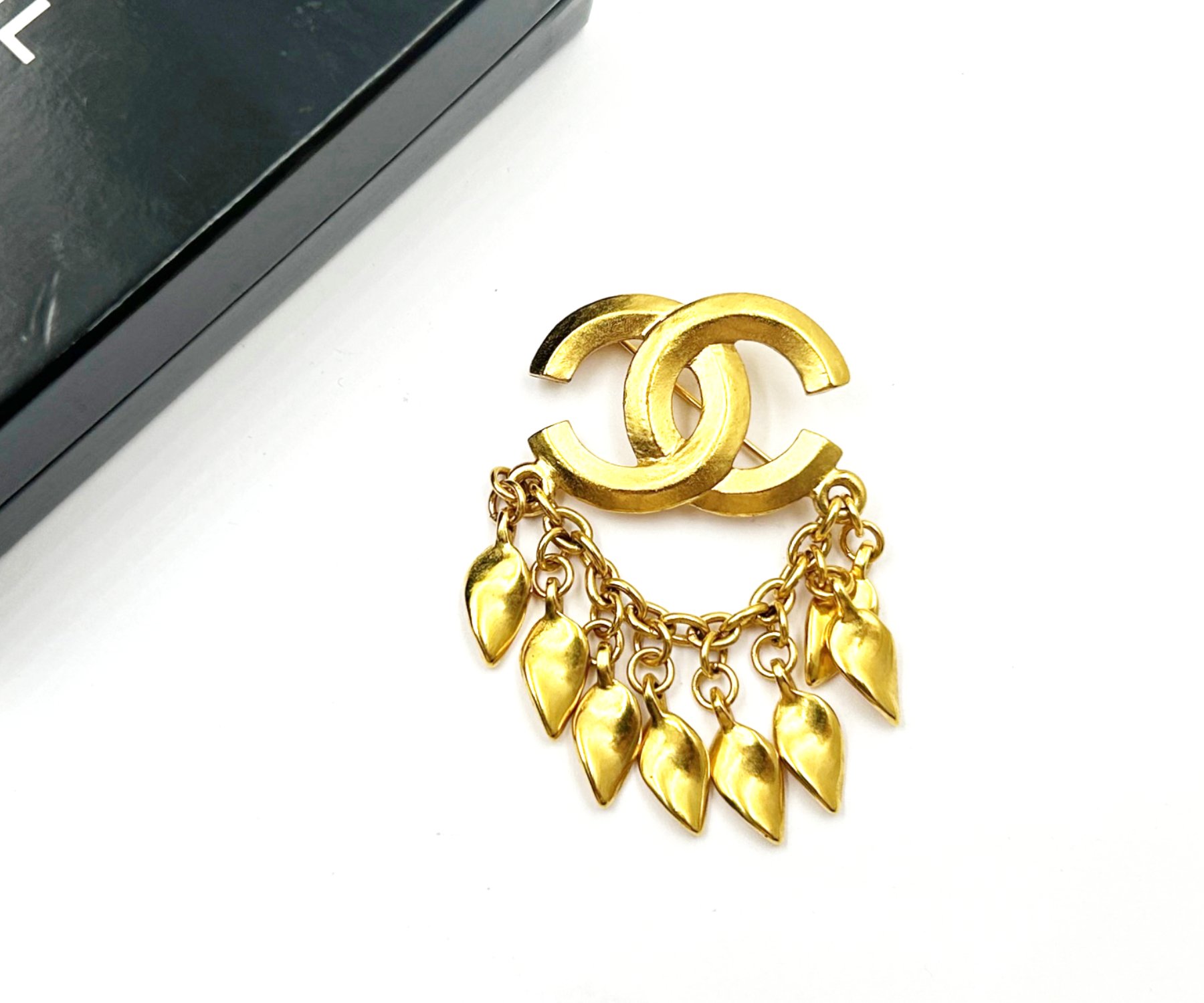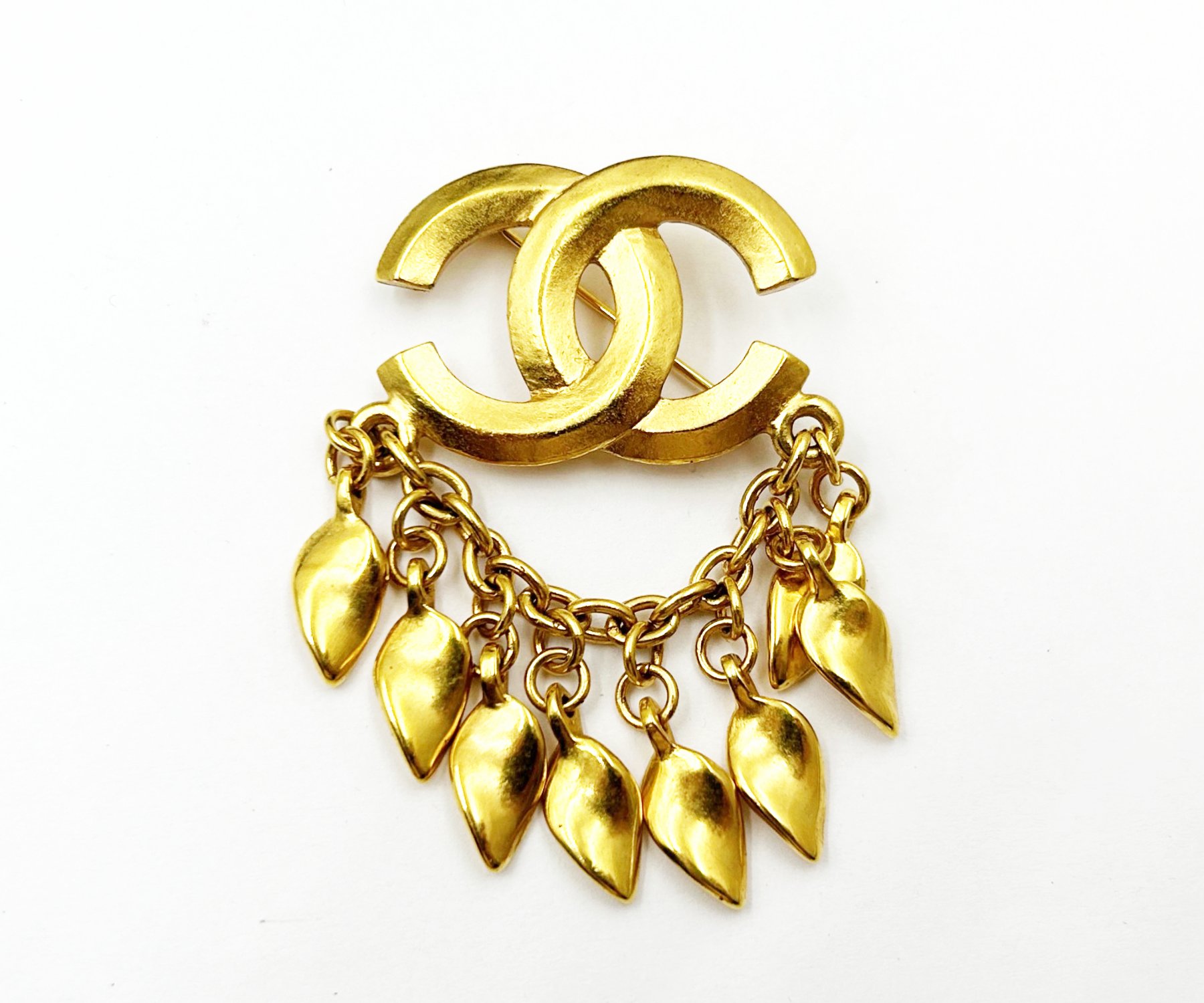 Chanel Rare Vintage Gold Plated CC Dangling Leaves Brooch