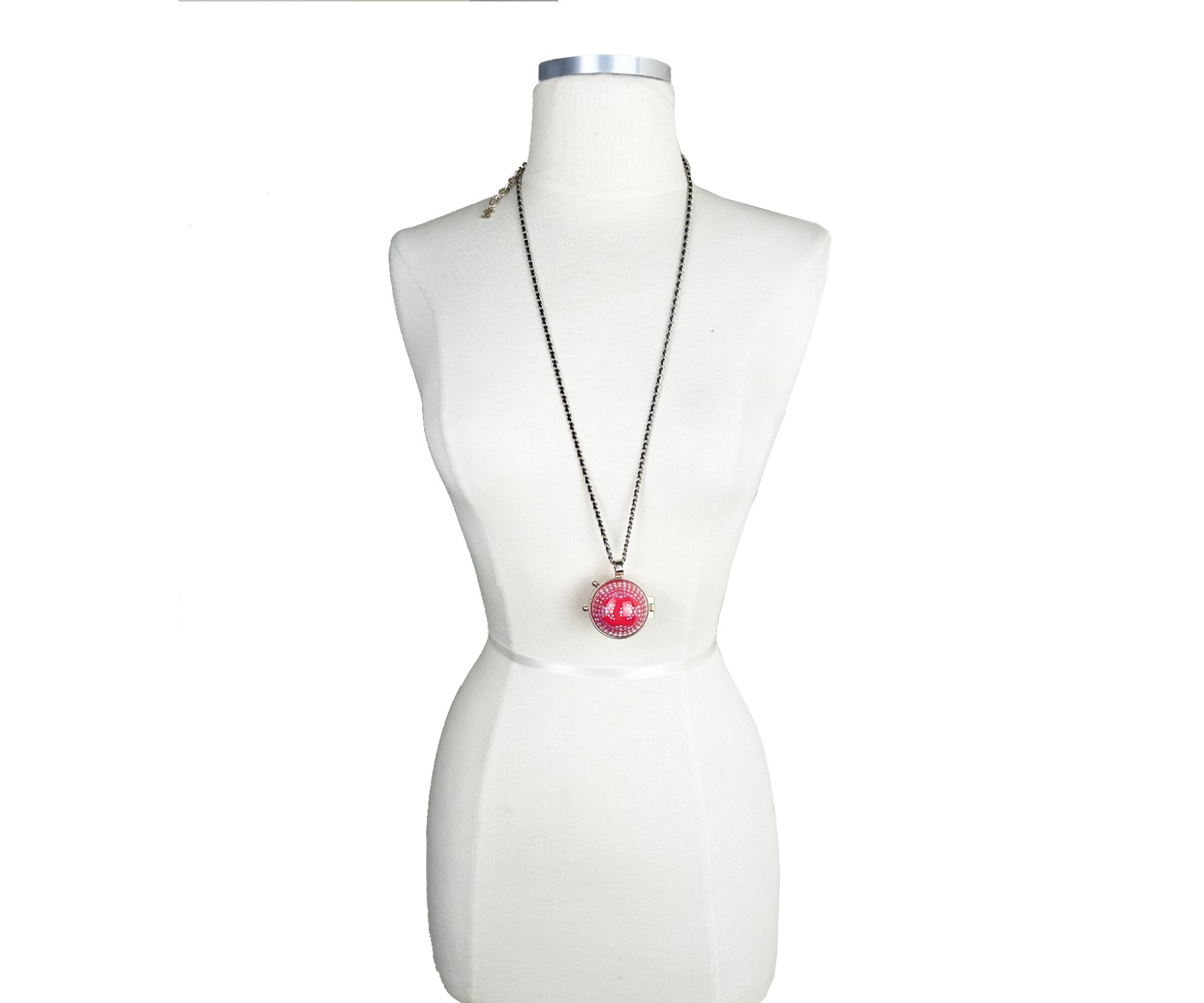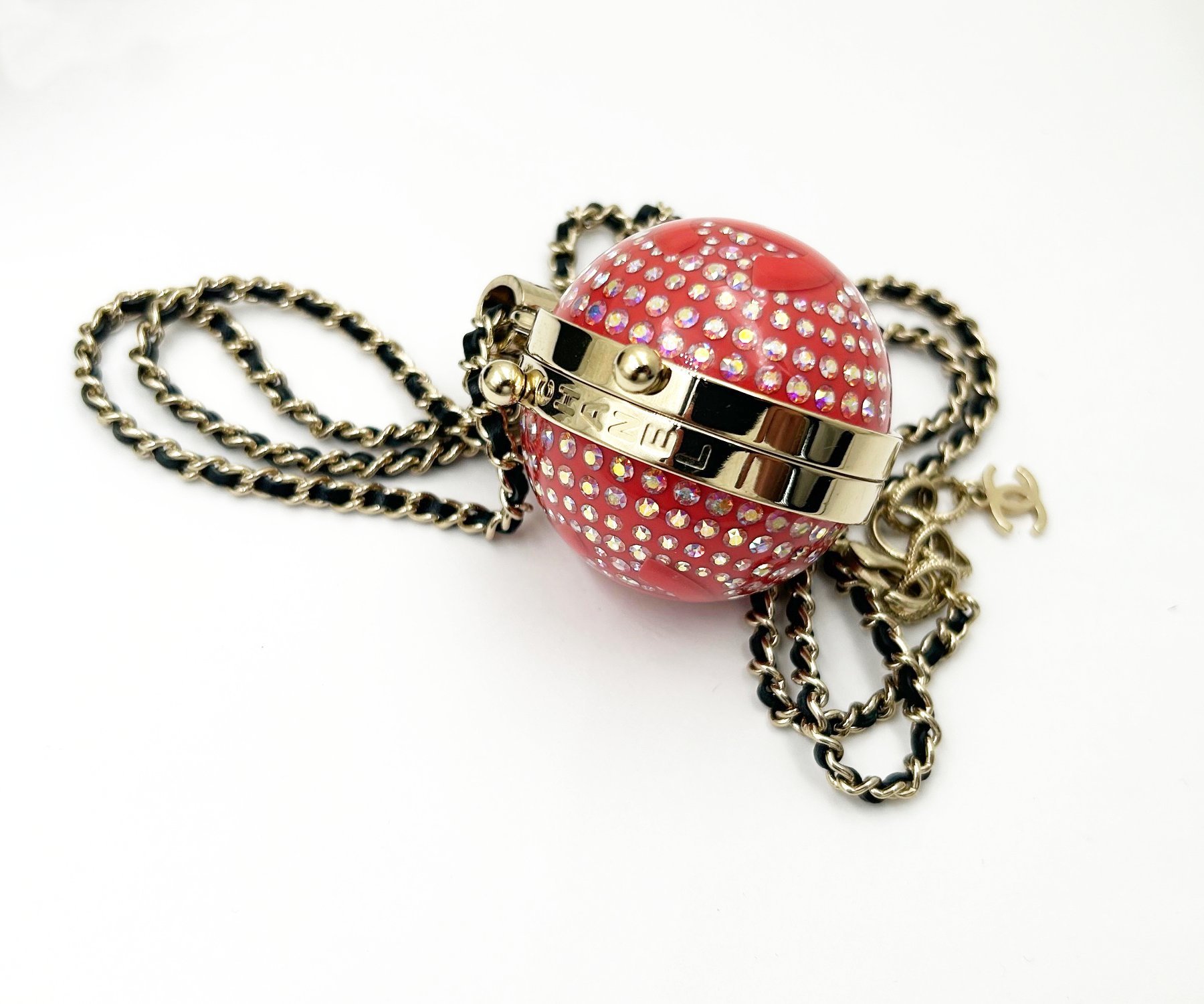 Chanel Red Ball Crystal Mirror Locket Necklace