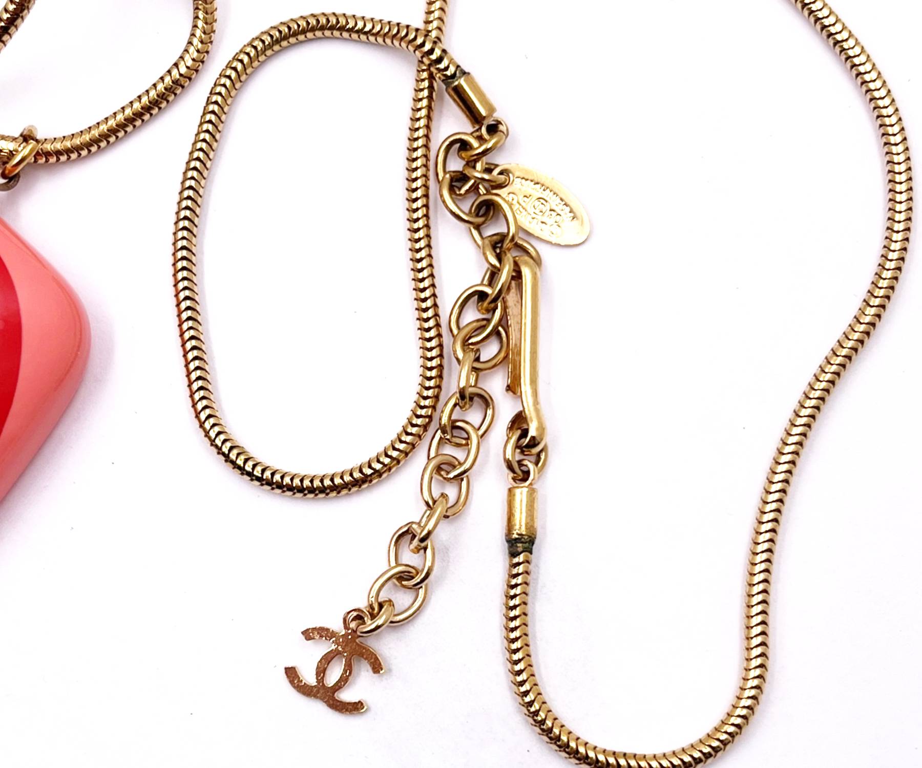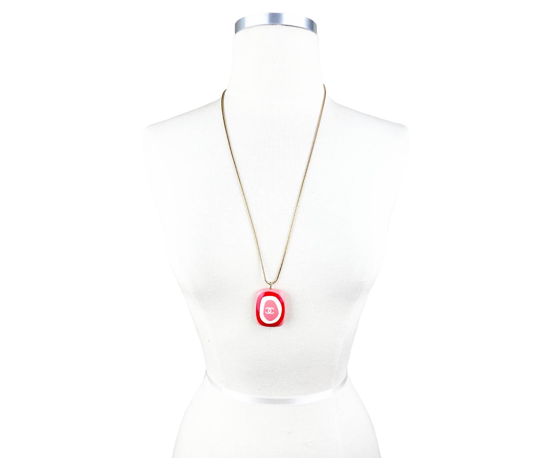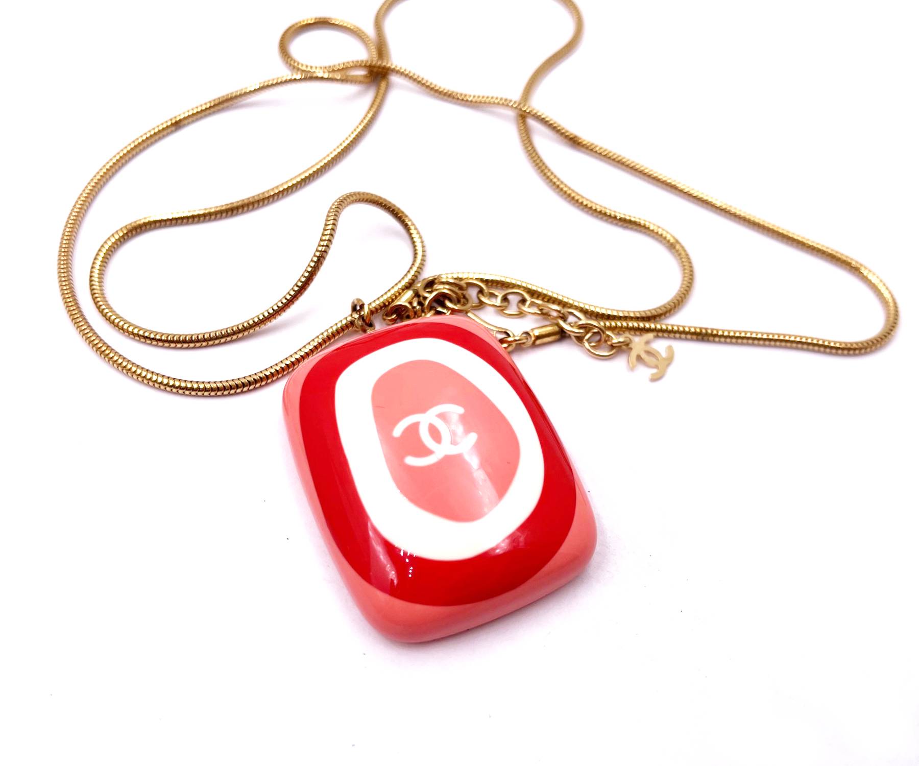 Chanel Red Multi Resin Rectangle Pendant Gold Plated Chain Necklace